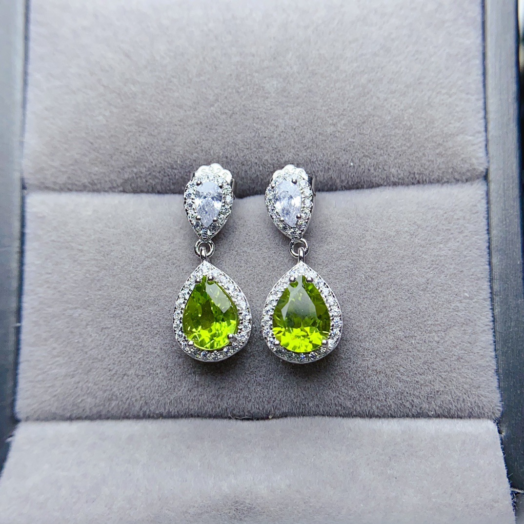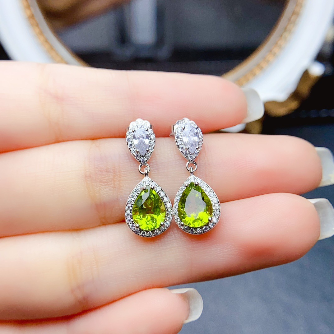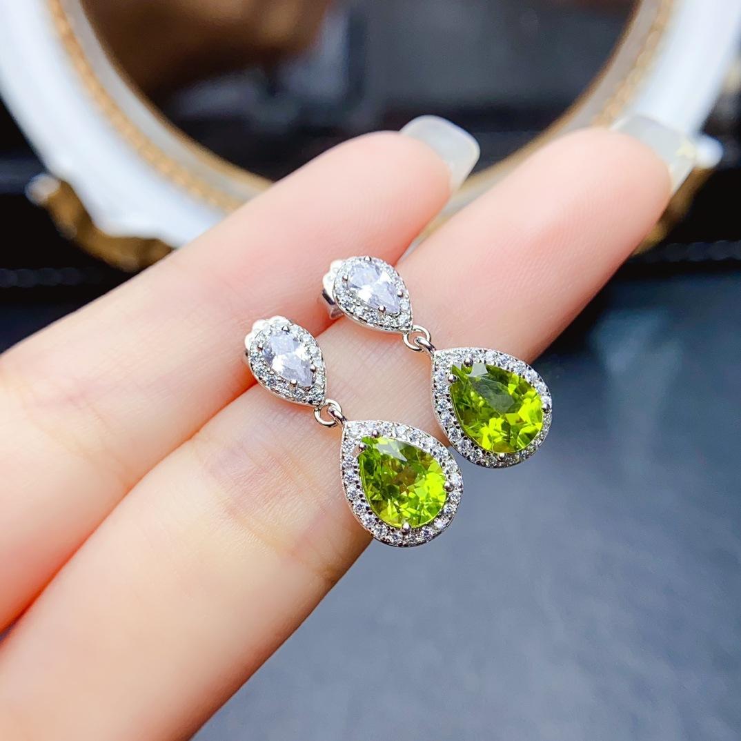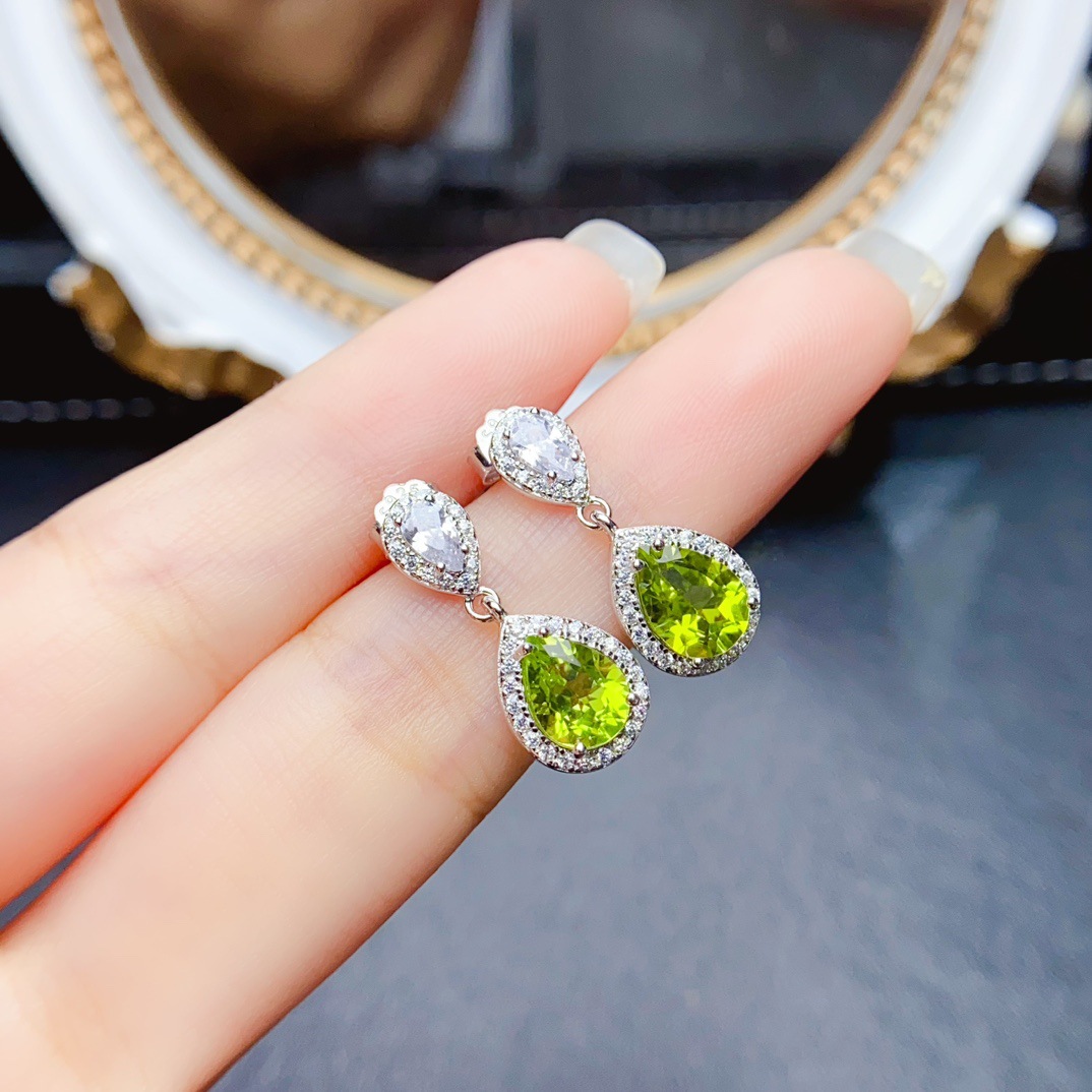 Новый натуральный оливин серьги S925 Серебряный инкрустированный основной камень 6*8 мм