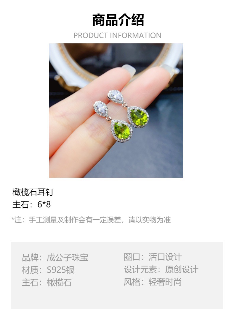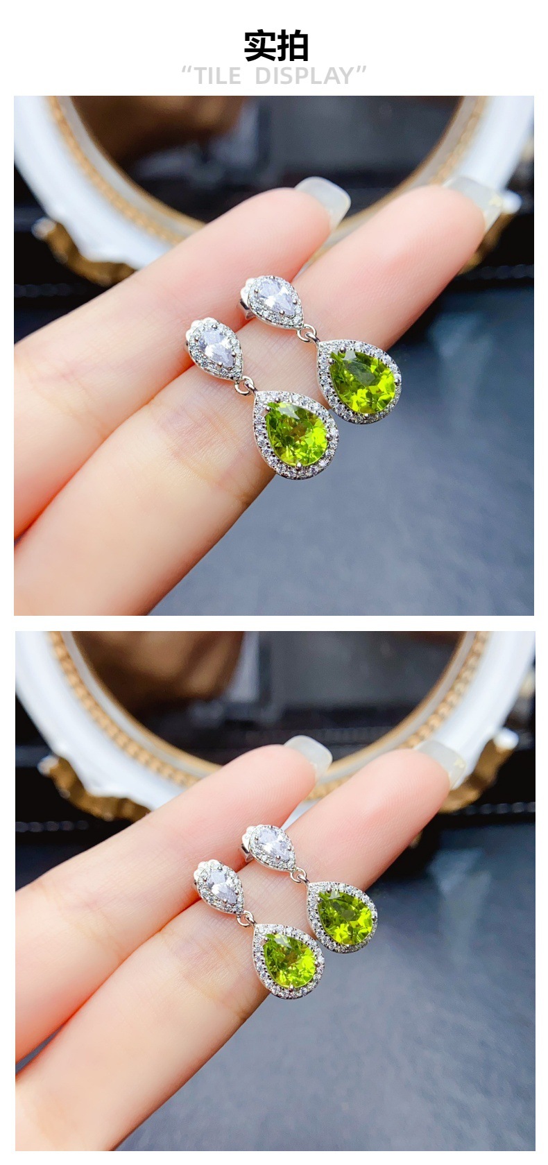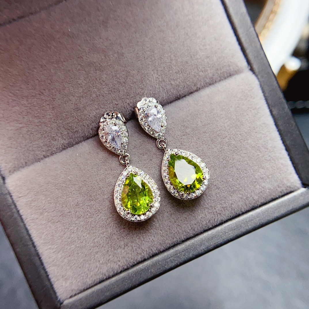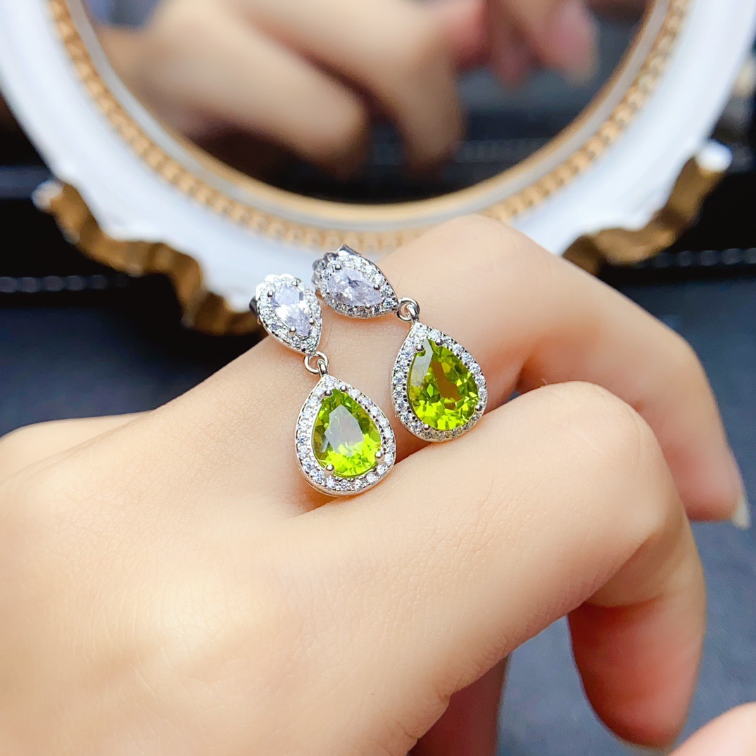Новый натуральный оливин серьги S925 Серебряный инкрустированный основной камень 6*8 мм