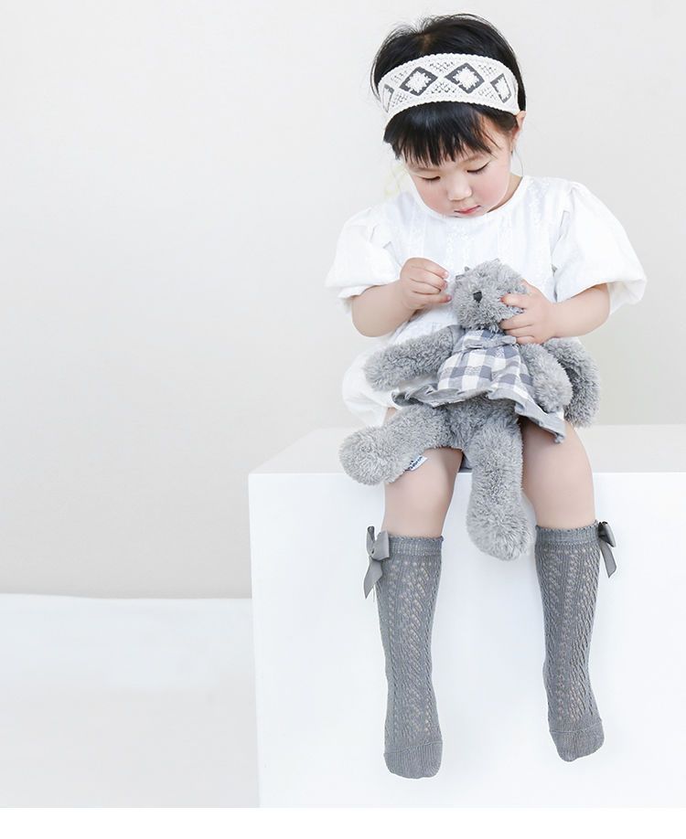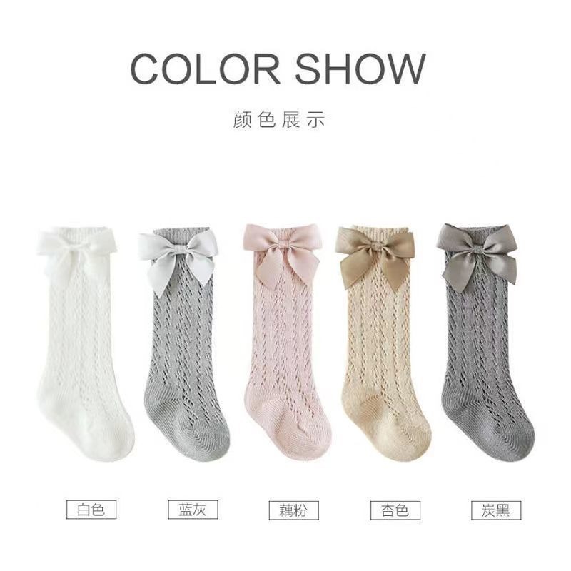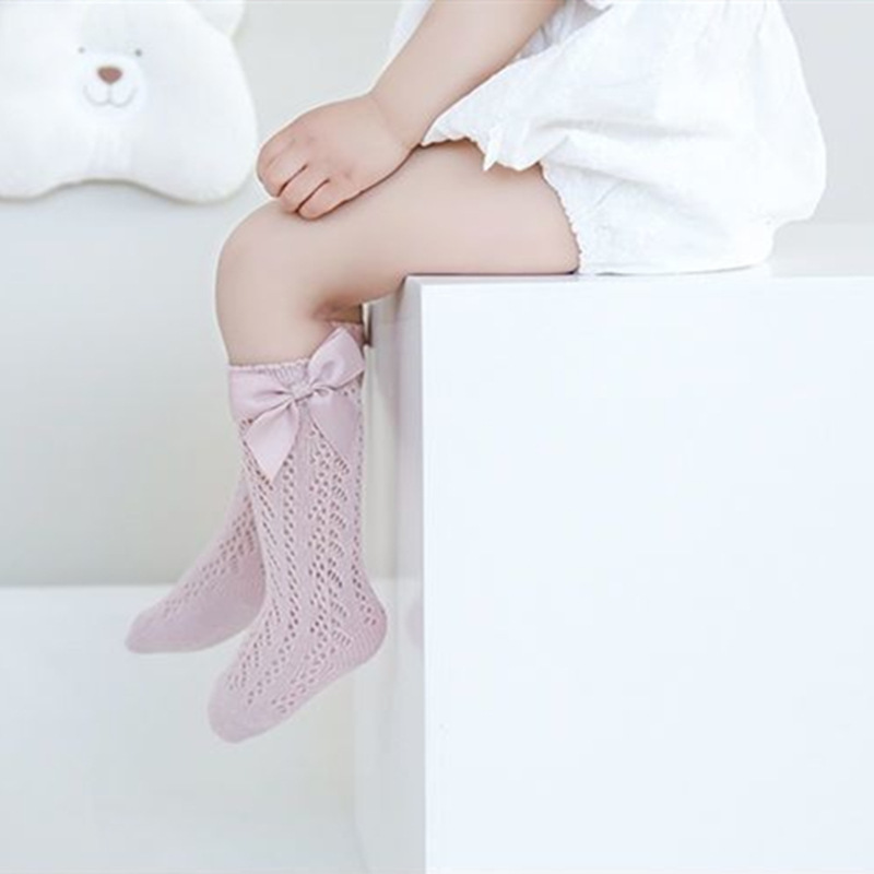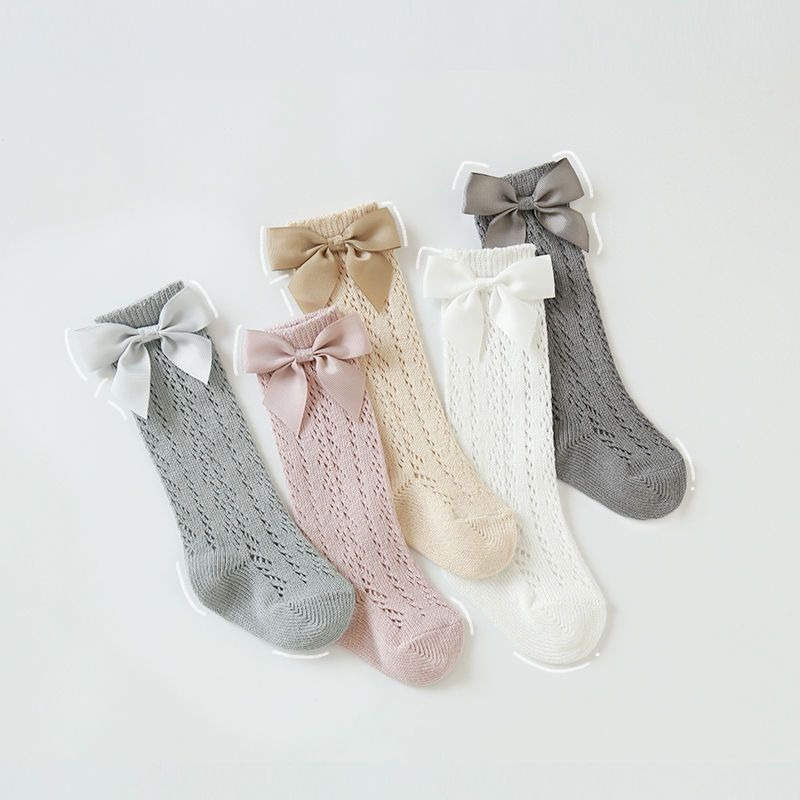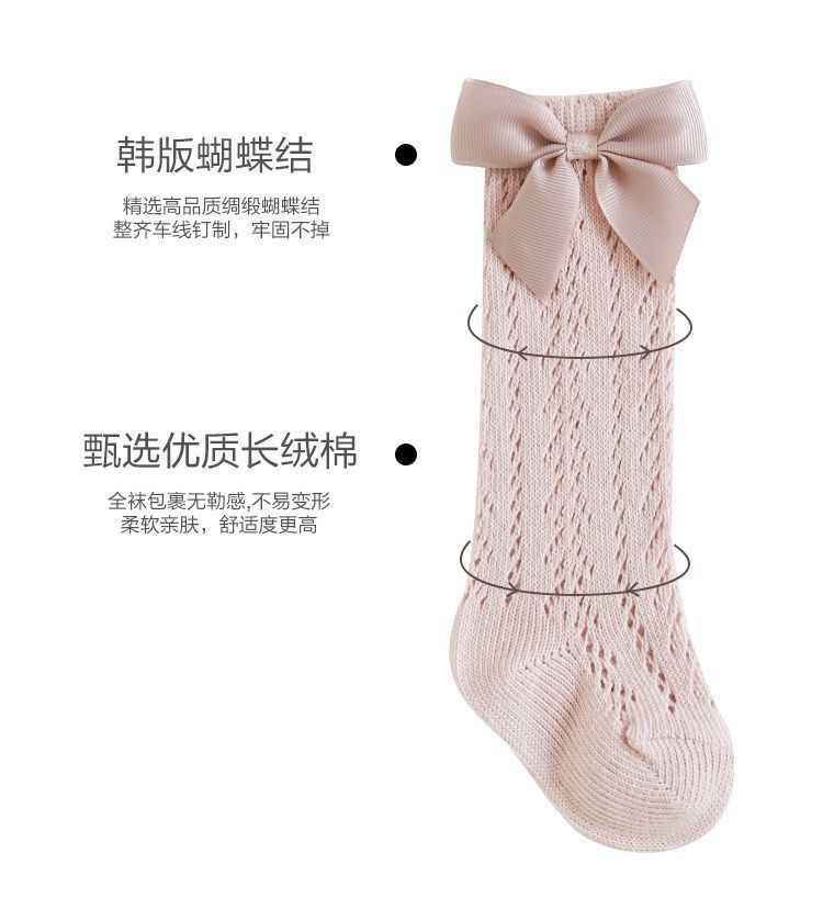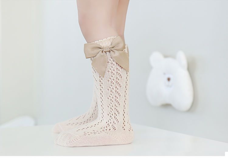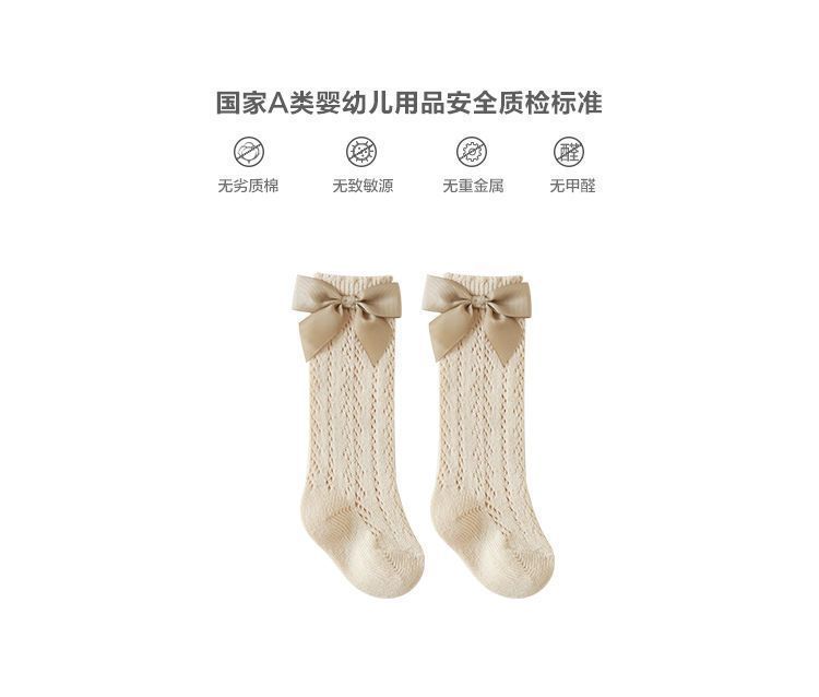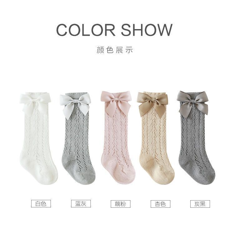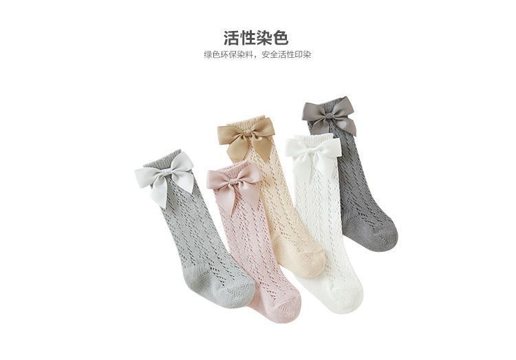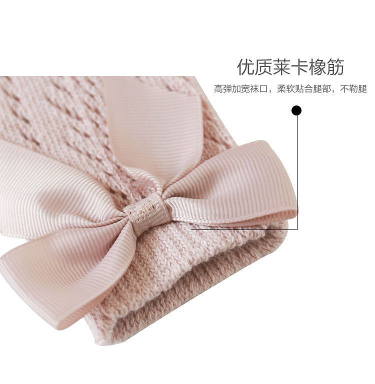 Детские носки оптом, внешняя торговля, трансграничная торговля, летние тонкие сетчатые носки средней высоты с бантом для новорожденных, хлопковые носки