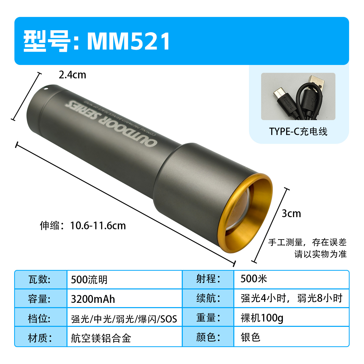 Фонарь с мощным светом, длительным временем работы от аккумулятора, перезаряжаемый, компактный, портативный, мини-светодиодный, сверхъяркий, дальнобойный, для активного отдыха и альпинизма, оптом