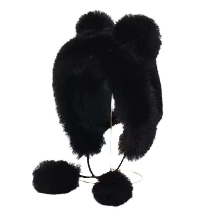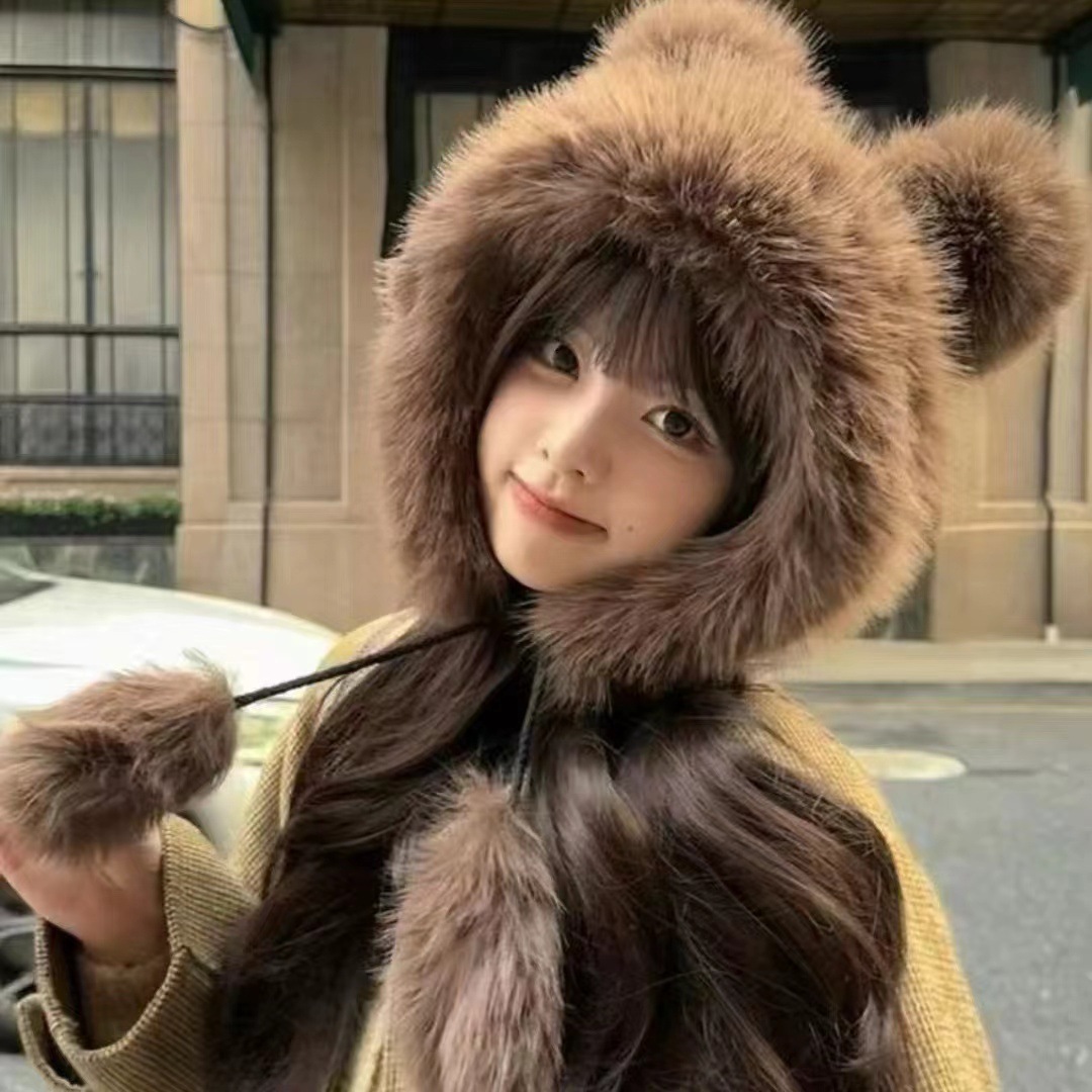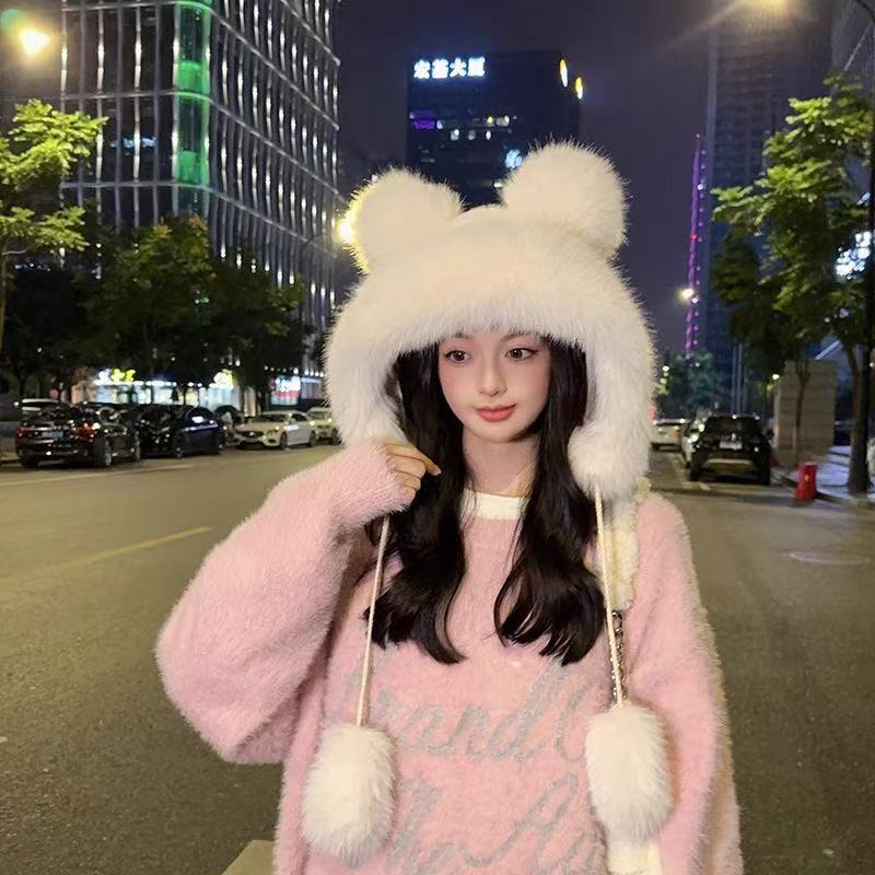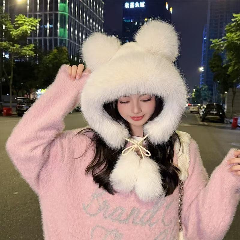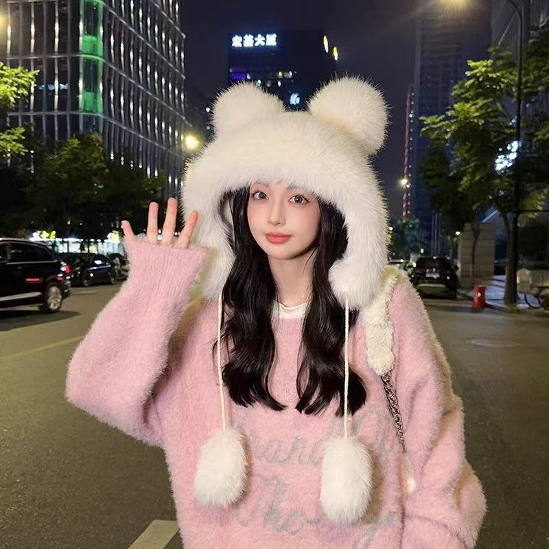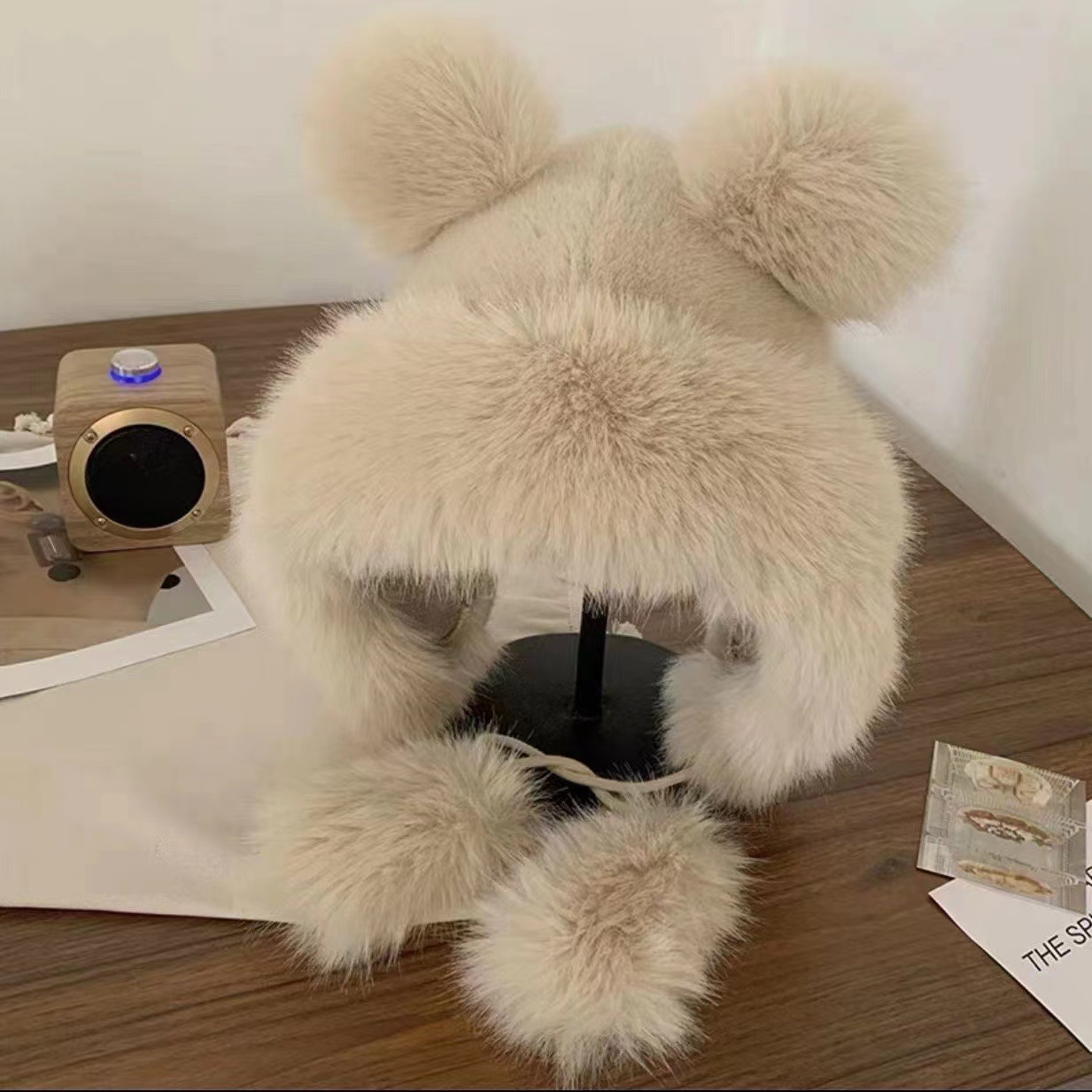 Новая плюшевая шапка с милыми медвежьими ушками, шапка из меха лисы, утолщенная защита ушей, шапка от ветра и снега, женская плюшевая шапка с медвежьими ушками