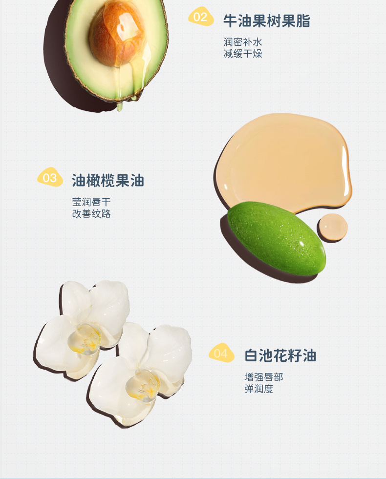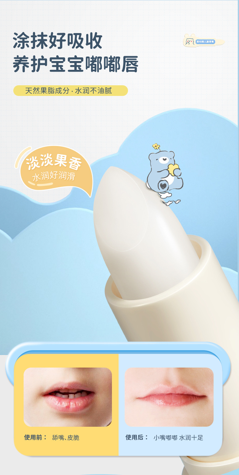 Детский бальзам для губ Odoo 4,5г; Rong Qingcheng — детский бальзам для губ авокадо 3,5 г; Следующая партия детского защитного бальзама для губ Bibeya 12.12, 3,5 г.; AODUO Детский защитный увлажняющий бальзам для губ 3,5 г; Audo Avocado Детский увлажняющий бальзам для губ 3,5 г; Bling Beauty - Интенсивный увлажняющий бальзам для губ с авокадо, 3,5 г