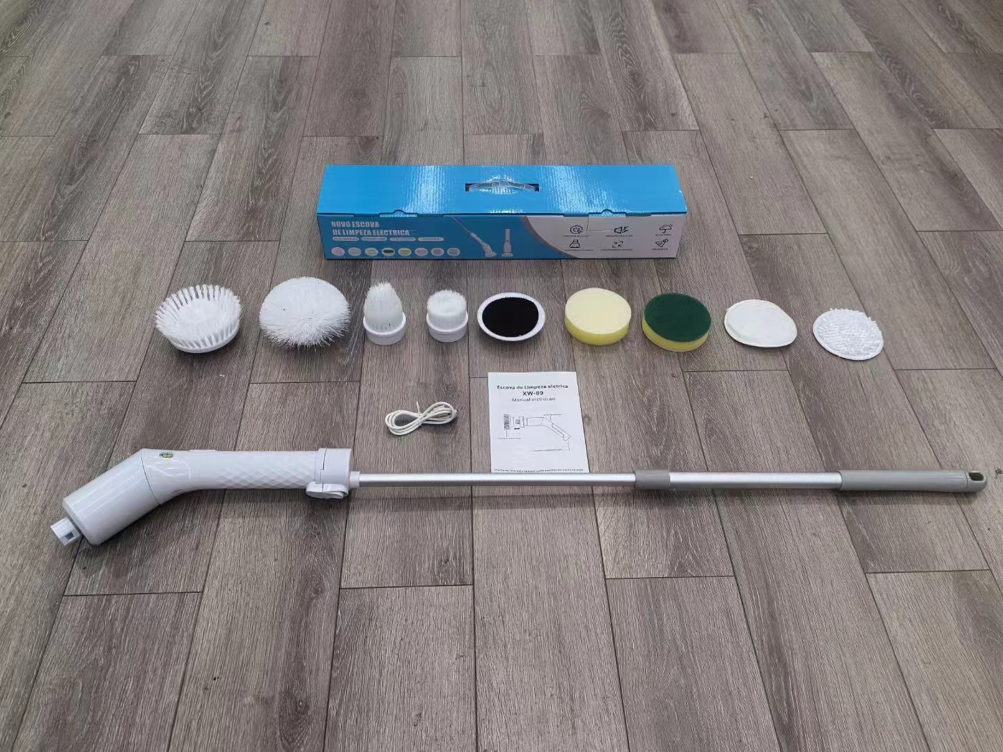 产品标配6刷头:小圆盘+大圆盘+尖头刷+半圆刷+海绵刷+粗纤维刷头!