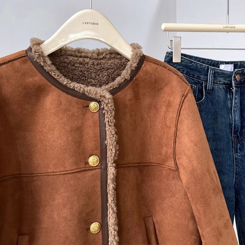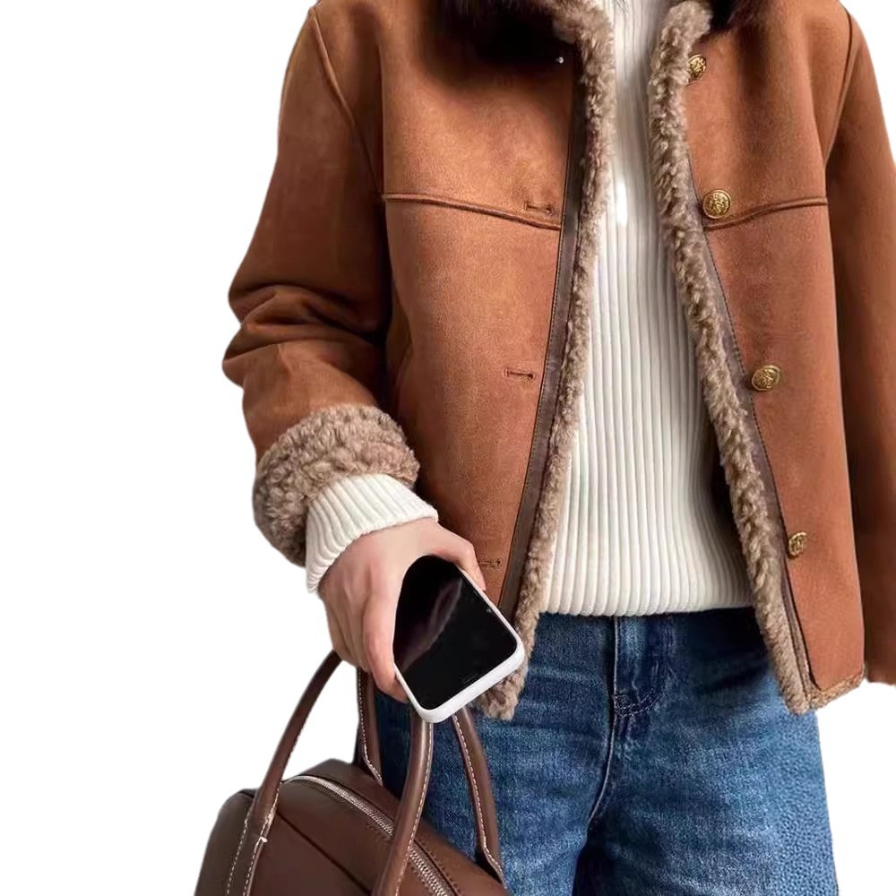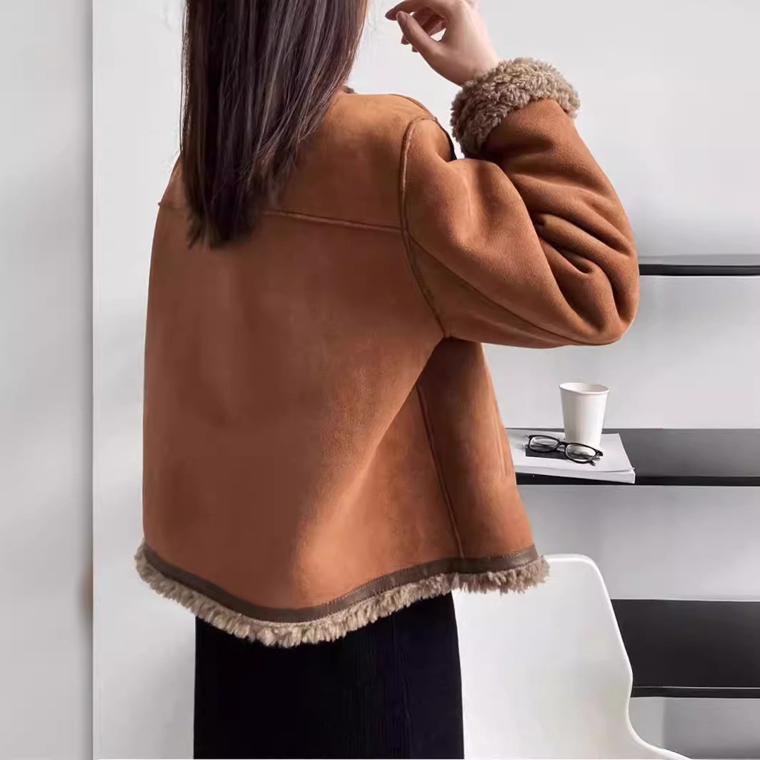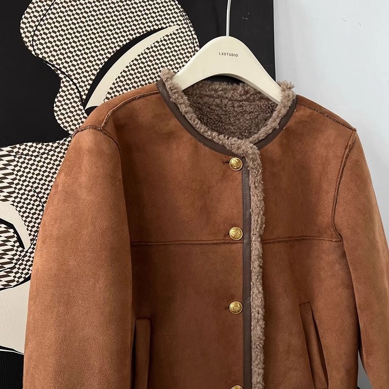 [Спот] Высокое чувство маленький ароматный стиль овечья пушистая куртка женская зимняя короткая кожаная куртка