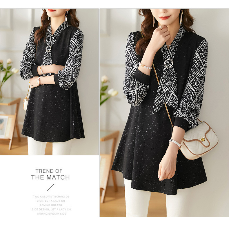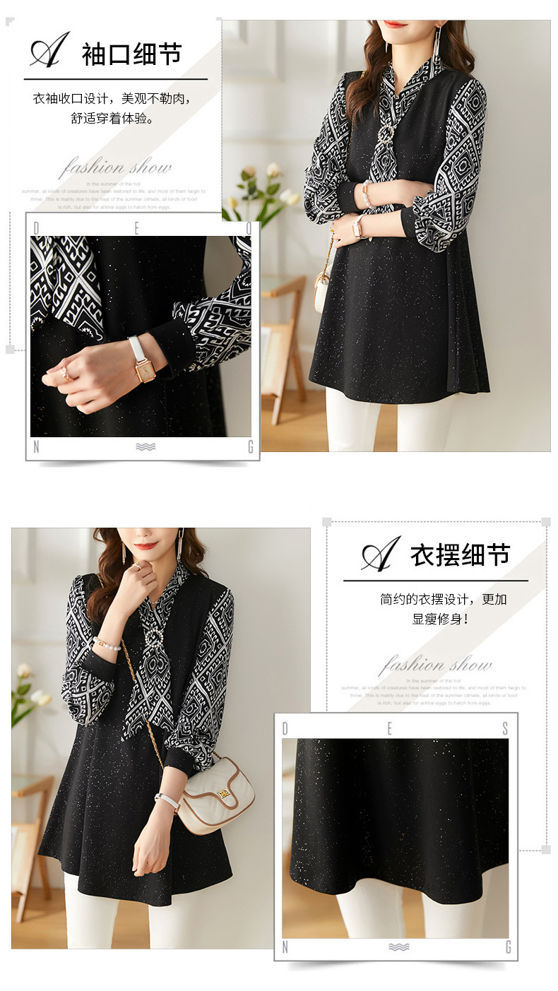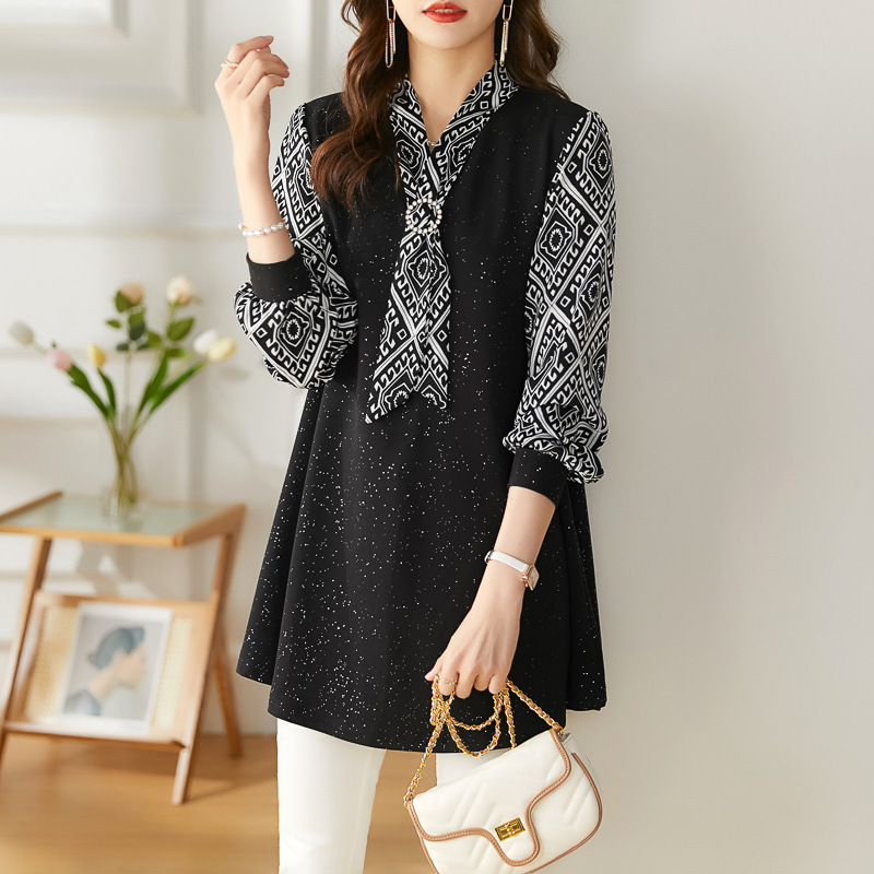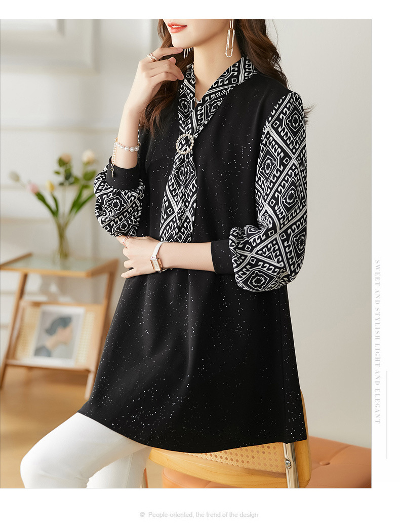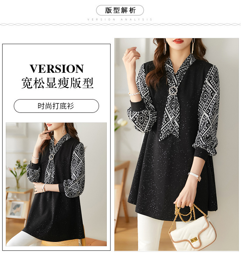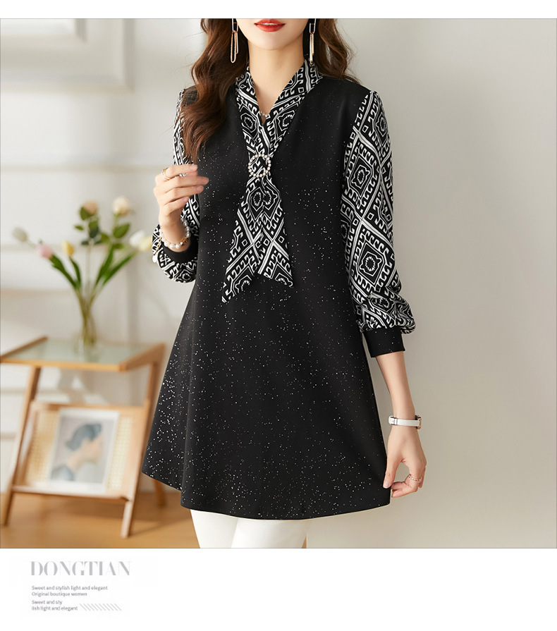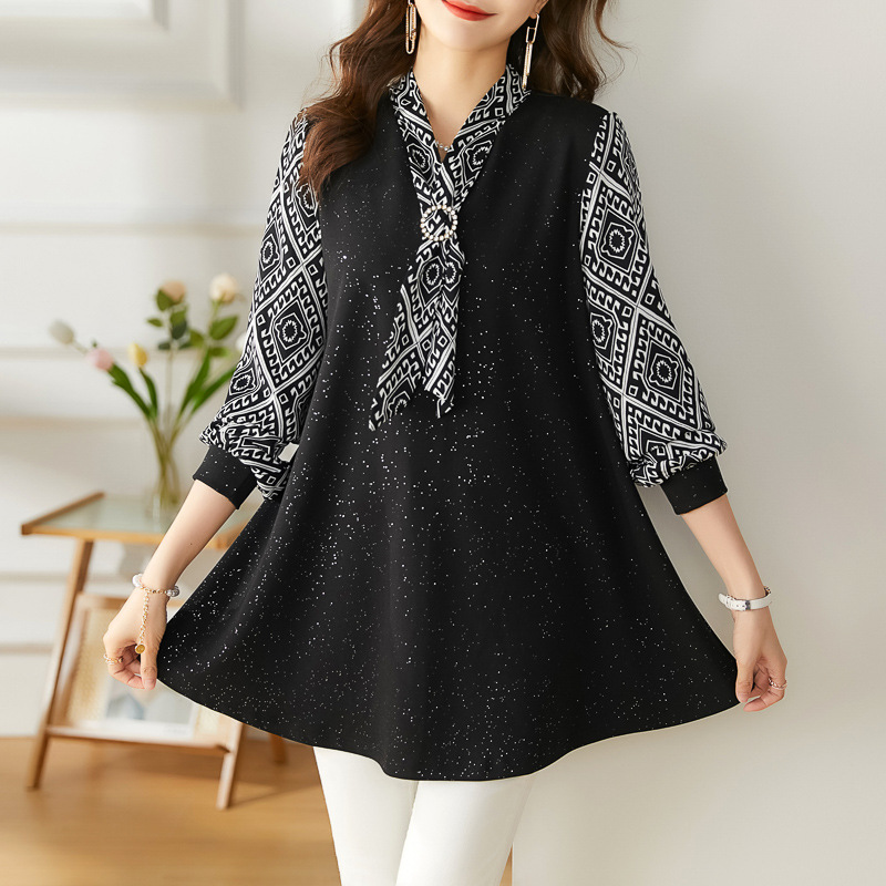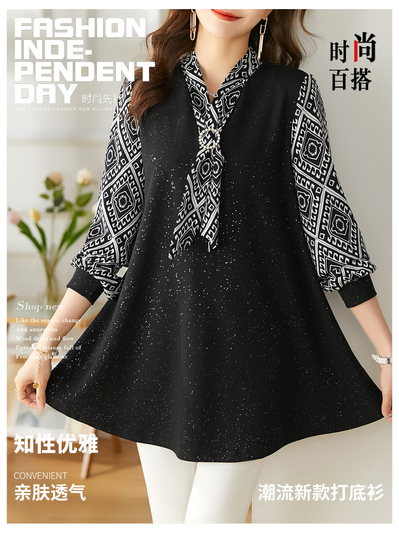 Подавленная женская футболка большого размера 2024 осенняя толстая толстая ММ свободная тонкая и длинная толстовка с позолотой