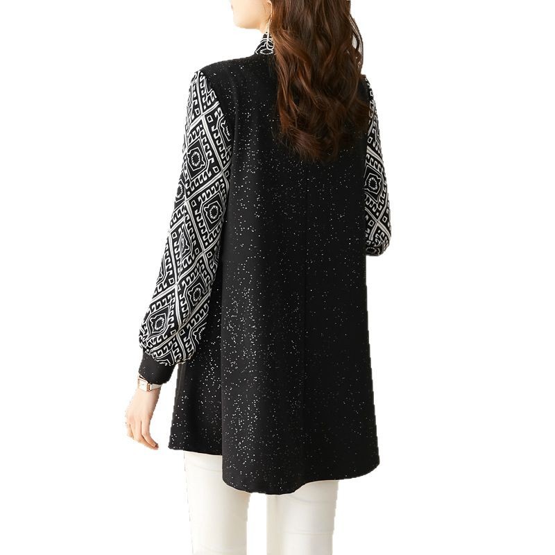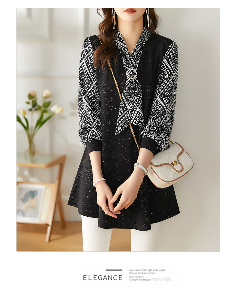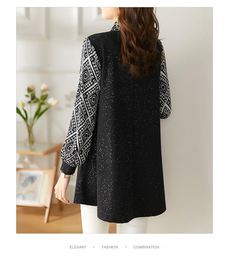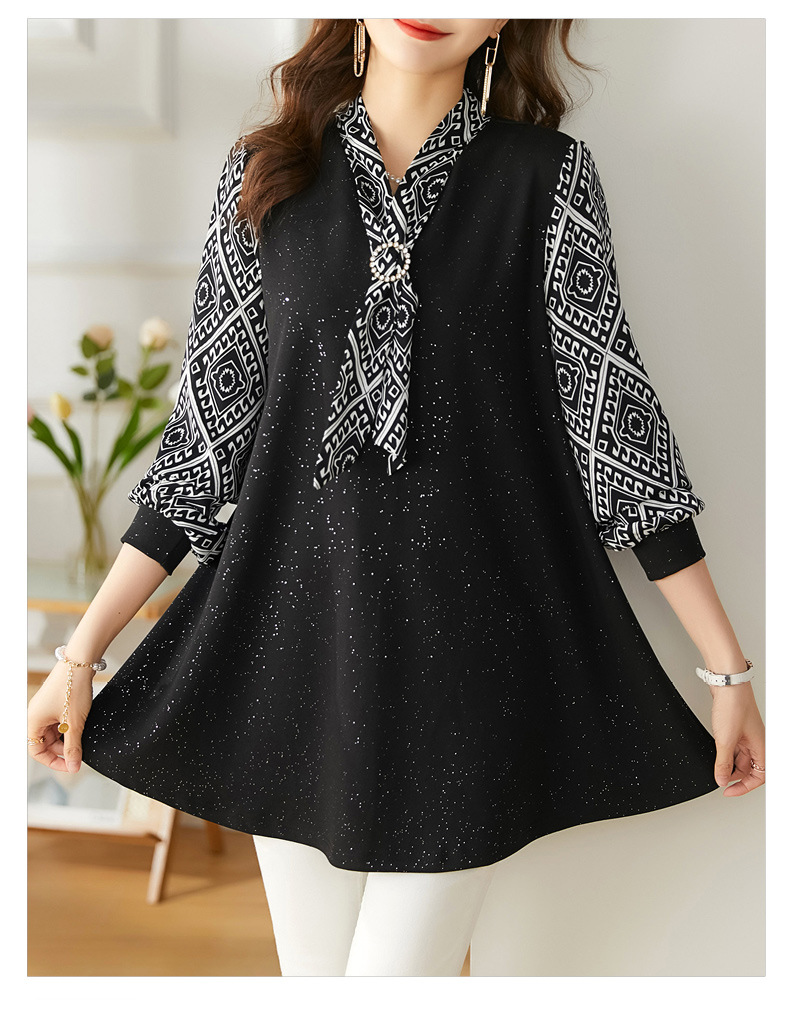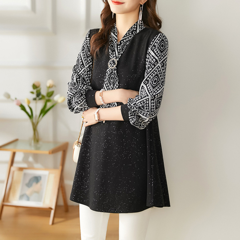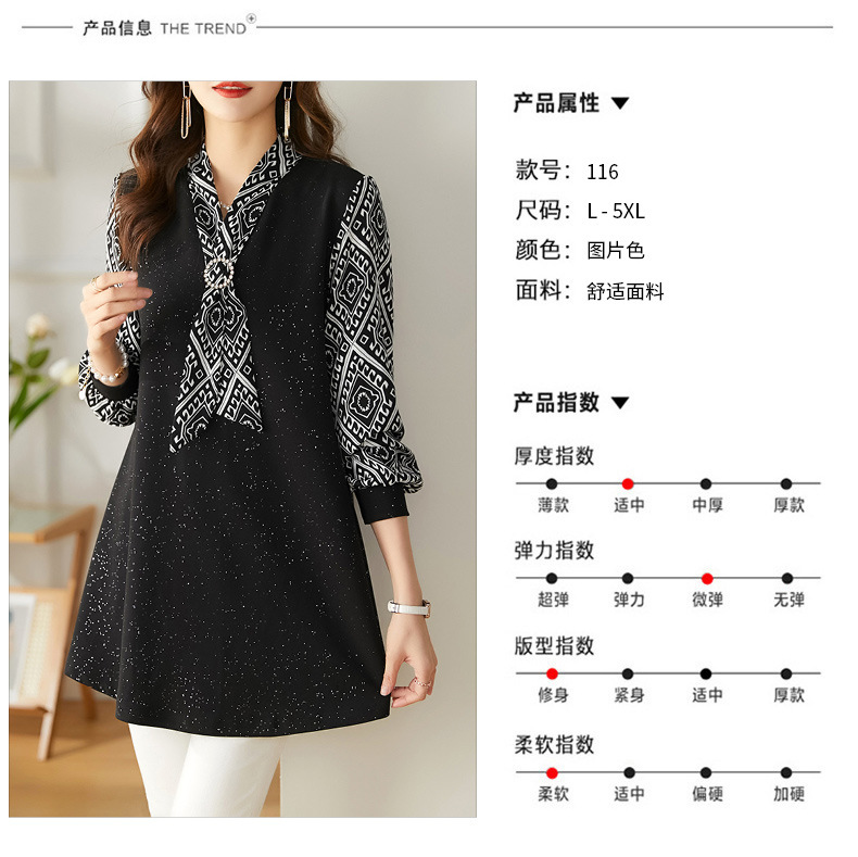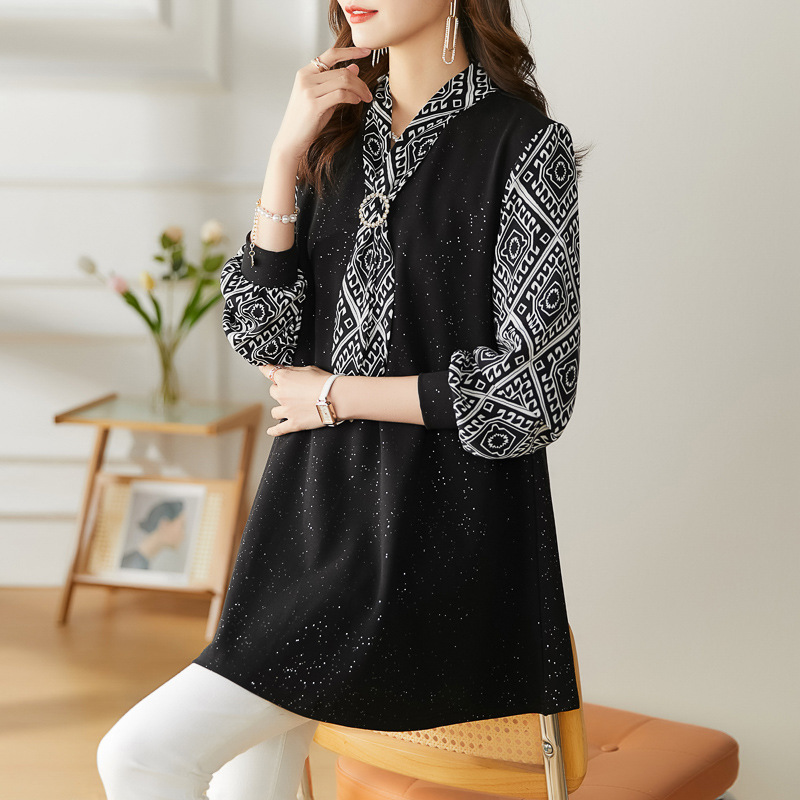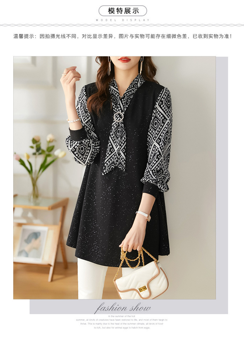 Подавленная женская футболка большого размера 2024 осенняя толстая толстая ММ свободная тонкая и длинная толстовка с позолотой