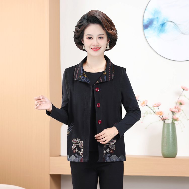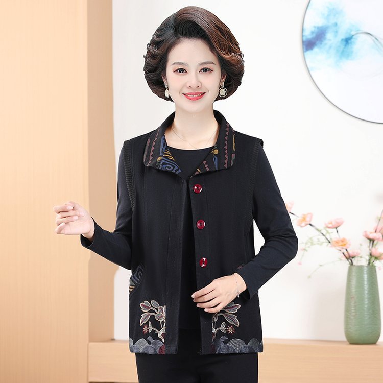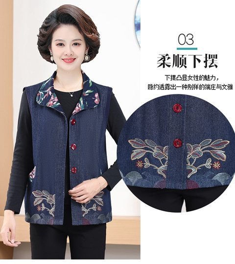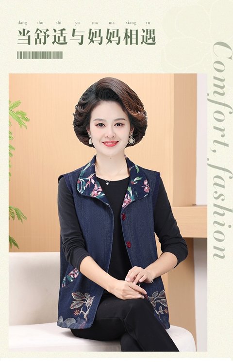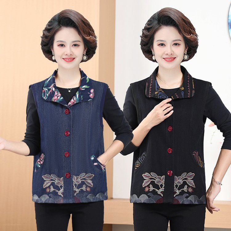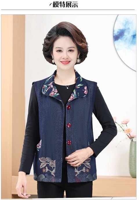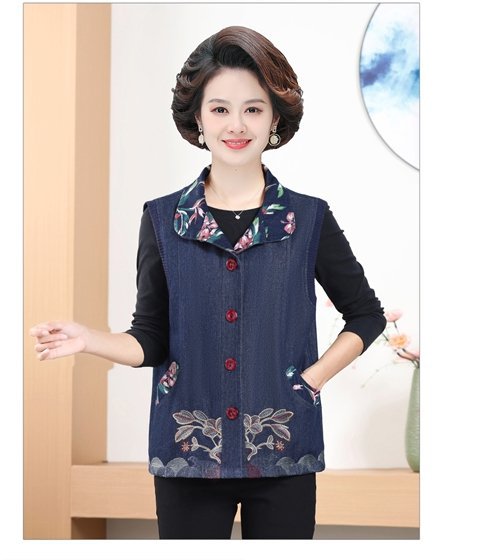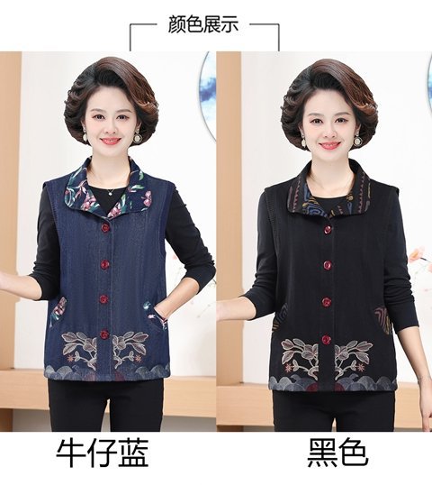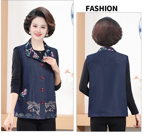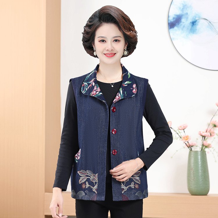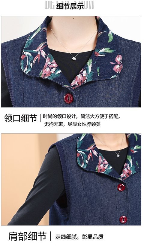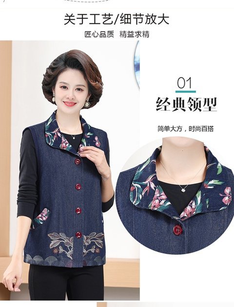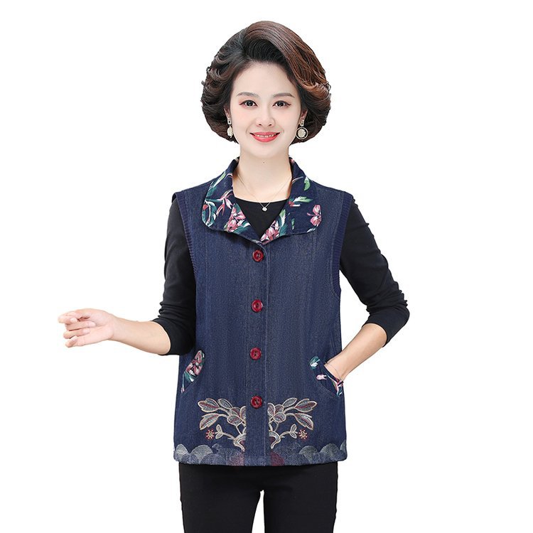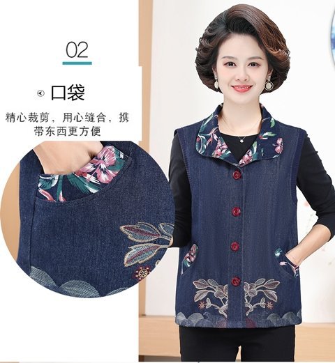 Мама жилет весенне-осенний джинсовый тонкий наплечный костюм новый средний и пожилой пожилой бабушки жилет