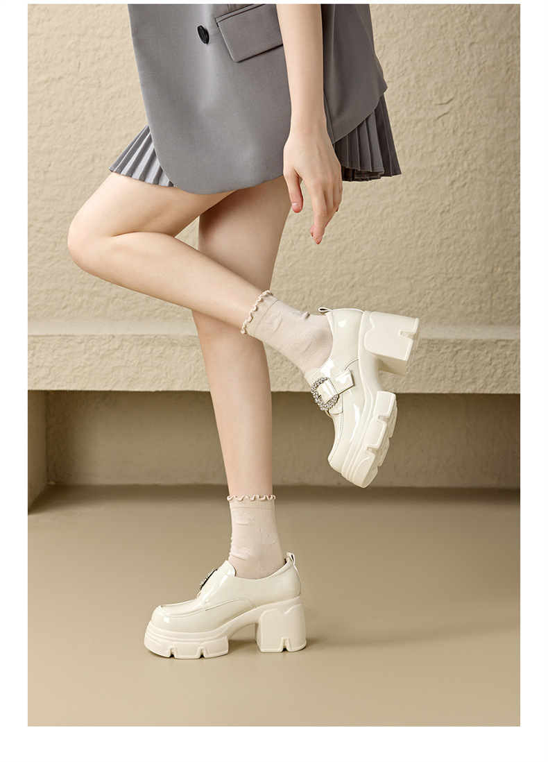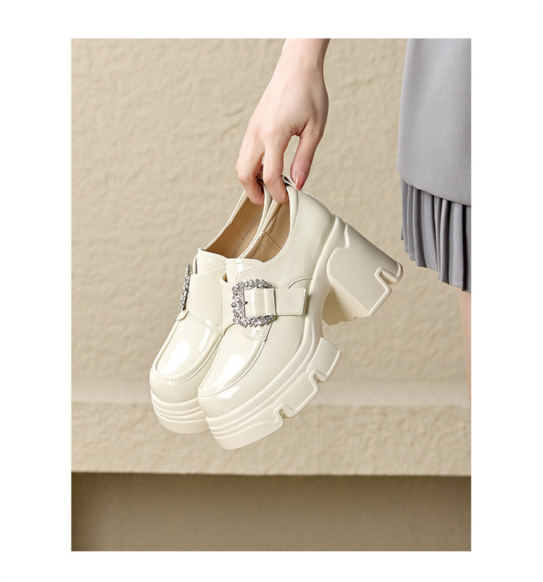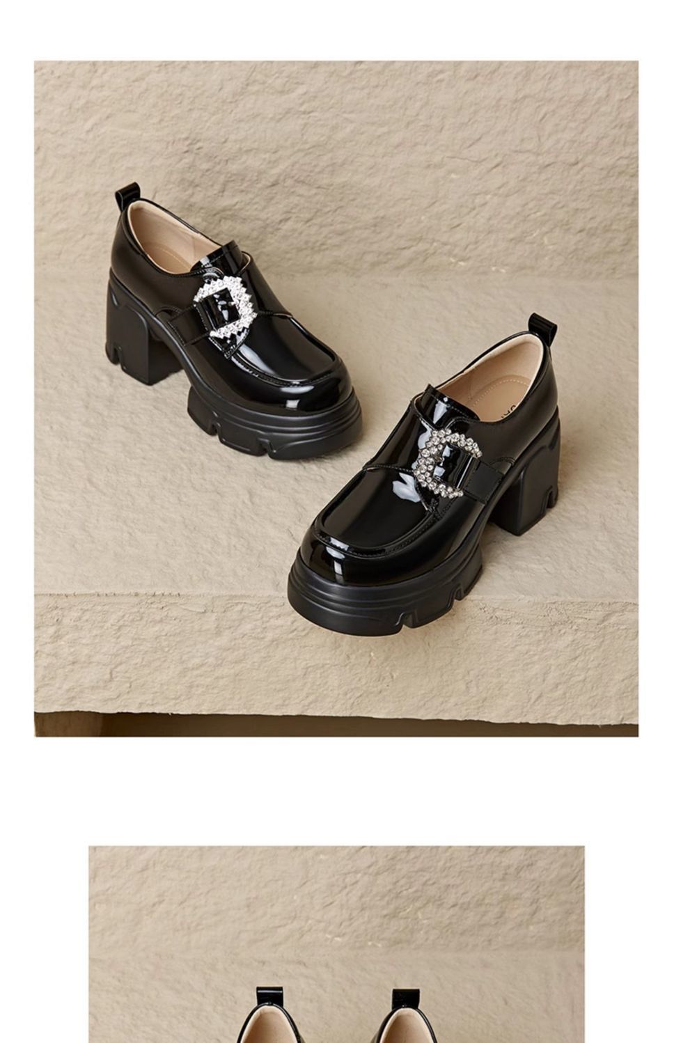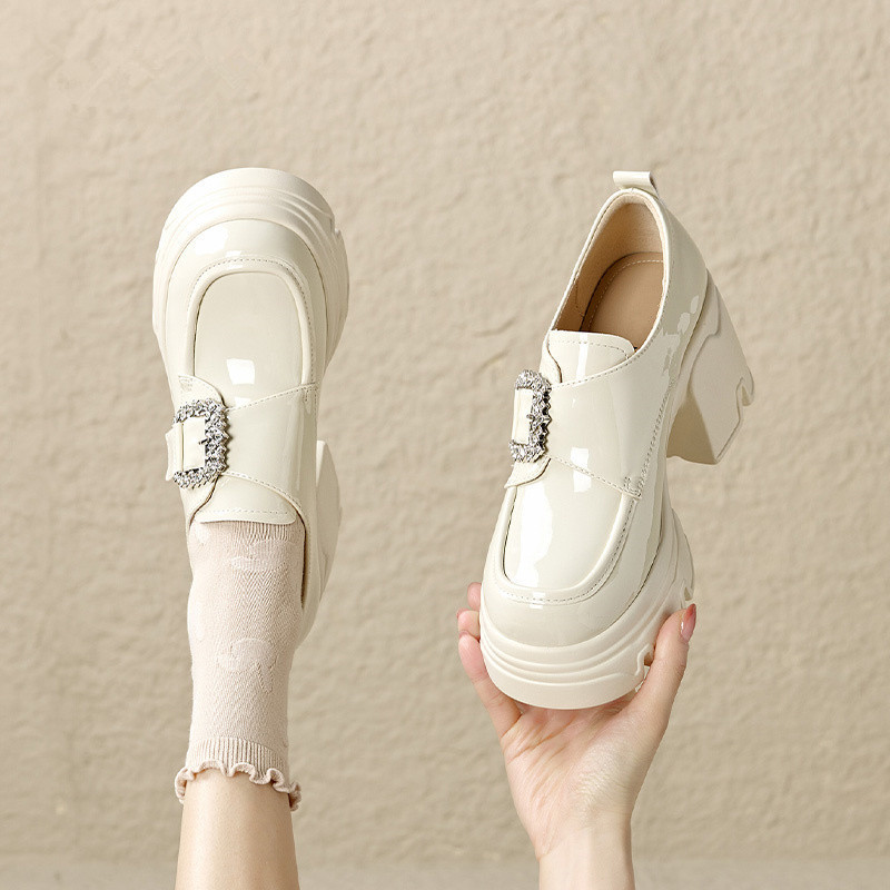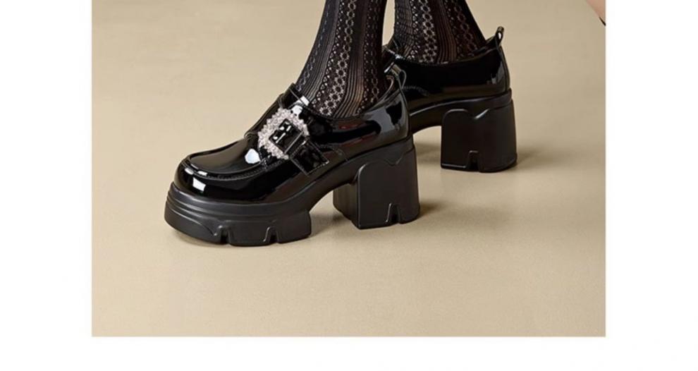 Туфли Le Fu женские летние новые туфли на каблуках весной и осенью в британском стиле лакированные черные кожаные туфли