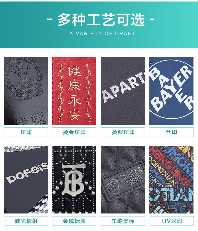 Книга информации о продукте, кожаная обложка, горячее тиснение логотипа, фабрика одежды, образец ткани, переплет, брошюра
