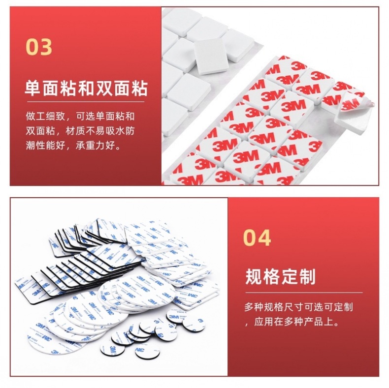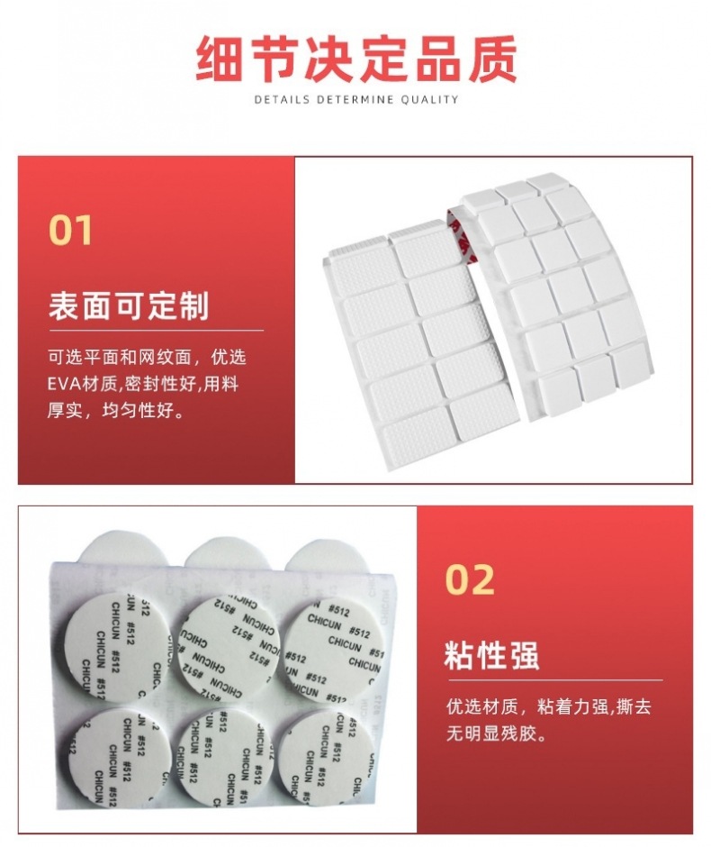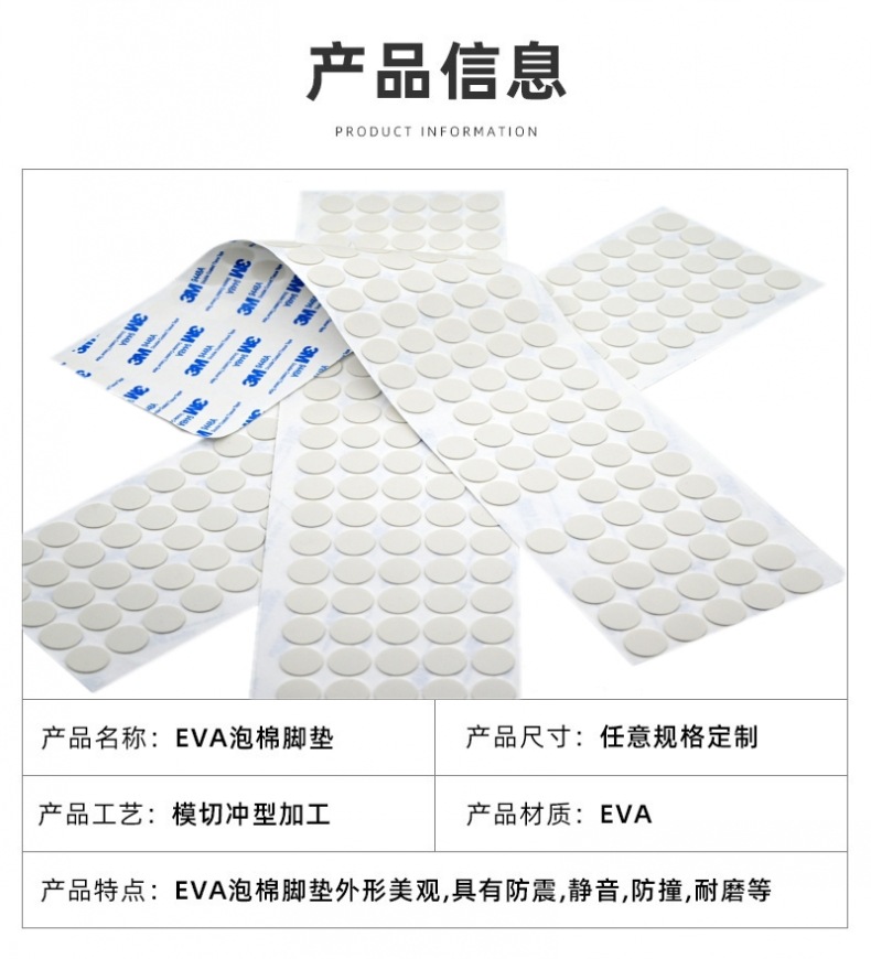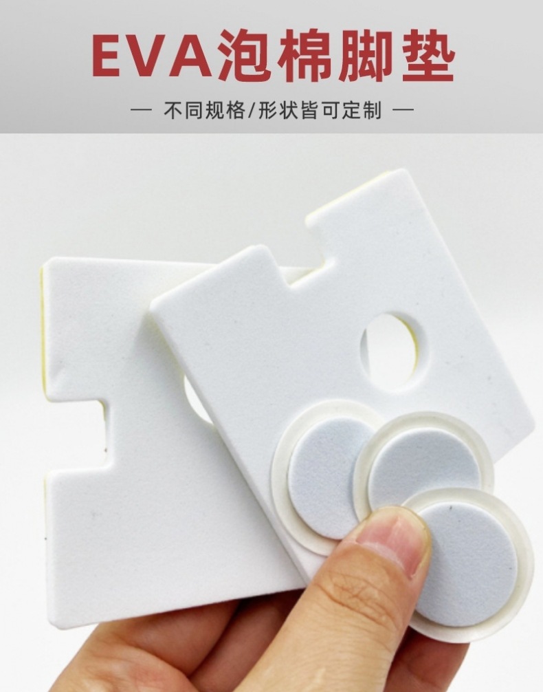 EVA脚垫主要适用电子、电器、机器、数码、高新产品、家具、玩具、五金塑胶、印刷面板等行业的防震、缓冲、防滑之首选。广泛应用于预防电子电器家具,陶瓷玻璃木器金属等产品底部受到磨擦刮花刮损,也可降低物件移动所产生的噪音,弥补电器、家具脚位不平,同时能够起到防滑、防震、缓冲等诸多功效。
