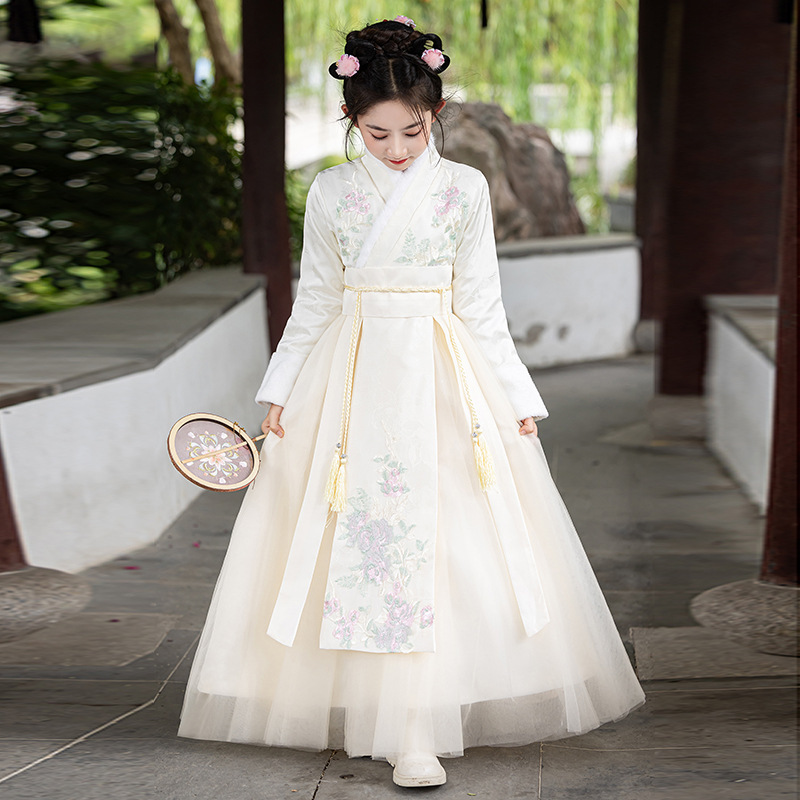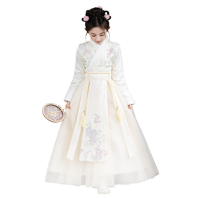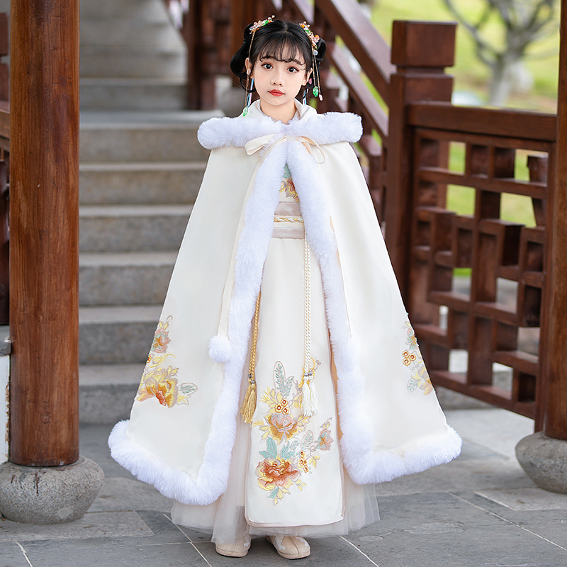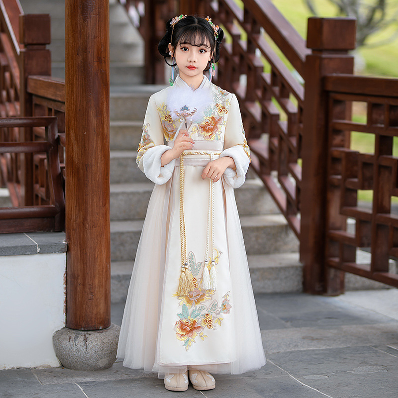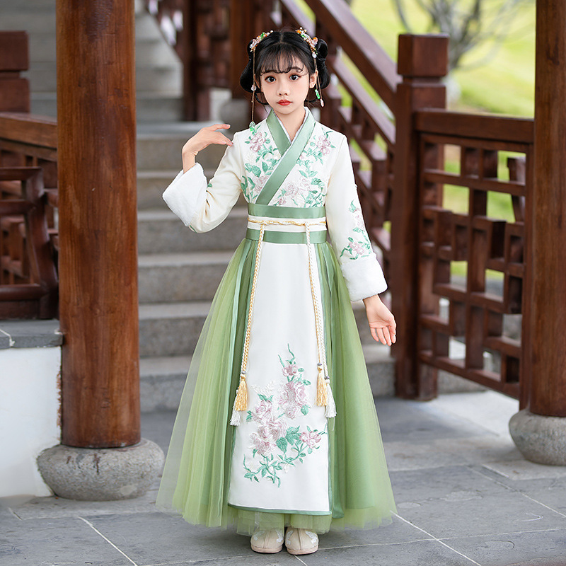 Детский костюм Ханьфу в китайском стиле, сказочный наряд в стиле династии Тан для девочек, новогодний наряд для малышей, утепленная осенне-зимняя версия.
