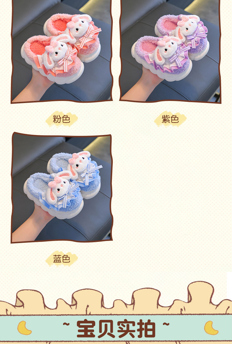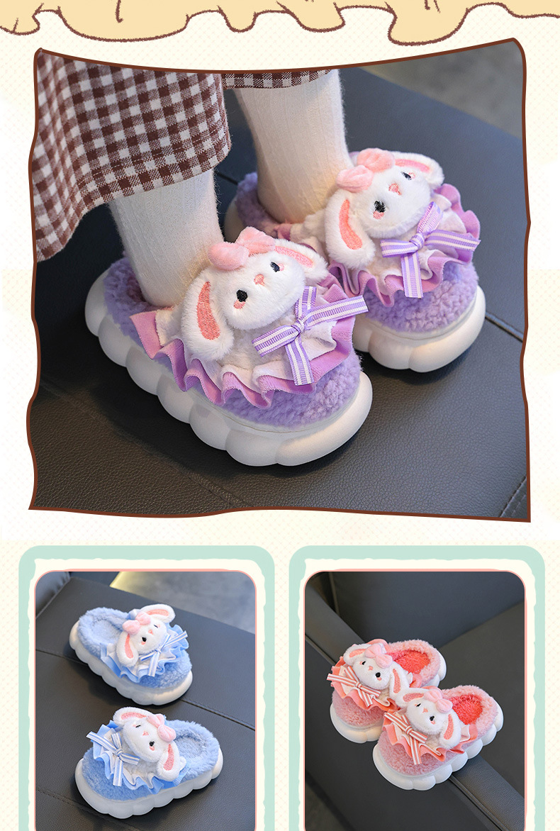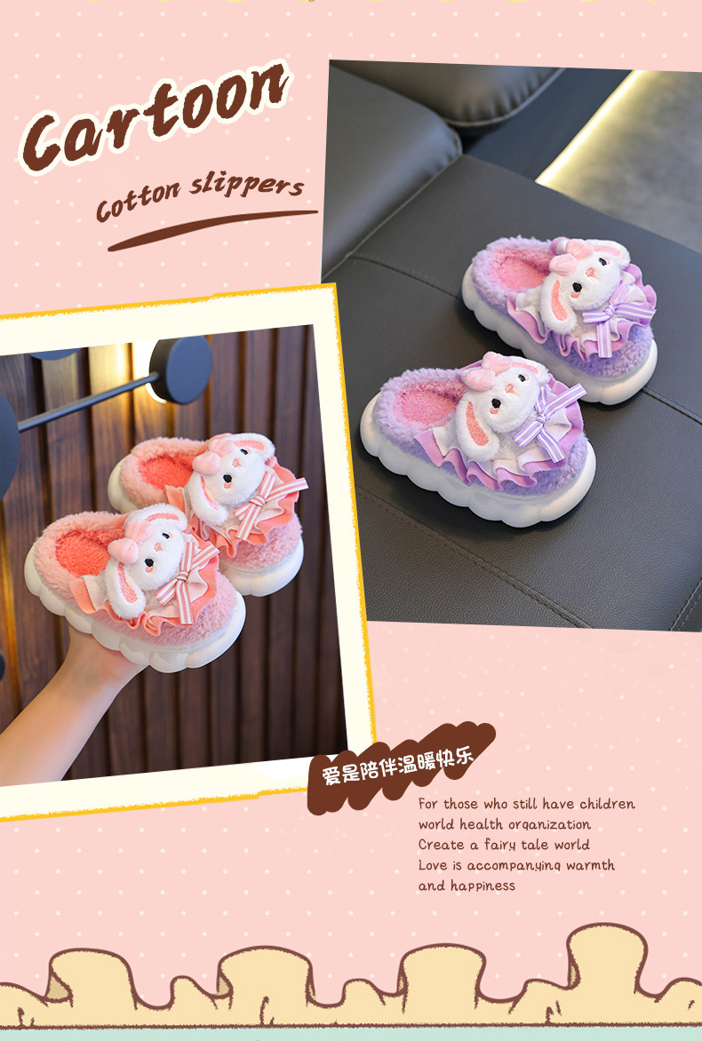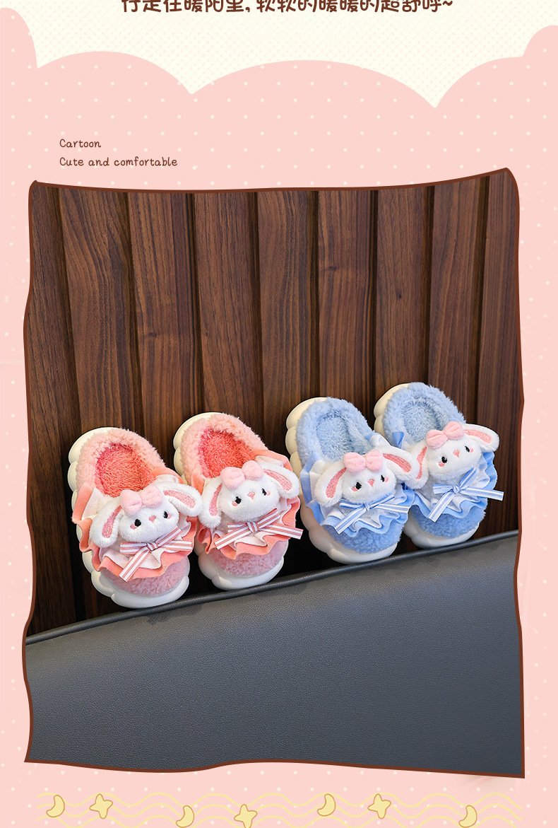 2024 Новые зимние детские хлопковые тапочки для девочек, милые теплые плюшевые тапочки с кроличьим мехом, домашние хлопковые тапочки для малышей
