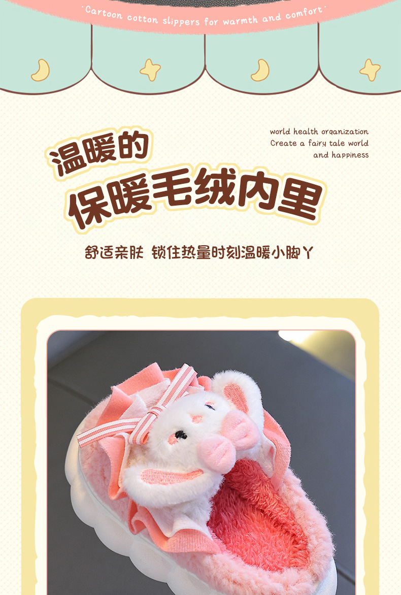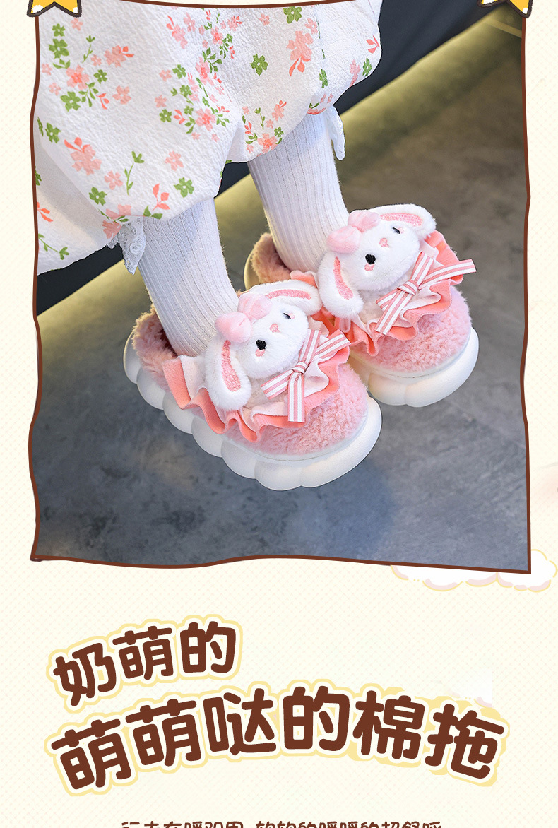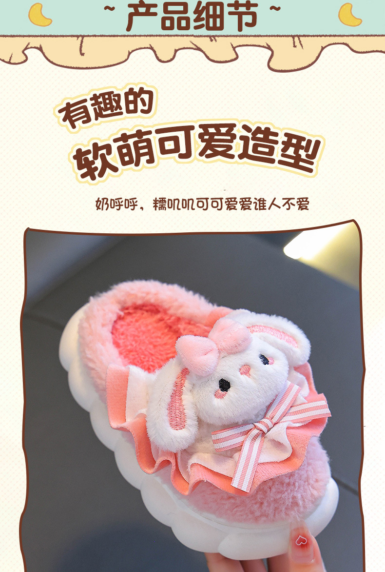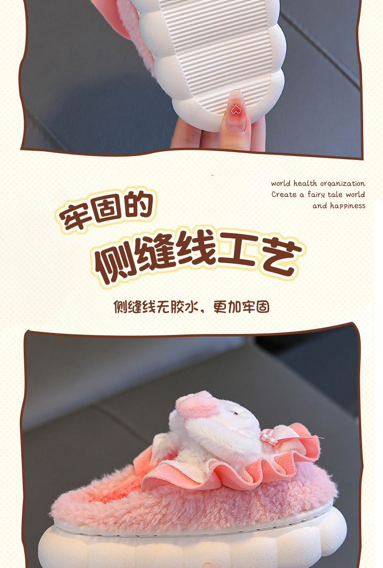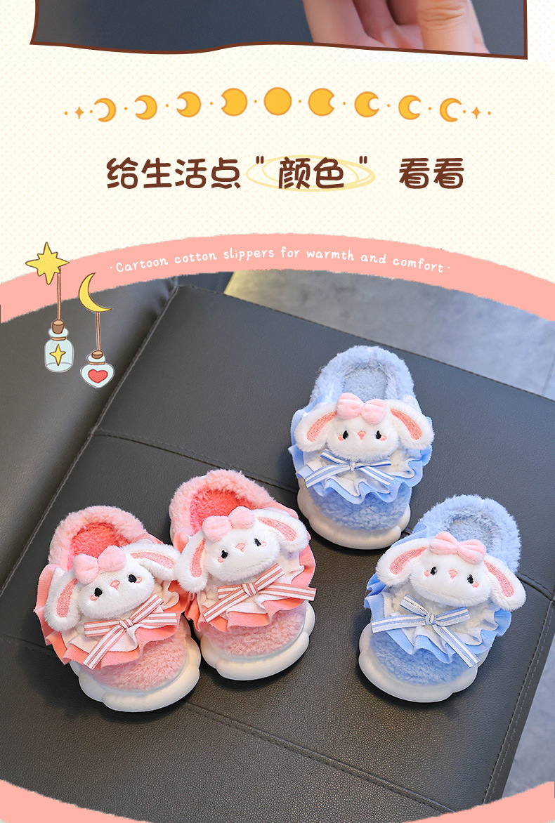 2024 Новые зимние детские хлопковые тапочки для девочек, милые теплые плюшевые тапочки с кроличьим мехом, домашние хлопковые тапочки для малышей