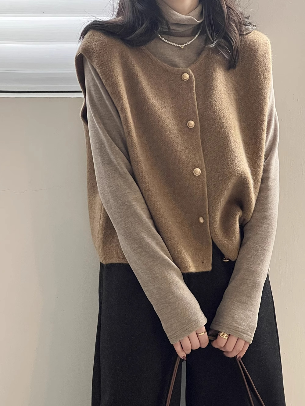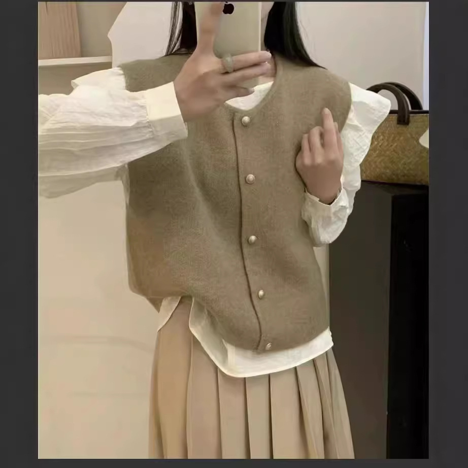 Корейский ретро короткий трикотажный жилет женский новый осенний и зимний свободный
