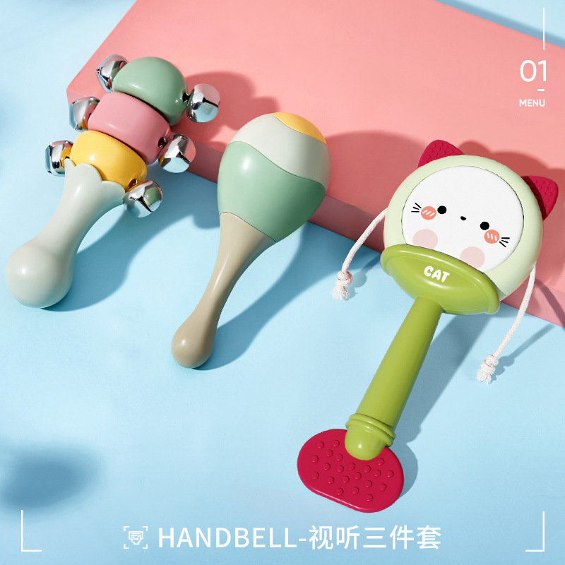 [Мешок] Песчаный молоток; [Сумка] Ручной звонок; красная погремушка; зеленая погремушка; [Сумка] Песочный молоток + погремушка; Песочный молоток + погремушка + погремушка (трава зеленая); Песочный молоток + погремушка + погремушка (оранжево-красный); Новая подарочная коробка из трех предметов, синяя.; [В коробке] Песчаный молоток