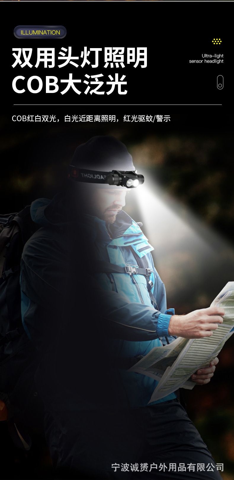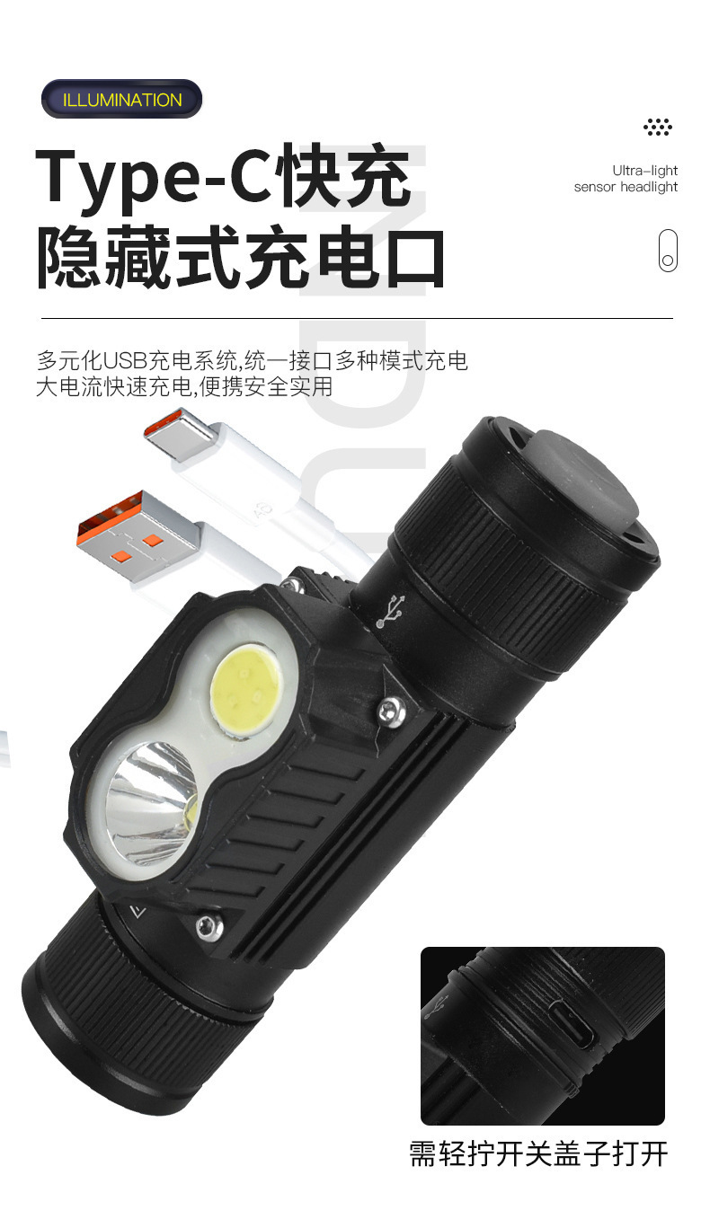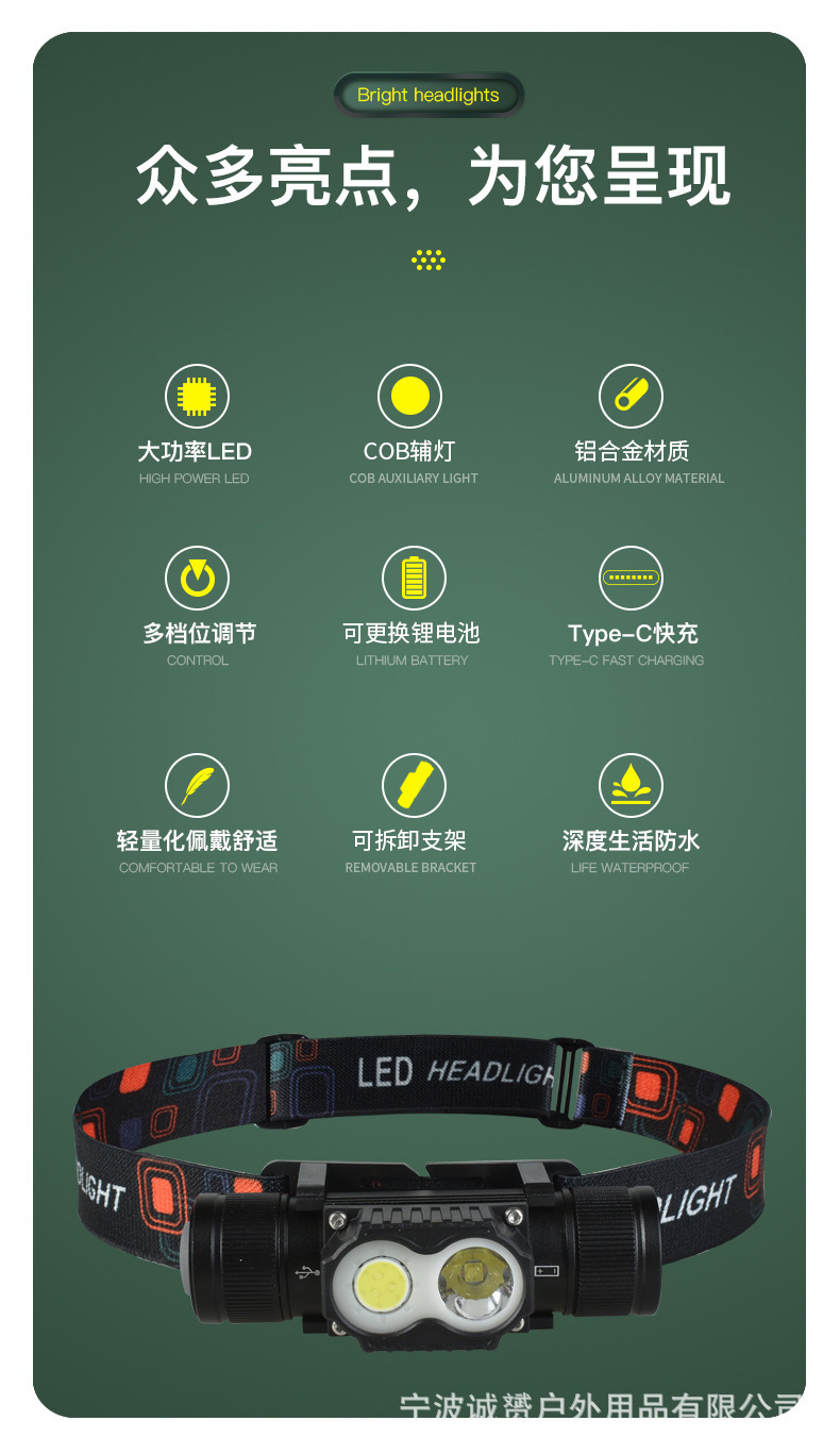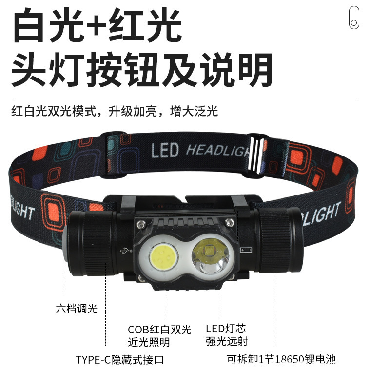 Новый светодиодный мощный светильник для кемпинга, ночной рыбалки, фара Type-c, перезаряжаемый фонарик из алюминиевого сплава, фара двойного назначения