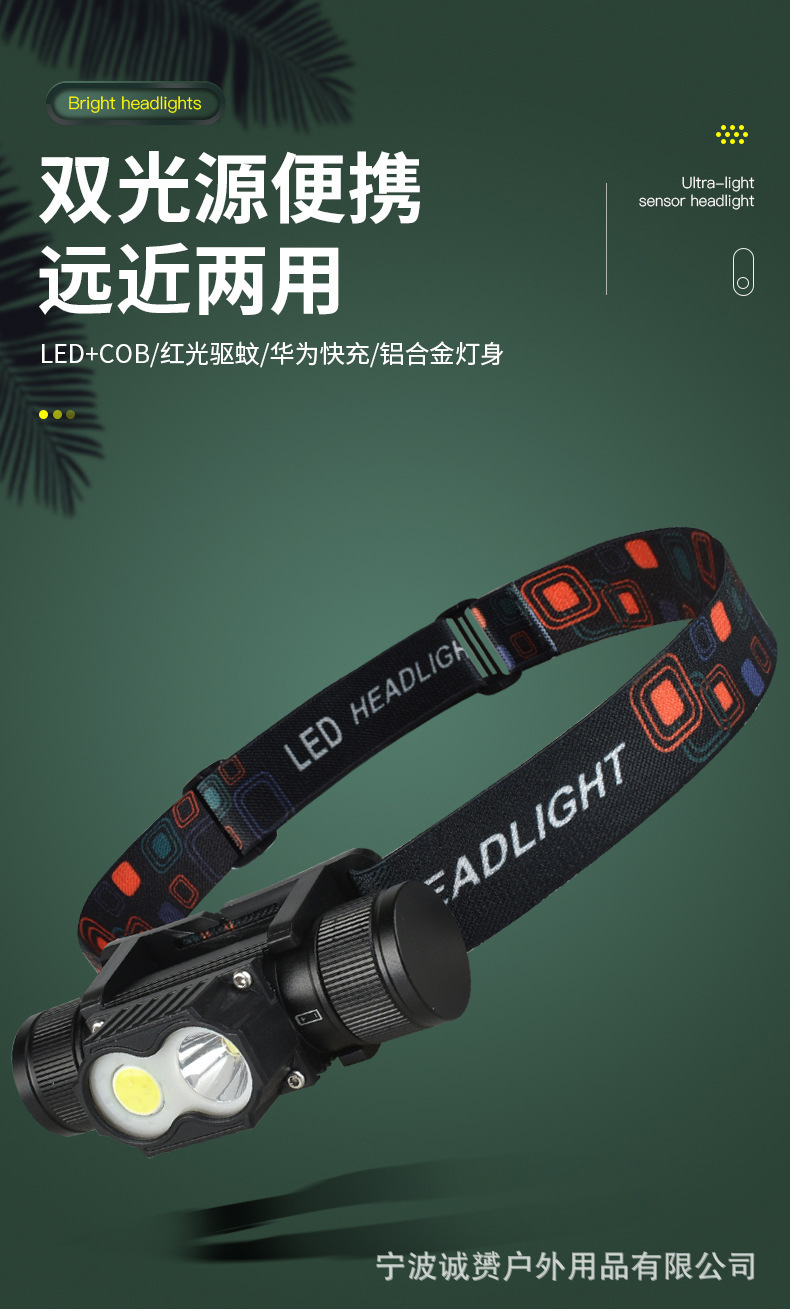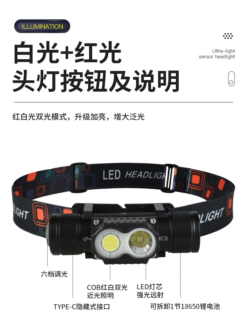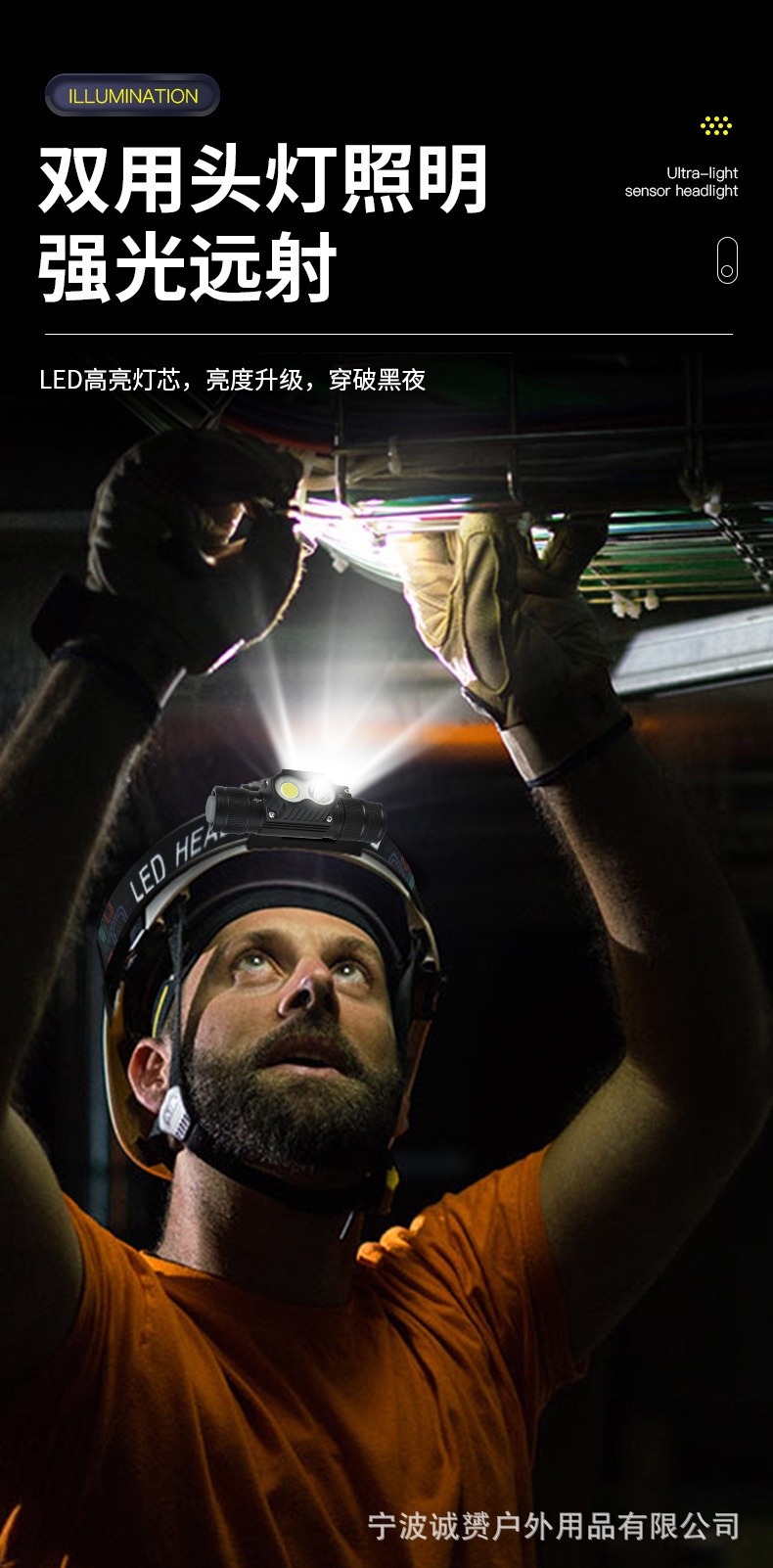Новый светодиодный мощный светильник для кемпинга, ночной рыбалки, фара Type-c, перезаряжаемый фонарик из алюминиевого сплава, фара двойного назначения