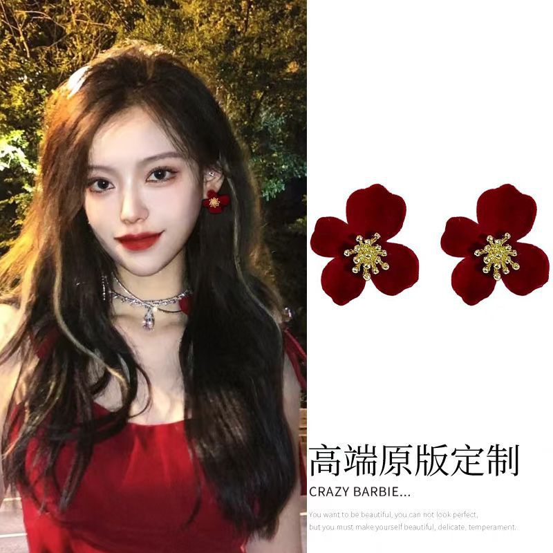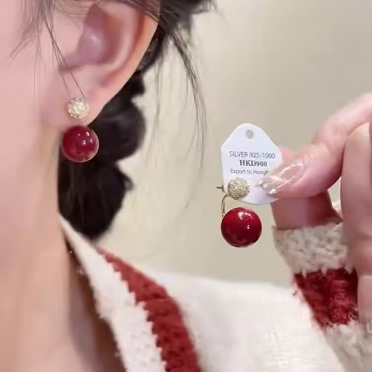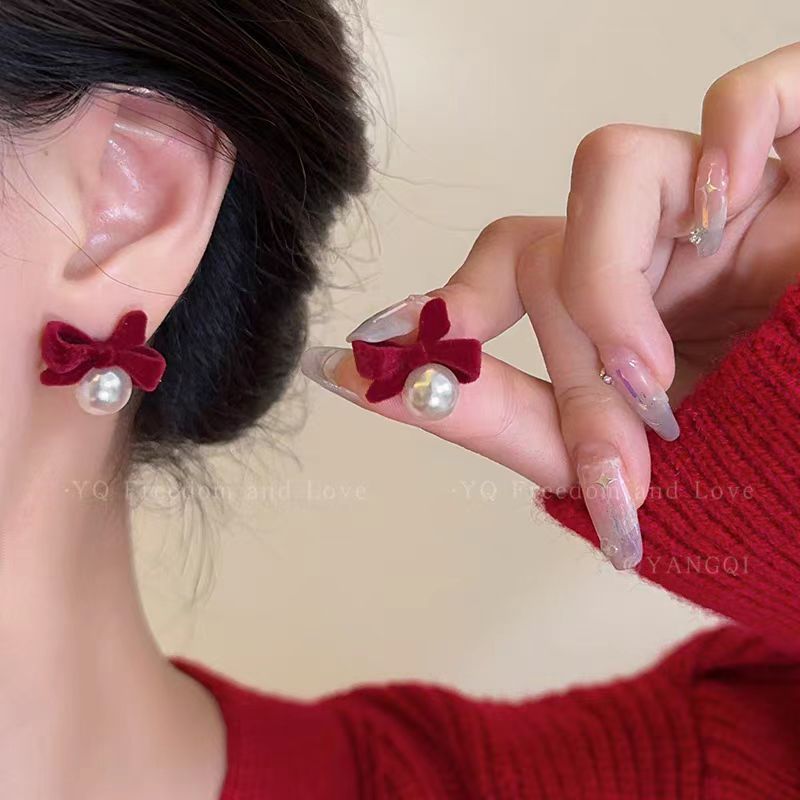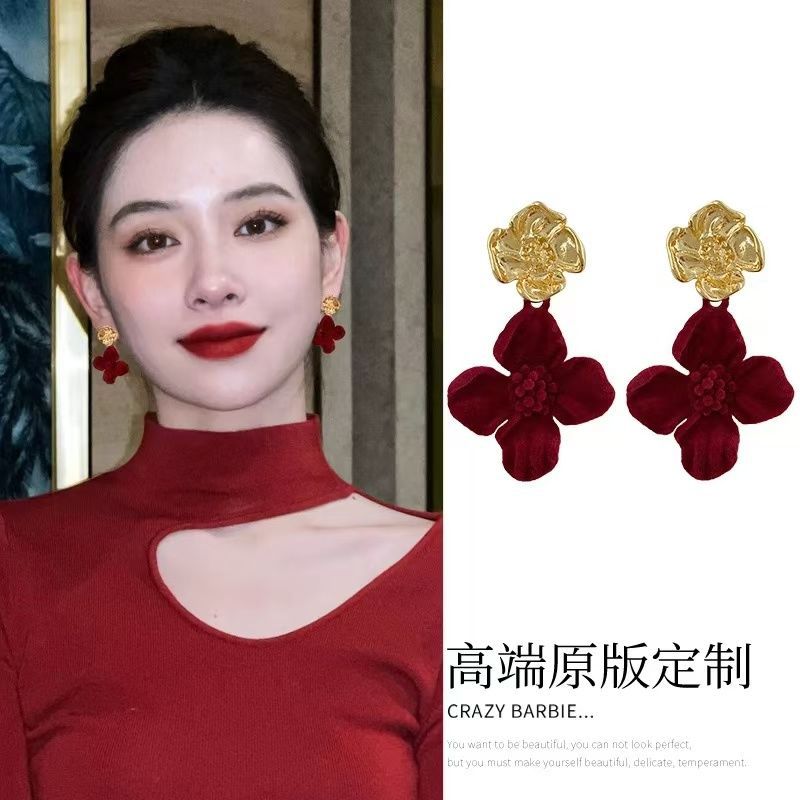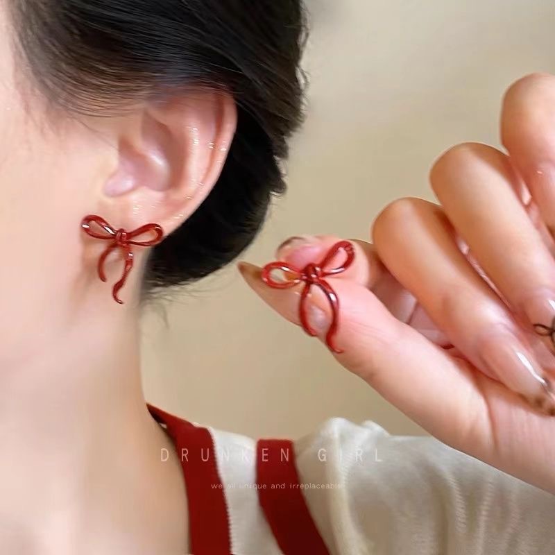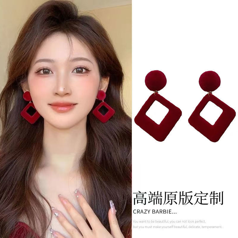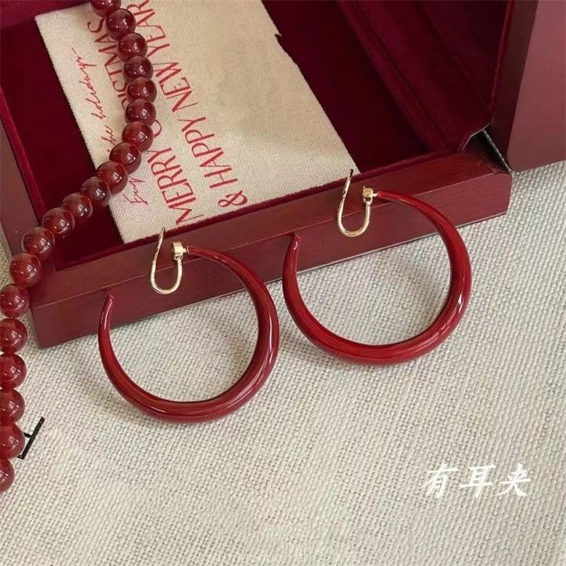 Коллекция ~ Красные серьги Ancora, клипсы, бордовые серьги для осени и зимы, новогодние с эффектом глазури и флокирования, простые, но элитные