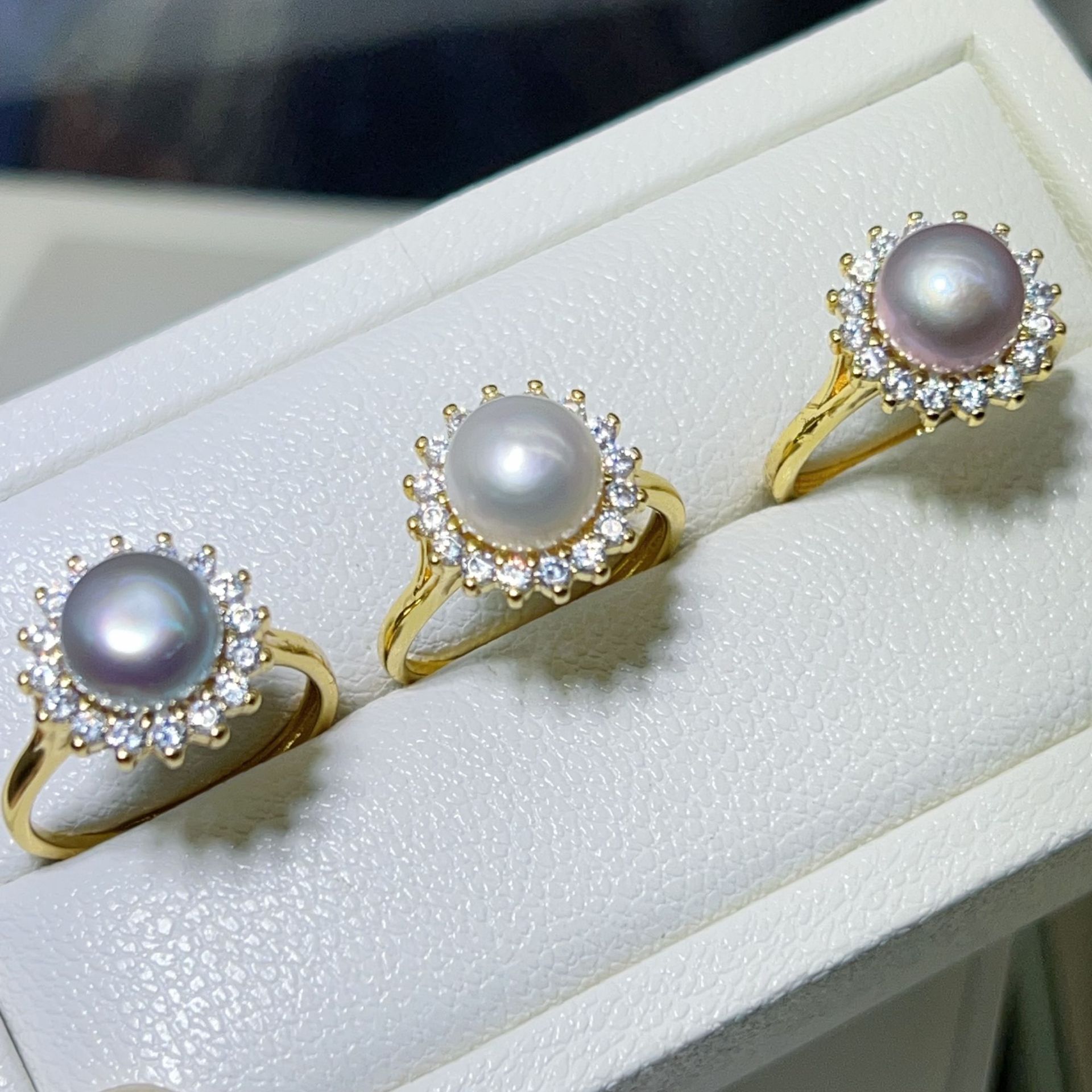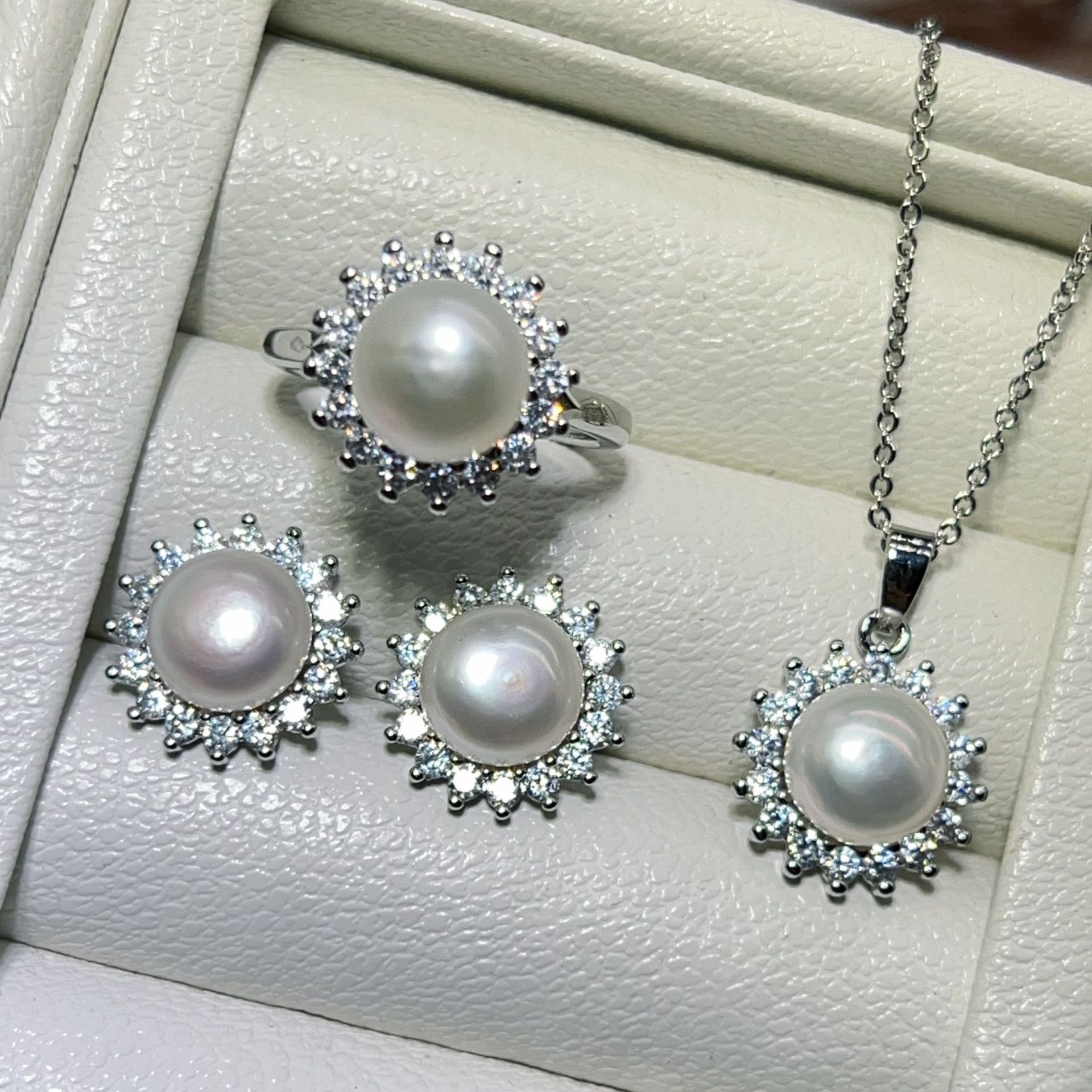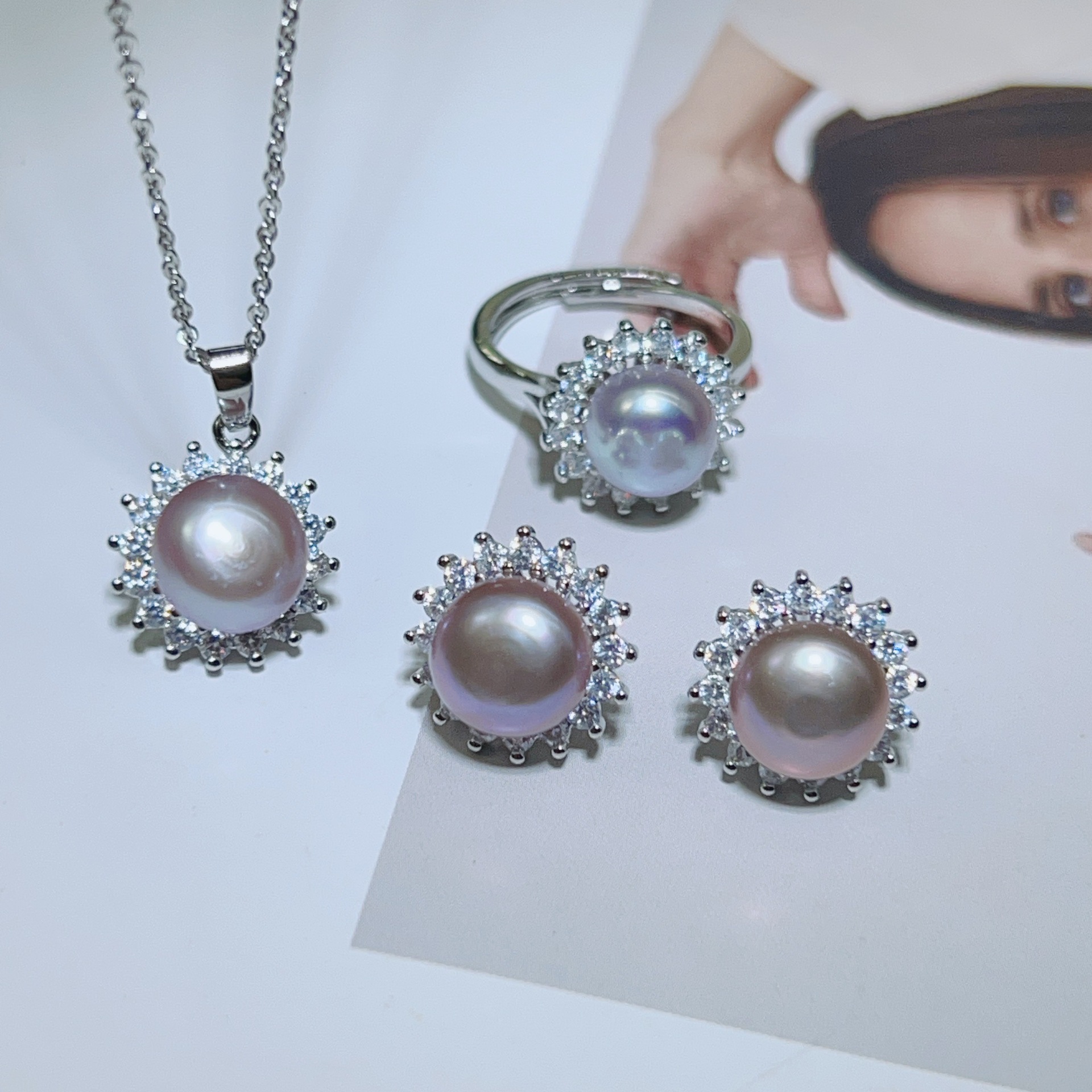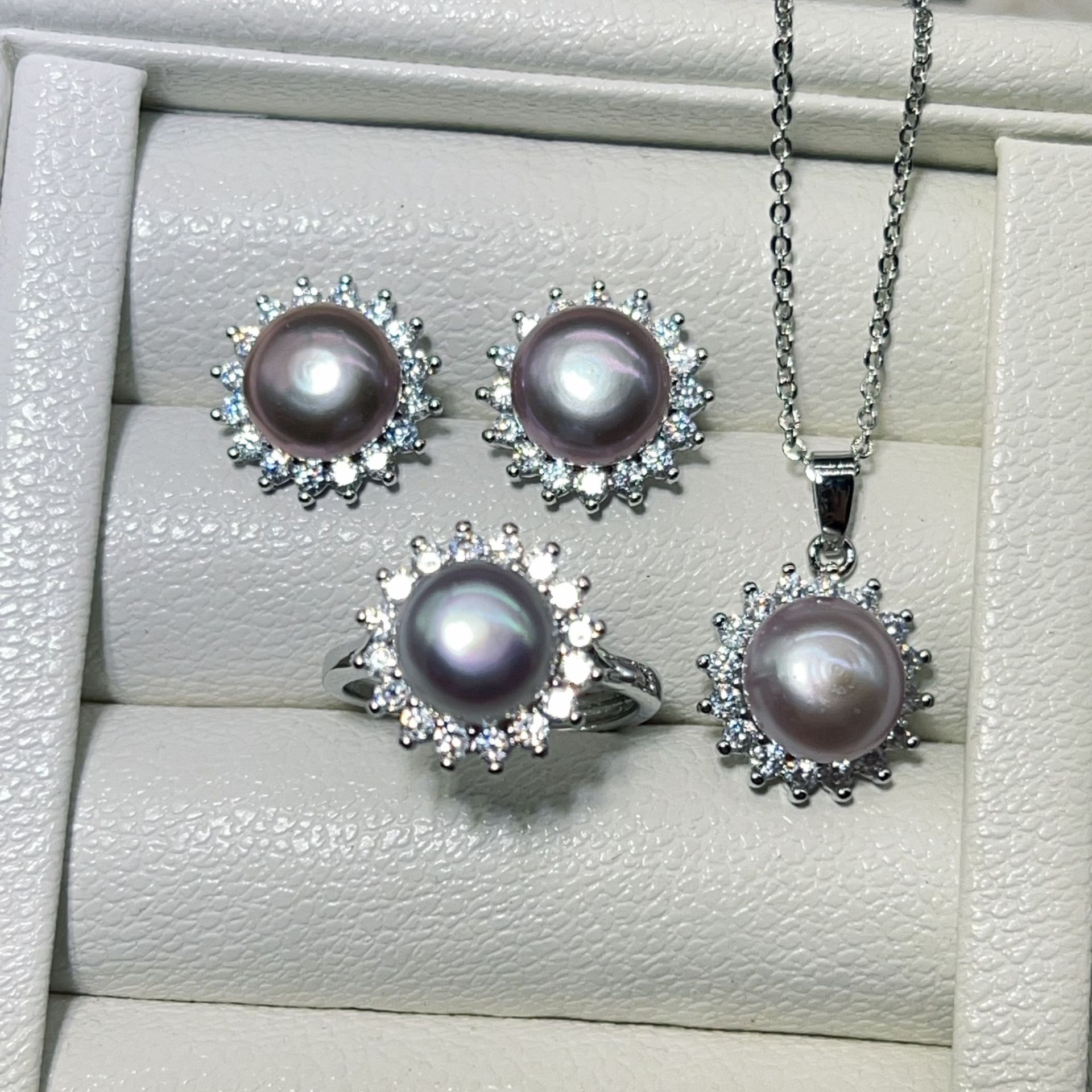 серьги с белым жемчугом; серьги с розовым жемчугом; серые жемчужные серьги; кольцо с белым жемчугом; кольцо с розовым жемчугом; серые жемчужное кольцо; ожерелье из белого жемчуга; ожерелье с розовым жемчугом; ожерелье из серого жемчуга