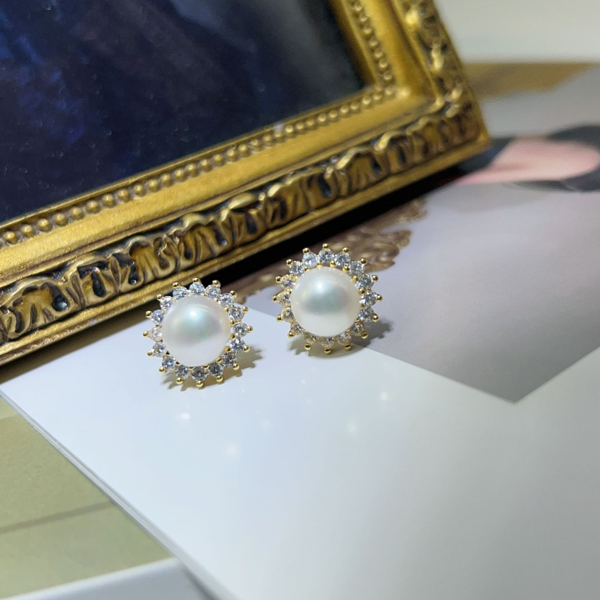 Комплект ювелирных изделий из жемчуга Zhuji для женщин высокого уровня S925 Серебряная игла позолоченная пресноводная жемчужина набор из трех частей элегантный большой квадрат