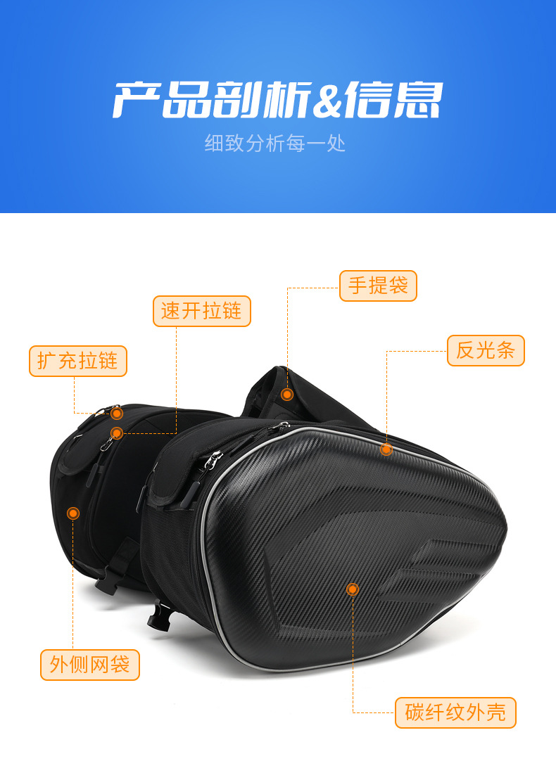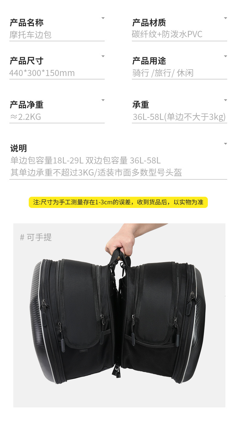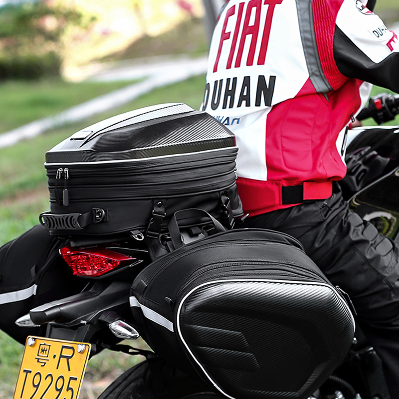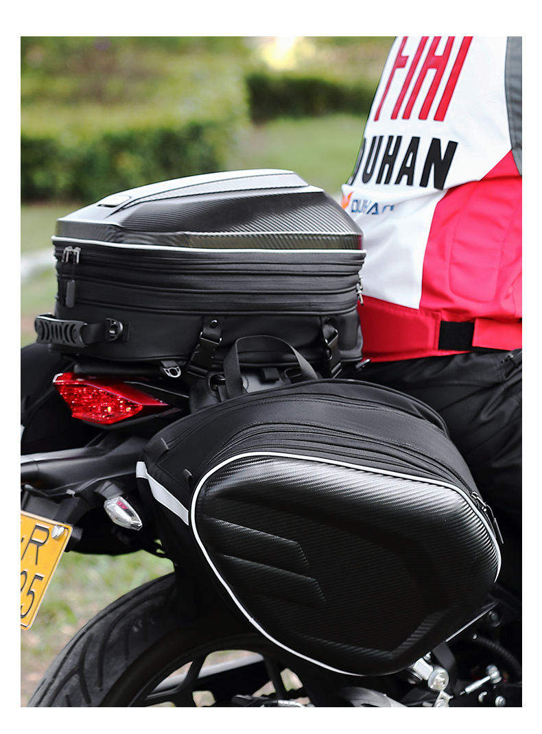 Седельная сумка — одна пара — узор из углеродного волокна [может вместить шлем]; Седельная сумка - одна пара - ткань Оксфорд [может вместить шлем]