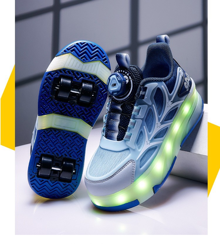 Трансграничные кроссовки производители оптовая зарядная светящаяся обувь светодиодные огни дети взрослые коньки с колесами вращающейся пуговицы