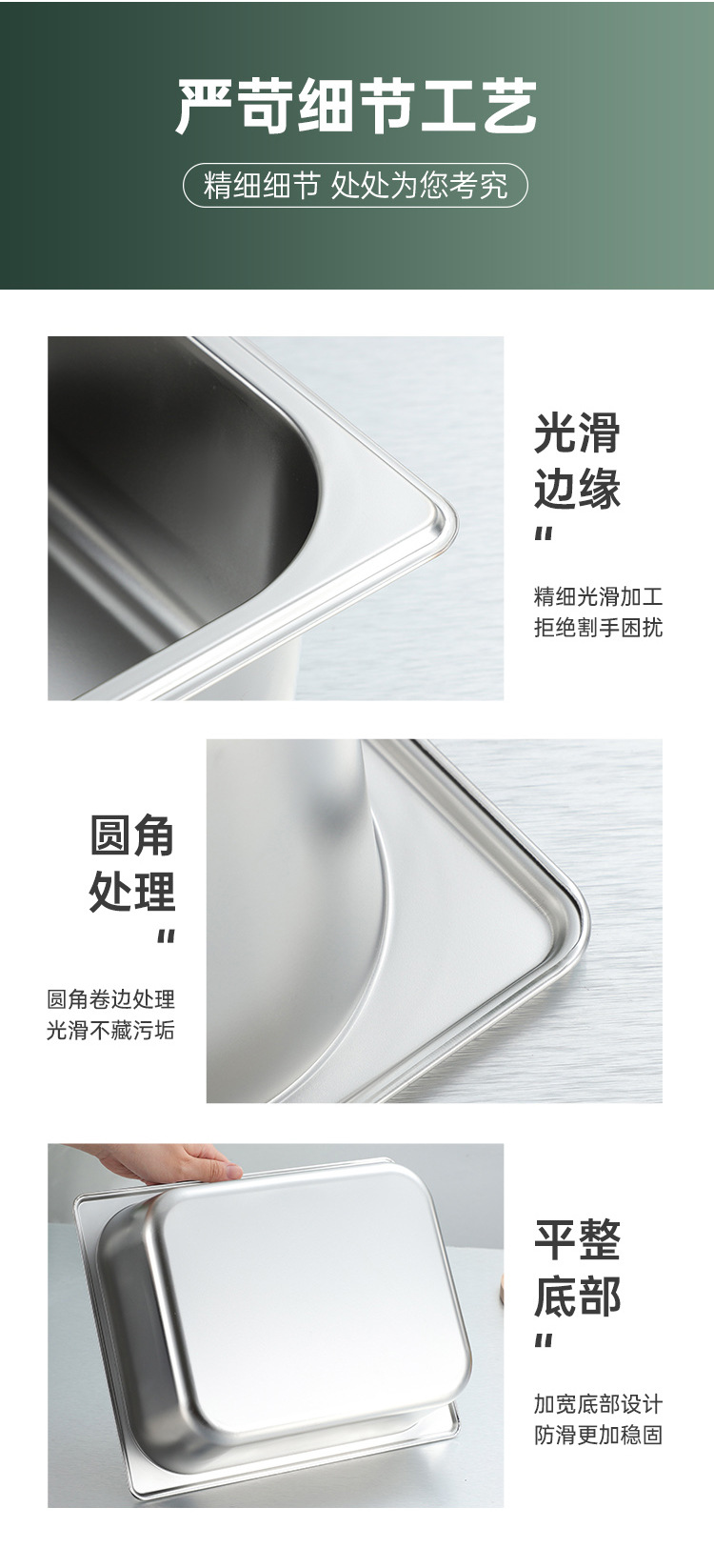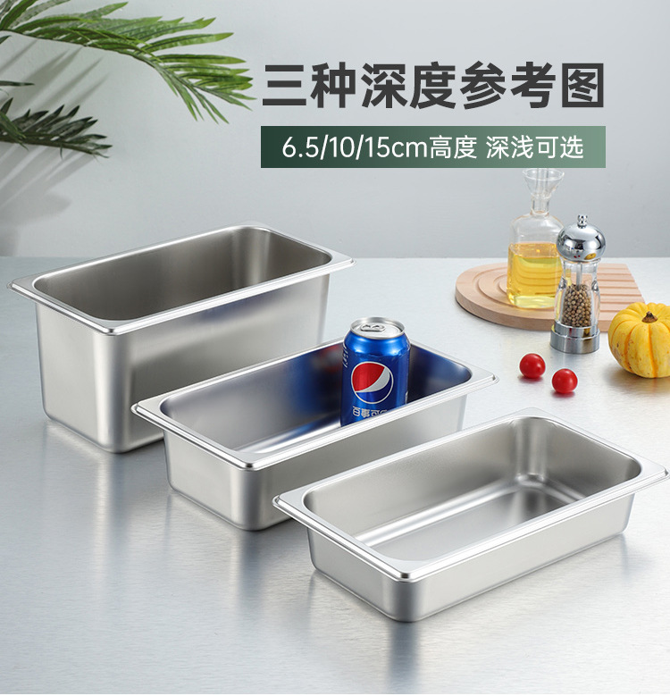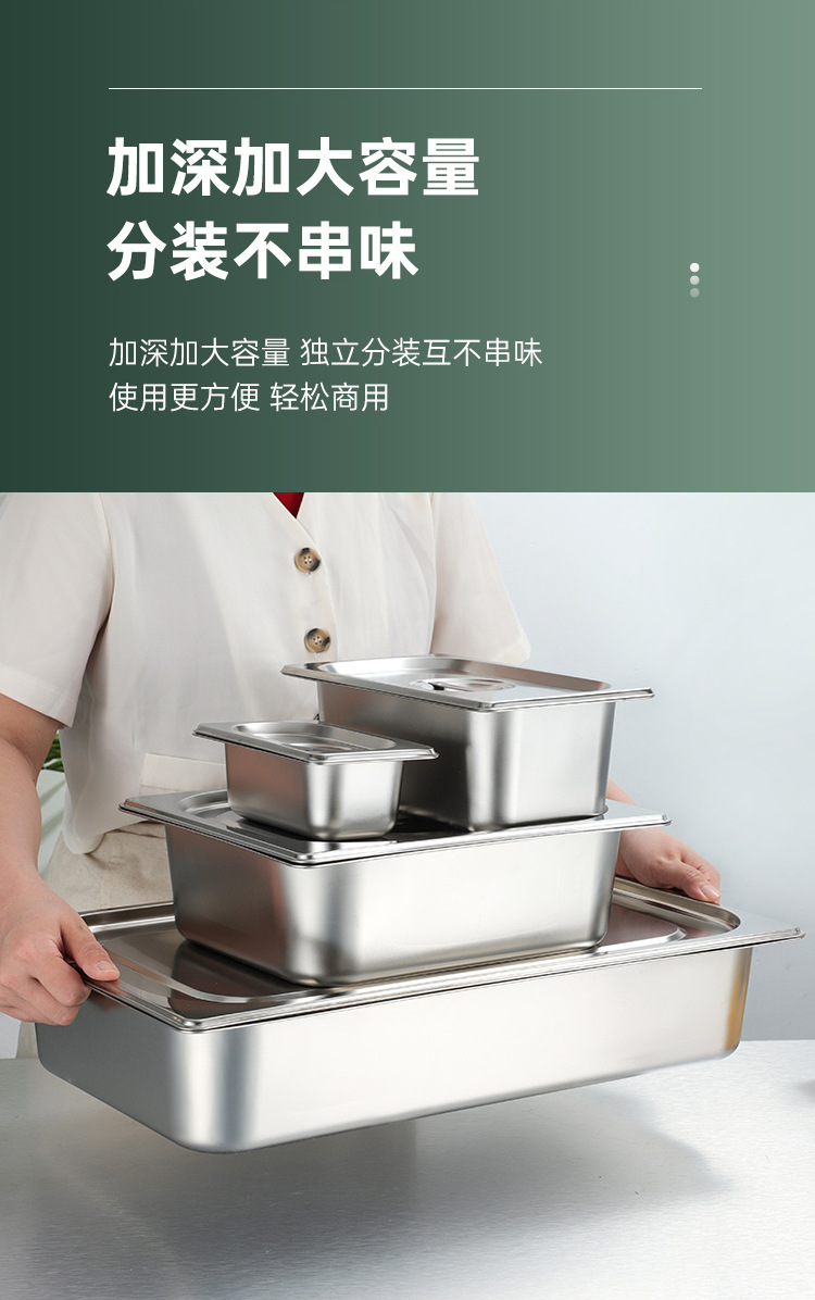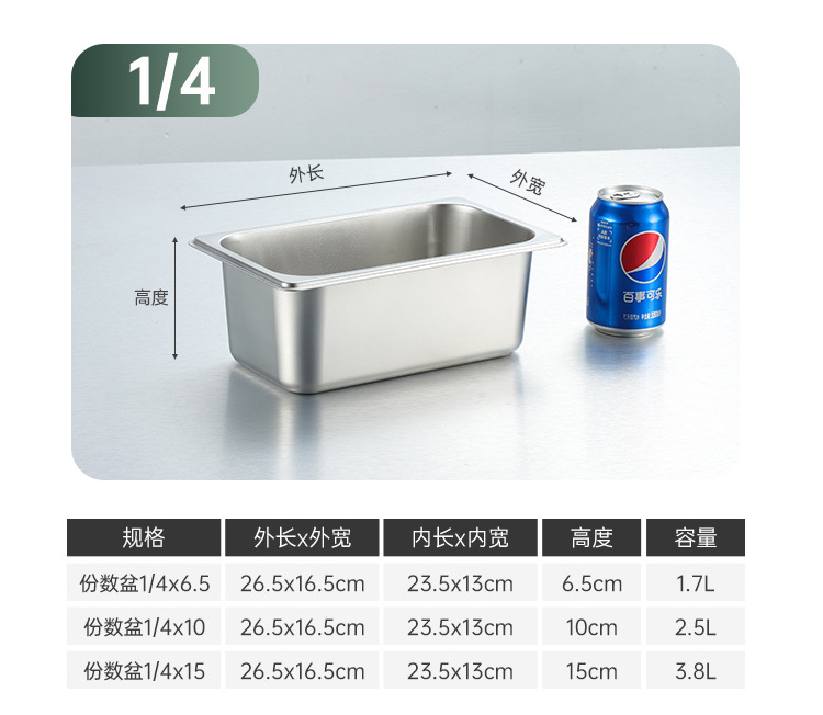 1/1【530*325*15CM】; 1/1【530*325*10CM】; 1/1【530*325*6.5CM】; 1/1【530*325*4CM】; 1/1【530*325*2.5CM】; 1/1 [загнутая крышка]; 1/2【325*265*15CM】; 1/2【325*265*10CM】; 1/2【325*265*6.5CM】; 1/2【325*265*4CM】; 1/2【325*265*2.5CM】; 1/2【закатаная крышка】; 1/3【325*175*15CM】; 1/3【325*175*10CM】; 1/3【325*175*6.5CM】; 1/3 [закатаная крышка]; 1/4【265*162*15CM】; 1/4【265*162*10CM】; 1/4【265*162*6.5CM】; 1/4 [закатаная крышка]; 1/6【176*162*15CM】; 1/6【176*162*10CM】; 1/6【176*162*6.5CM】; 1/6 [завитая крышка]; 1/9【176*108*15CM】; 1/9【176*108*10CM】; 1/9【176*108*6.5CM】; 1/9 [закатаная крышка]
