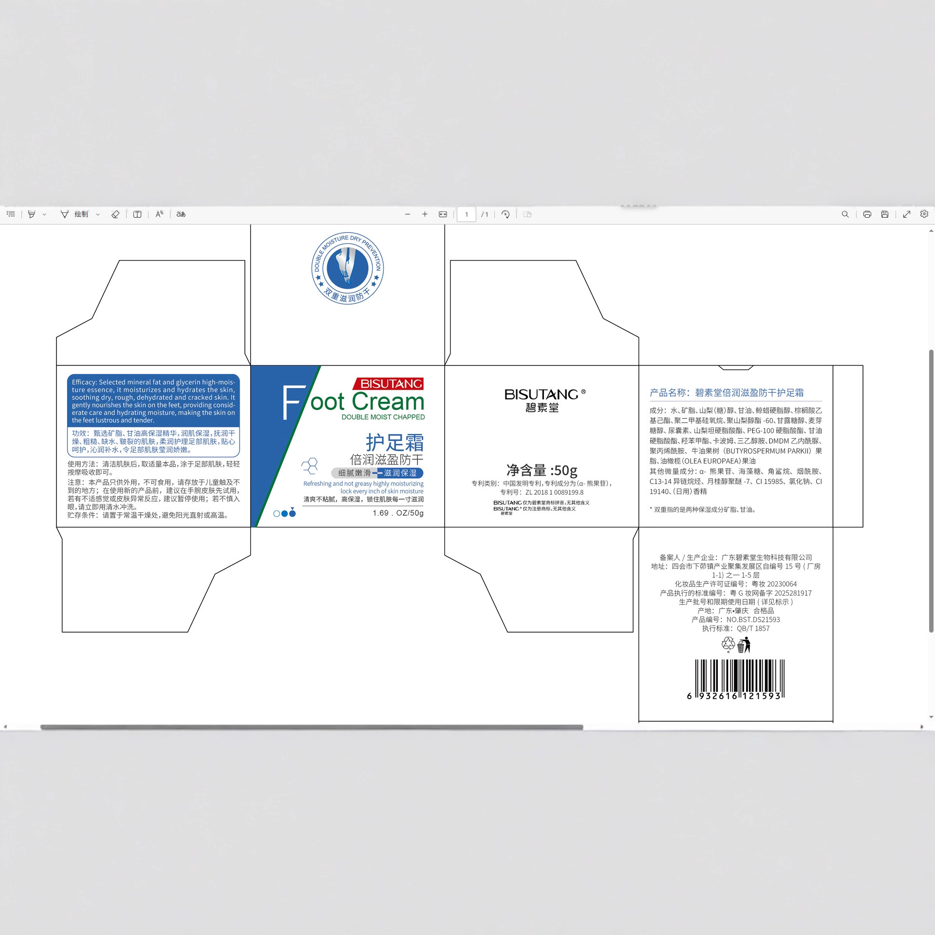 Крем для ног 50г, размер коробки 96.