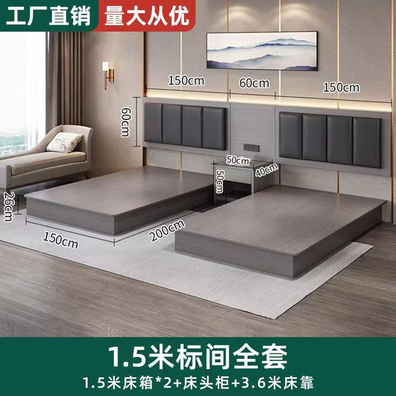 Комплект мебели для стандартных номеров отелей и апартаментов: односпальная кровать с изголовьем, двуспальная кровать, легкая роскошь. Оптом для гостиниц, отелей, апартаментов, гостевых домов, а также для сдачи однокомнатных и двухкомнатных номеров.