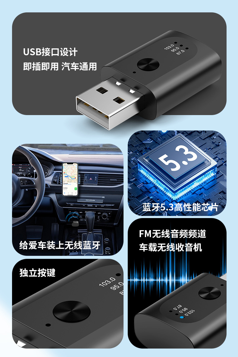 Трансграничный новый 5.3 автомобильный приемник FM-передатчик аудио адаптер беспроводной Bluetooth приемник оптом