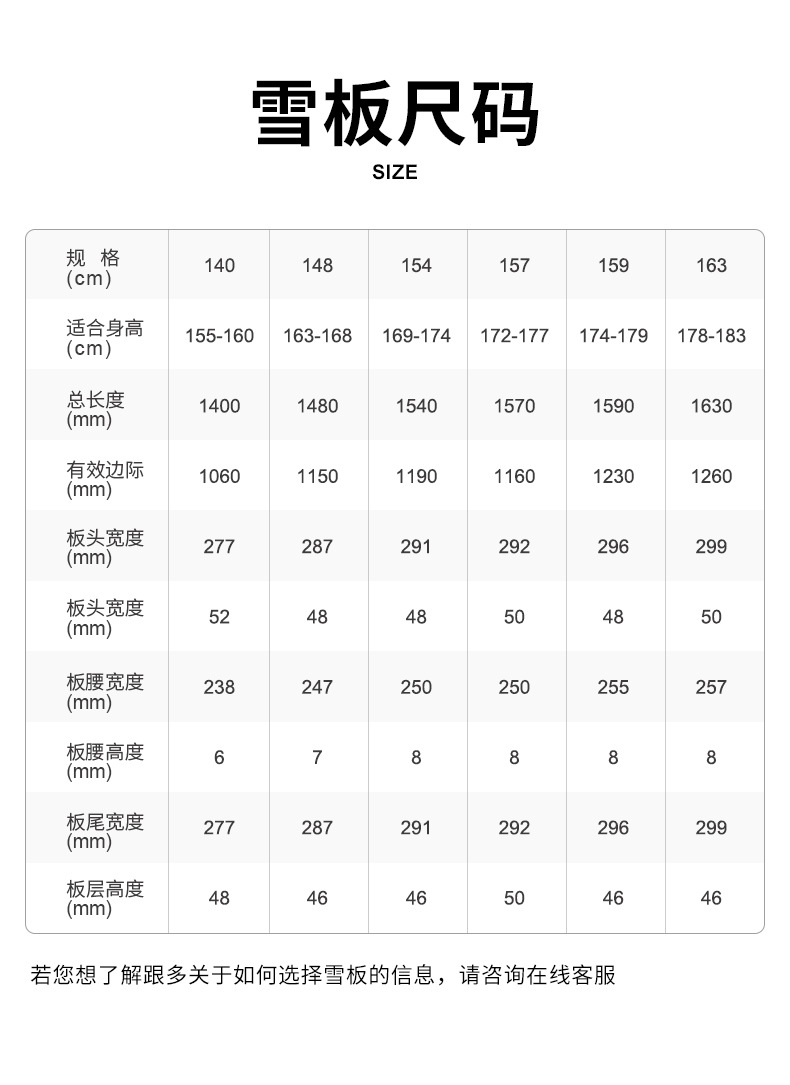 140cm; 148cm; 154cm; 157cm; 159cm; 163cm