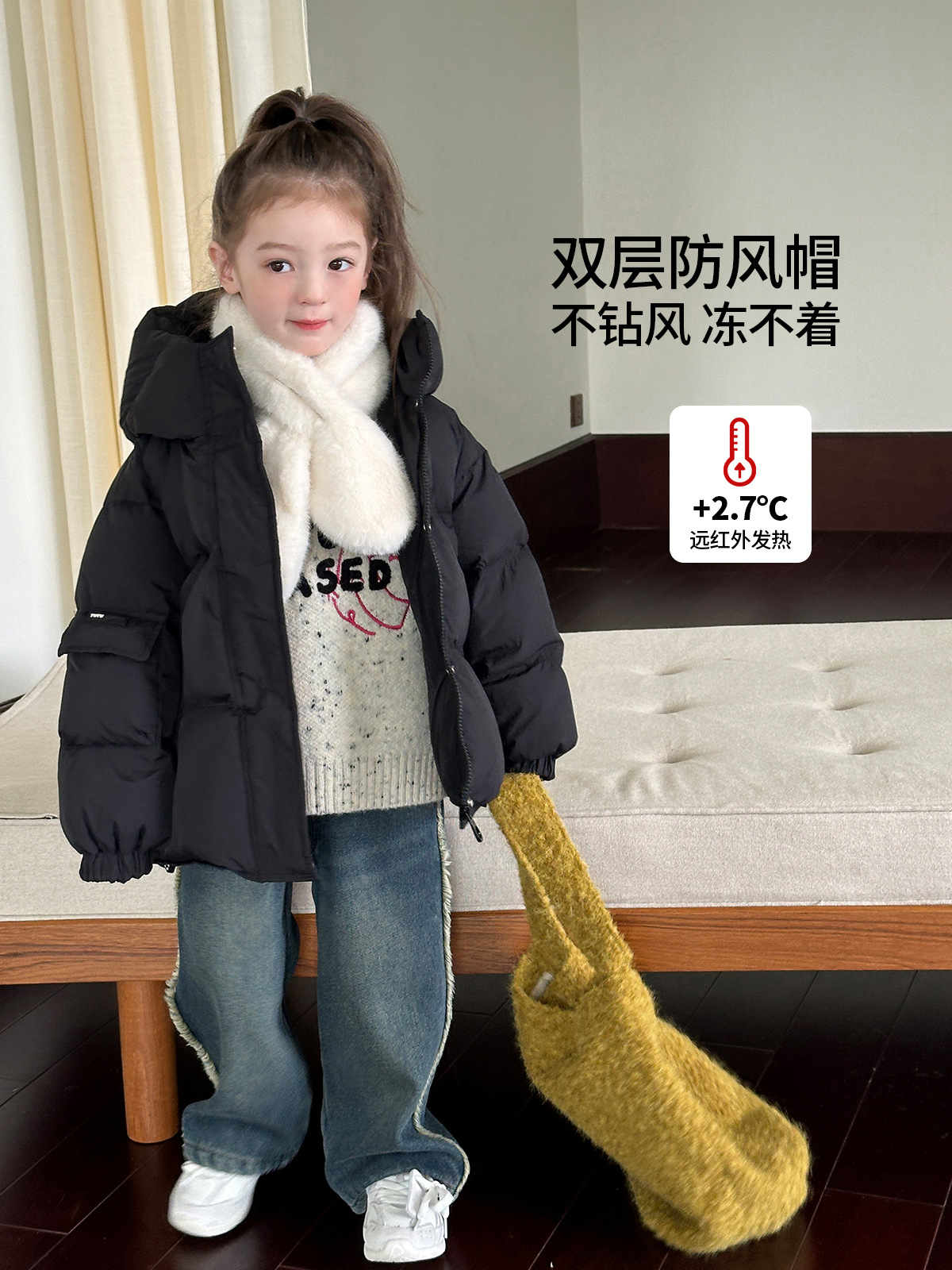 Детская одежда-пачка «Маленький слоненок», пуховик для девочек, зимняя одежда, новинка 2025, 90, утепленная детская куртка на белом утином пуху с тремя доказательствами