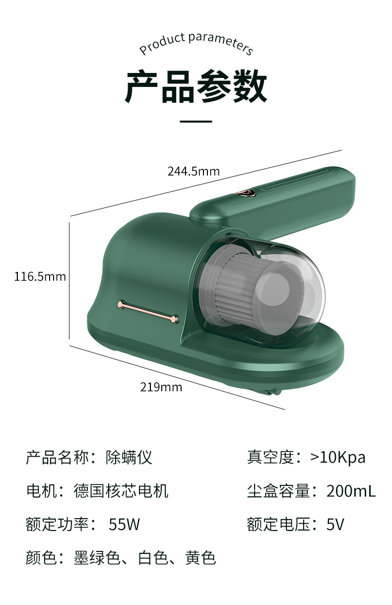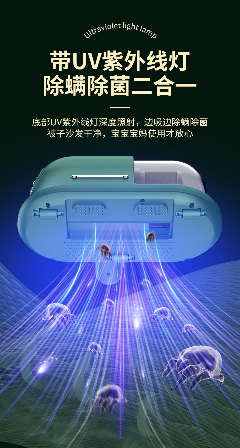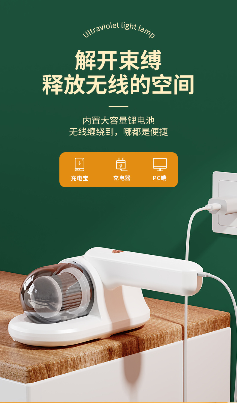 Беспроводной очиститель от клещей, портативный перезаряжаемый бытовой пылесос для диванов и кроватей, ультрафиолетовое удаление клещей и стерилизация, беспроводное дистанционное управление