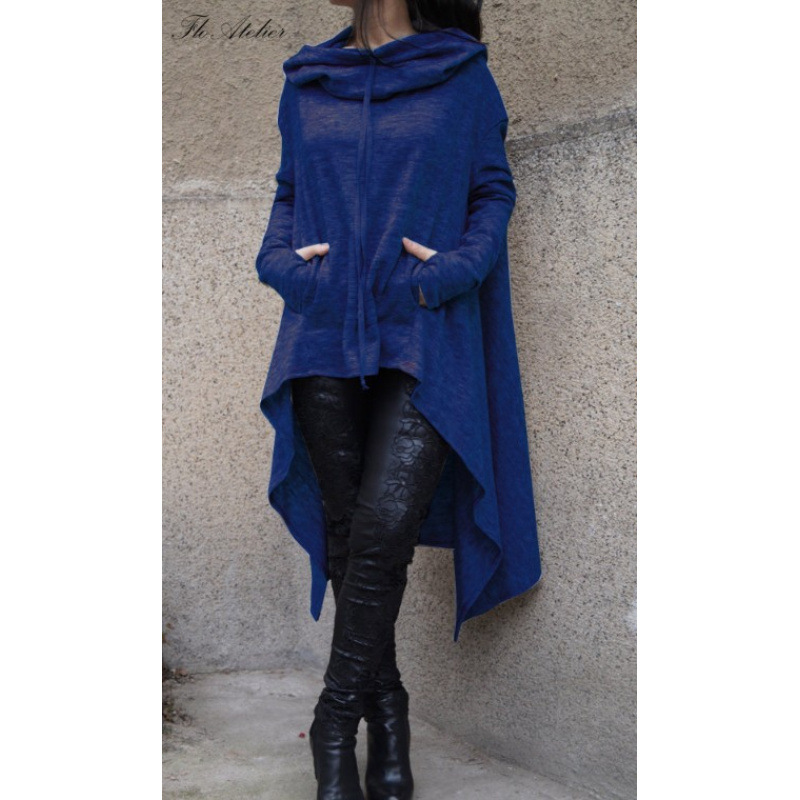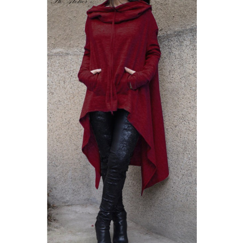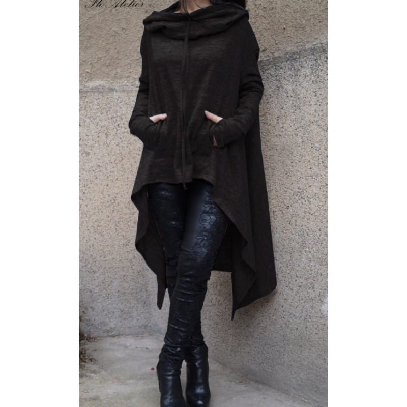 Внешняя торговля женская одежда 2024 Европа и США уличная женская одежда свободного большого размера среднего размера сплошной цвет длинный с капюшоном с длинными рукавами