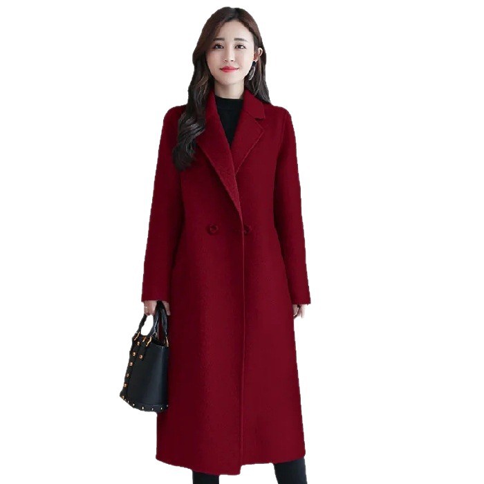 Корейская элегантная сплошная шерстяная шерстяная куртка Женская осень и зима 2024 новый женский темперамент средней и длинной шерстяное пальто прилив