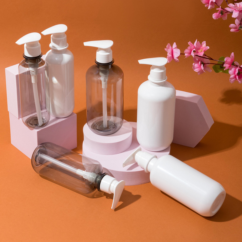 Пятно прессовать головную бутылку насоса 300ml400ml500ml круглое плечо с круглым дном ПЭТ шампунь гель для душа бутылка
