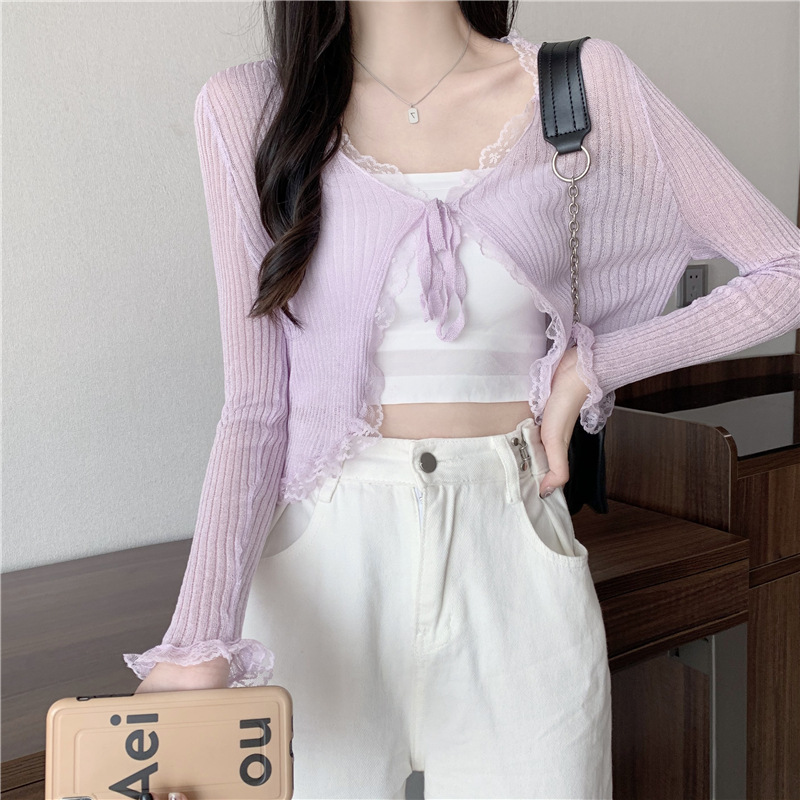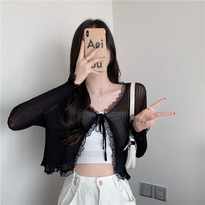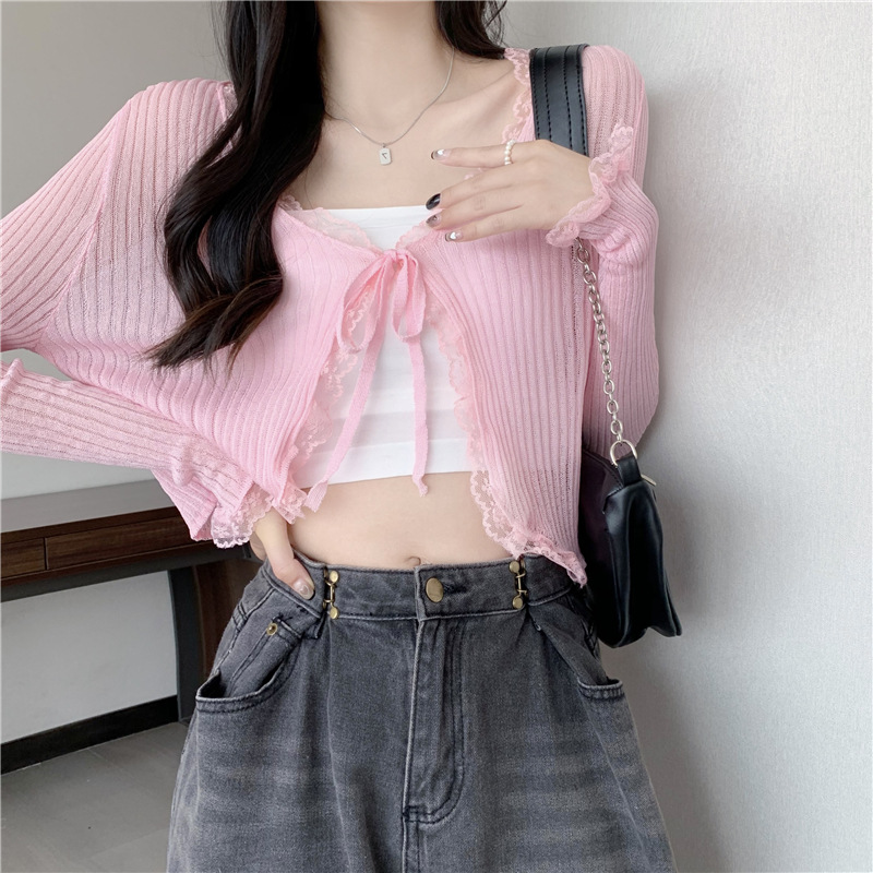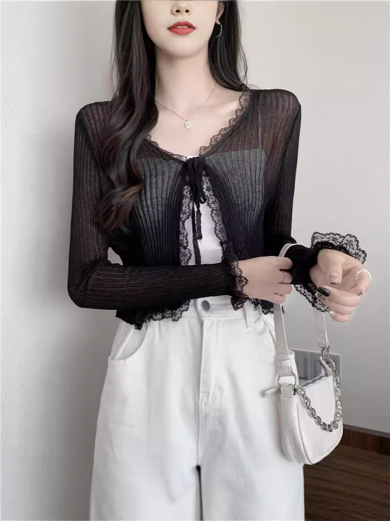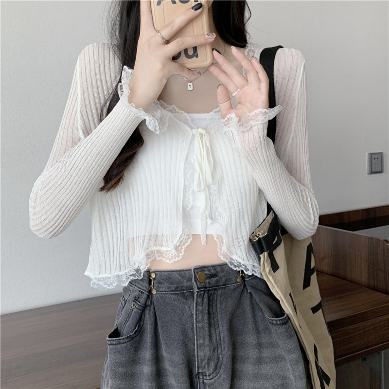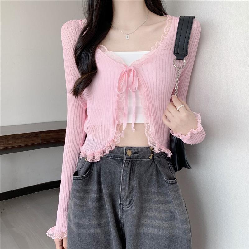 Нежный Версаль топ свежий кружевной шнуровка тонкий солнцезащитный крем трикотажный кардиган женский осень и зима