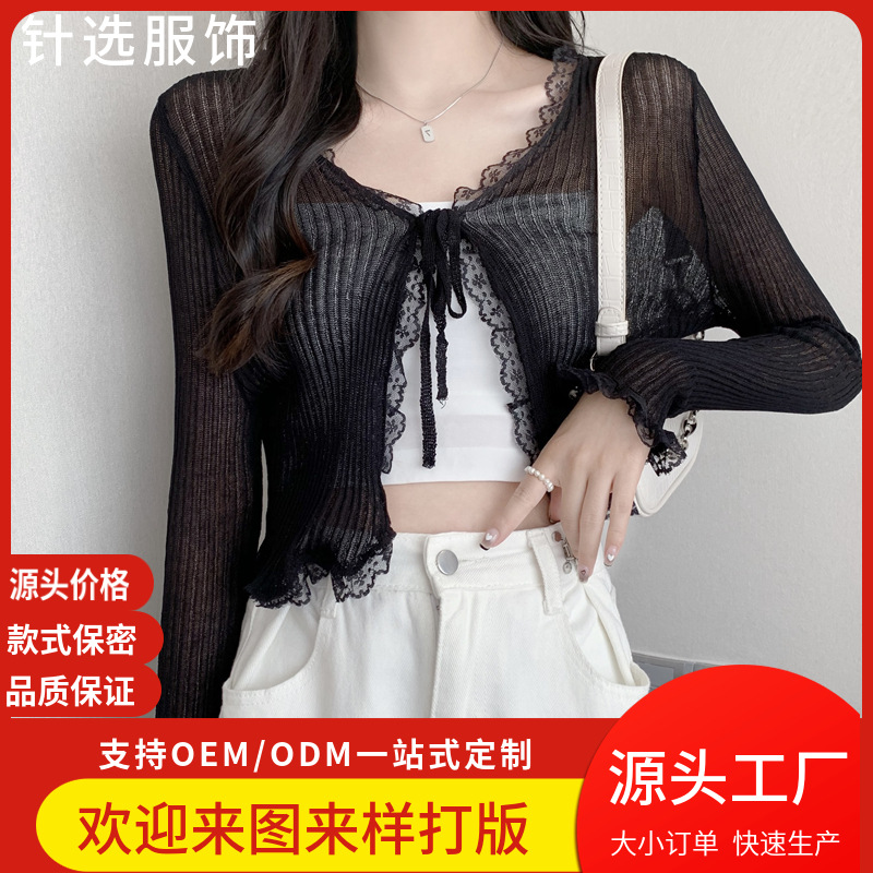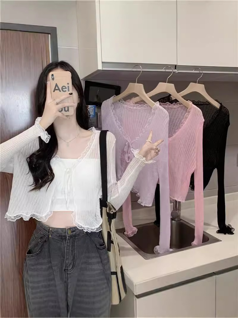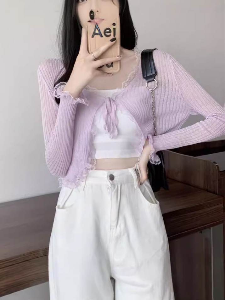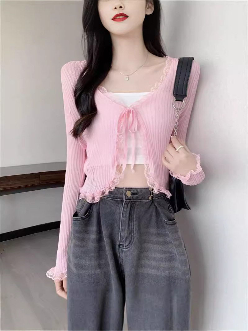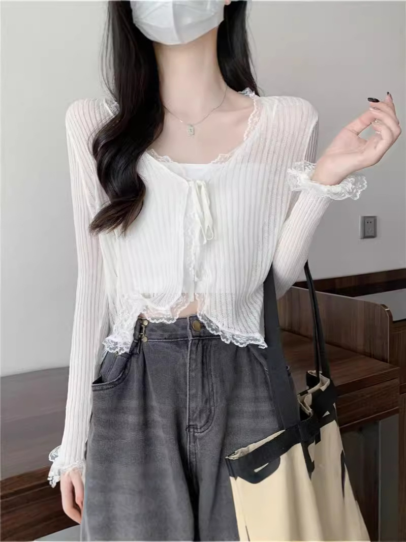 Нежный Версаль топ свежий кружевной шнуровка тонкий солнцезащитный крем трикотажный кардиган женский осень и зима