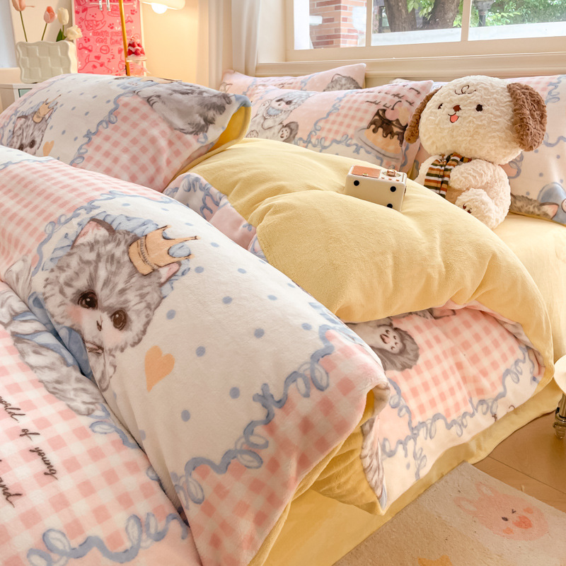 Набор из четырех частей молока толстый коралловый бархатный простыни