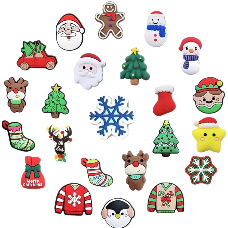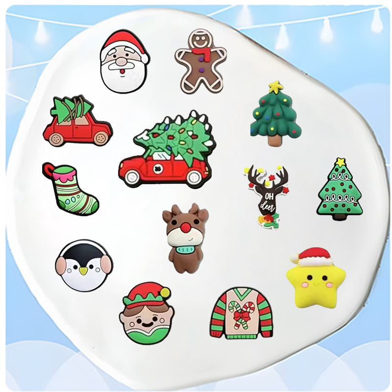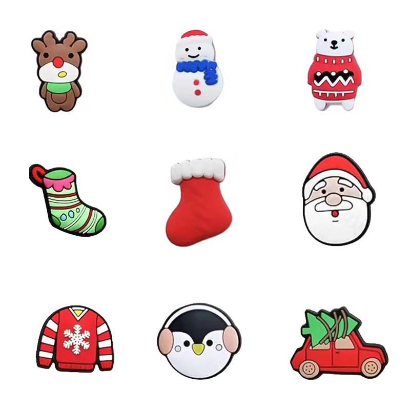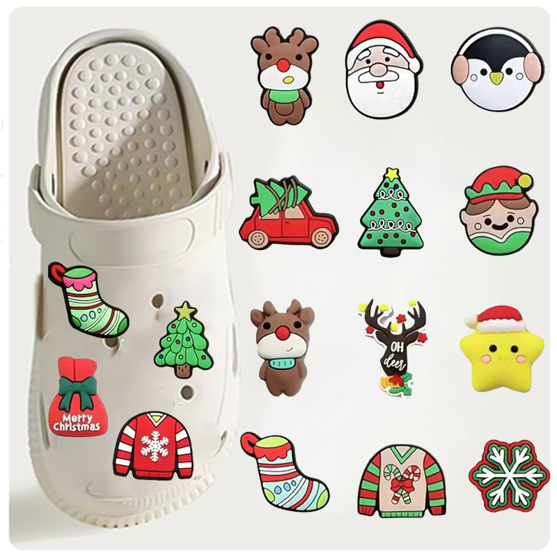 Новые рождественские шармы для обуви Crocs, декор для обуви, цветы для обуви своими руками, аксессуары для обуви, мягкая резиновая ПВХ-фурнитура, забавные украшения