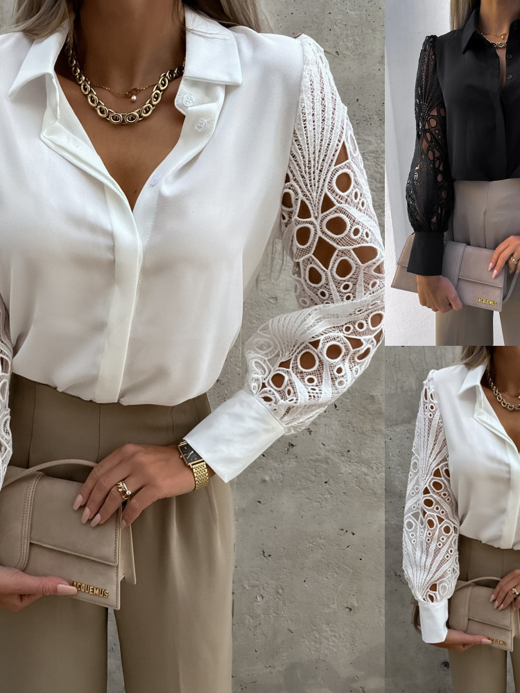 Новые популярные женские блузки и рубашки с кружевными вставками для трансграничной торговли Amazon в Европе и Америке, весна-лето 2025