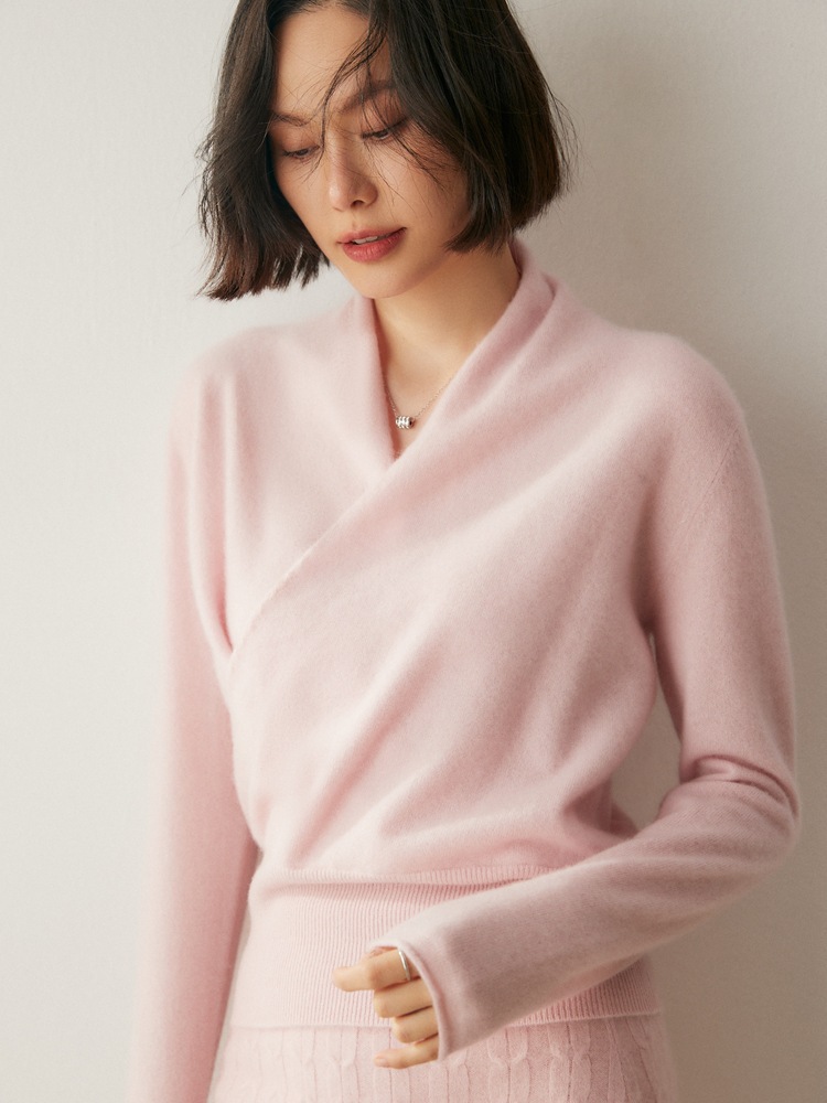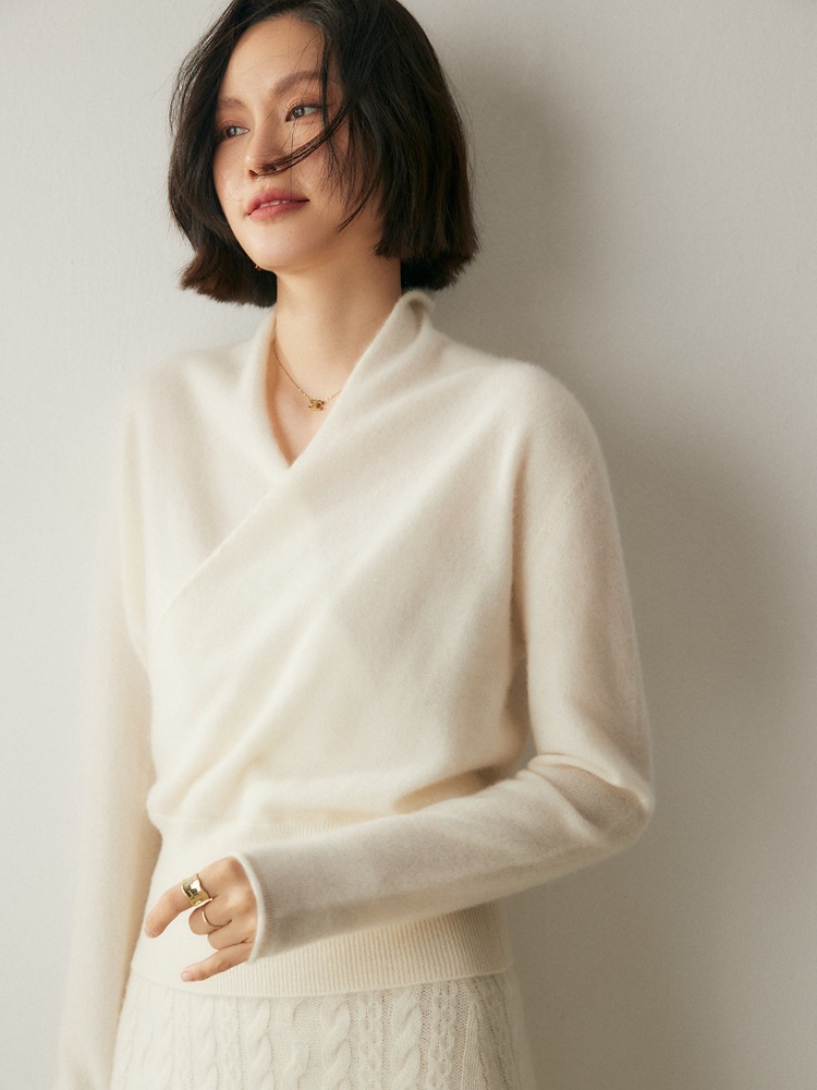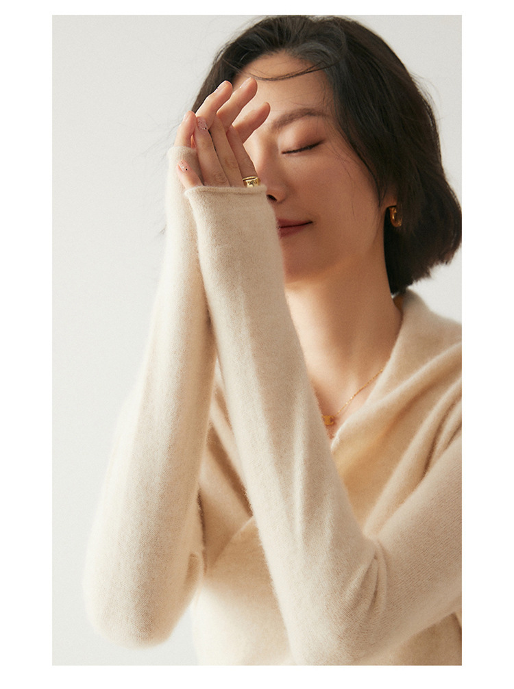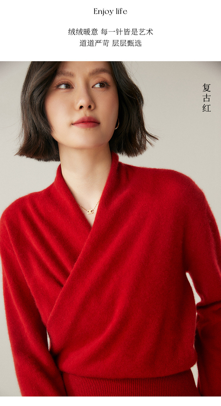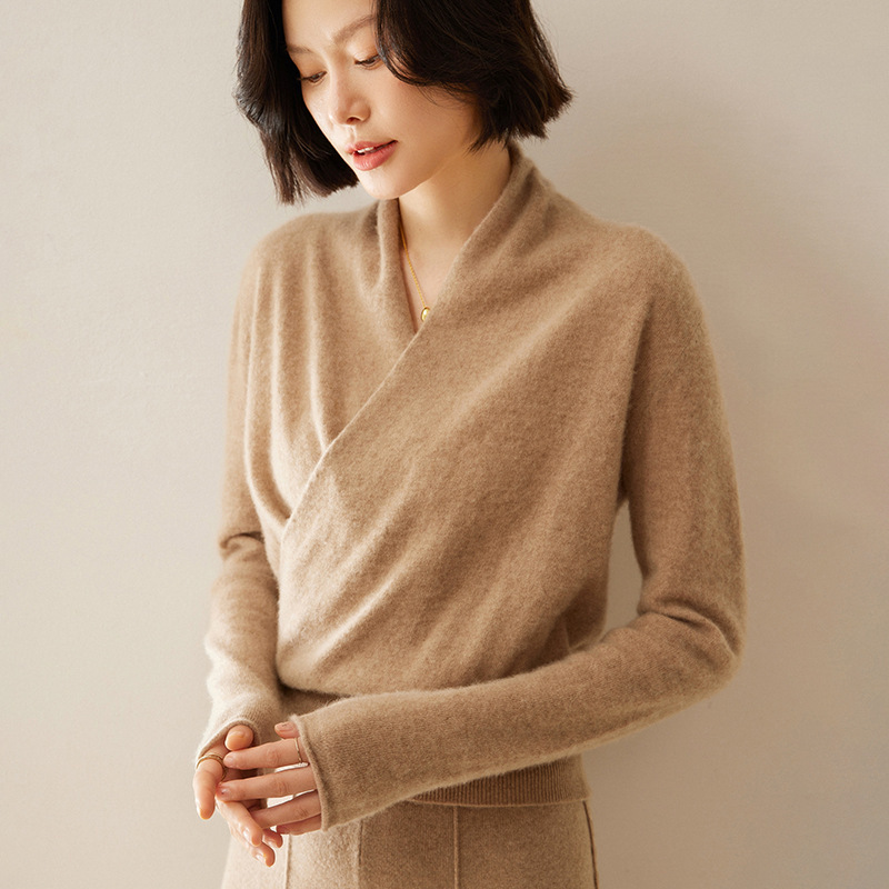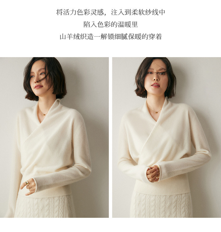 Кашемировый свитер с V-образным вырезом для женщин, осень-зима 2025, новый французский стиль ночной сорочки, вязаная нижняя рубашка, ленивый свитер