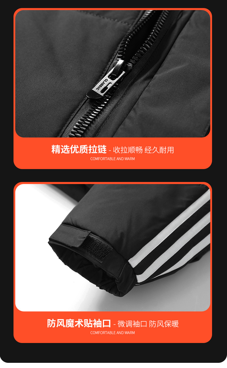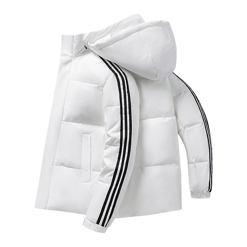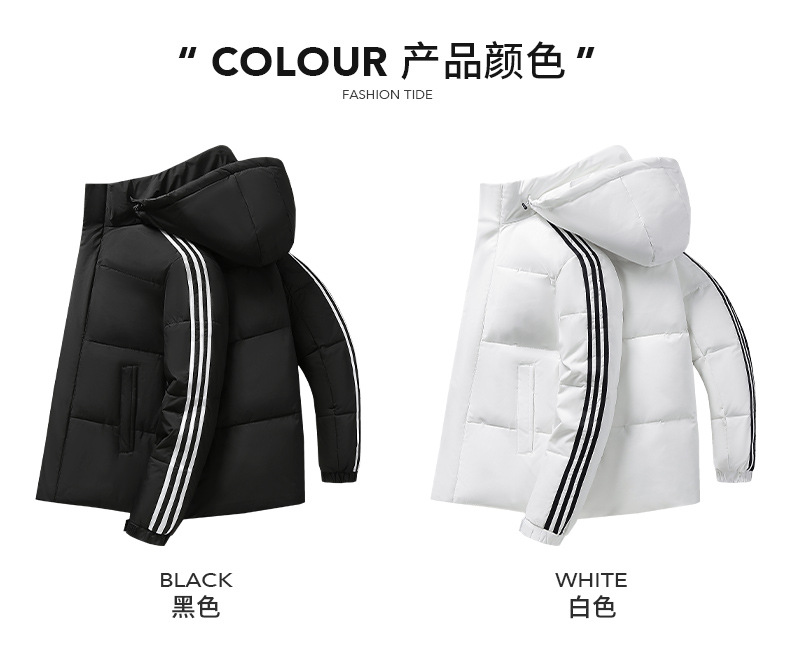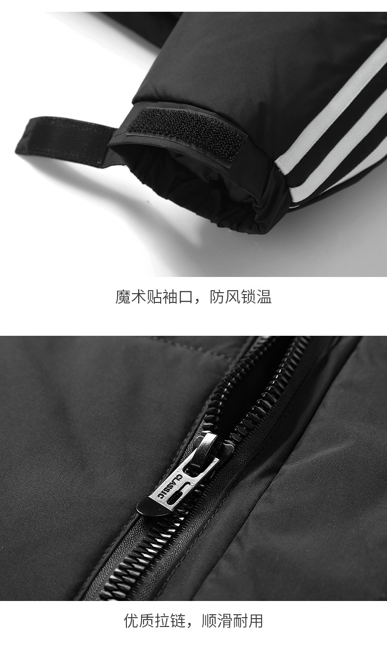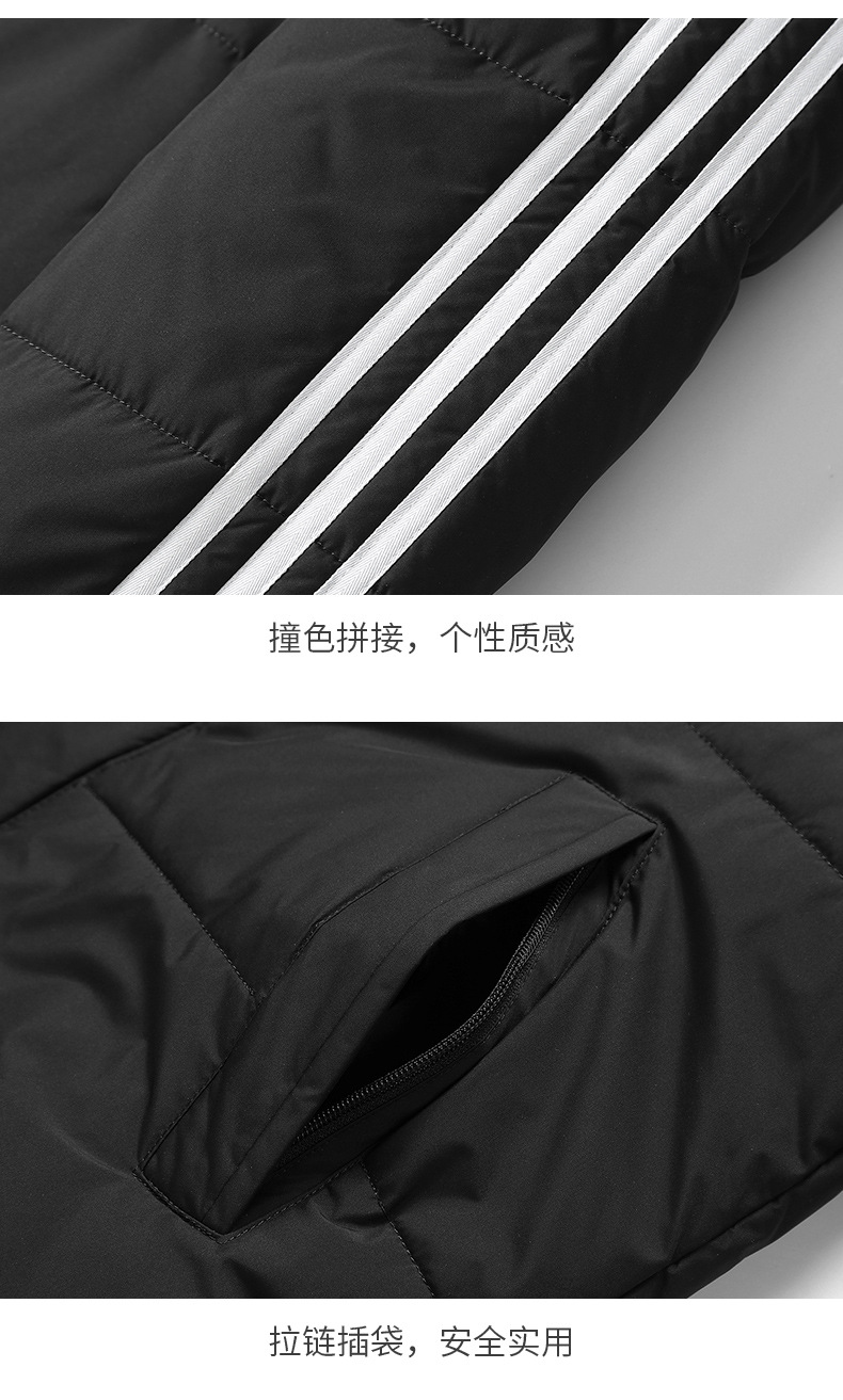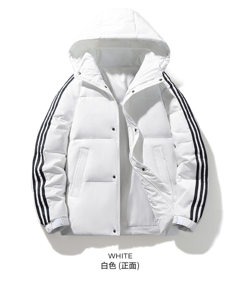 Короткий пуховик с отстегивающимся капюшоном, парный комплект, зимний дизайн Adidas с тремя полосками.