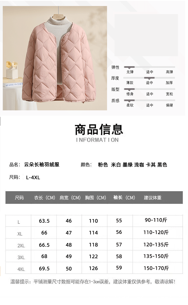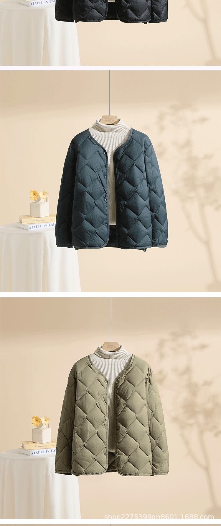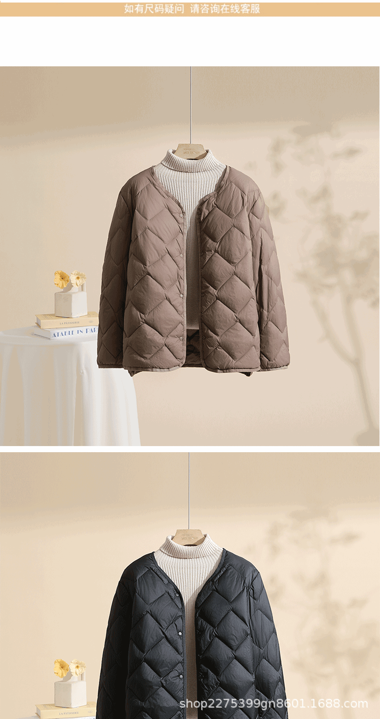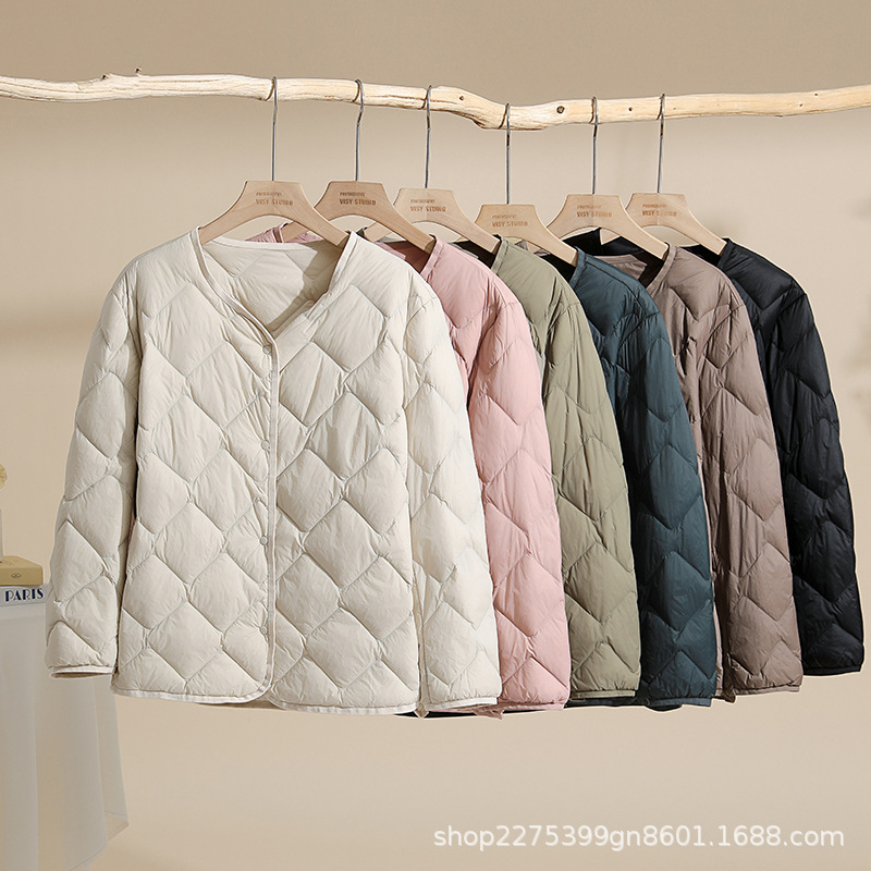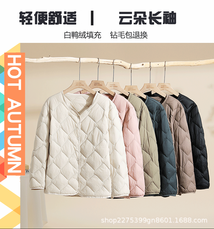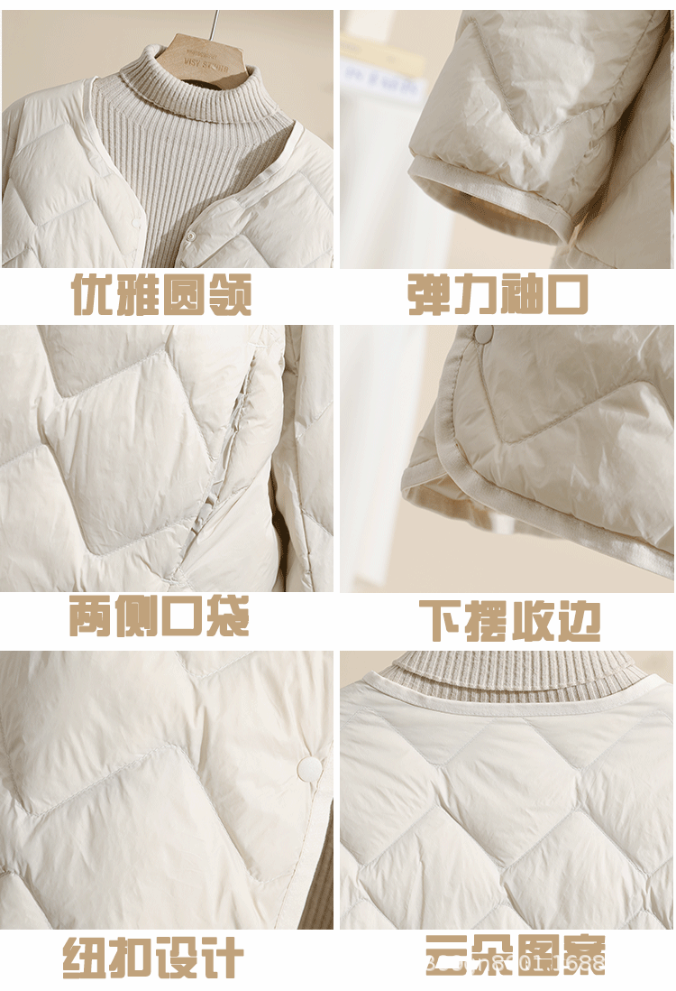 2024 осень и зима новый облачный легкий пуховик женский короткий легкий пуховик повседневный пиджак с круглым вырезом