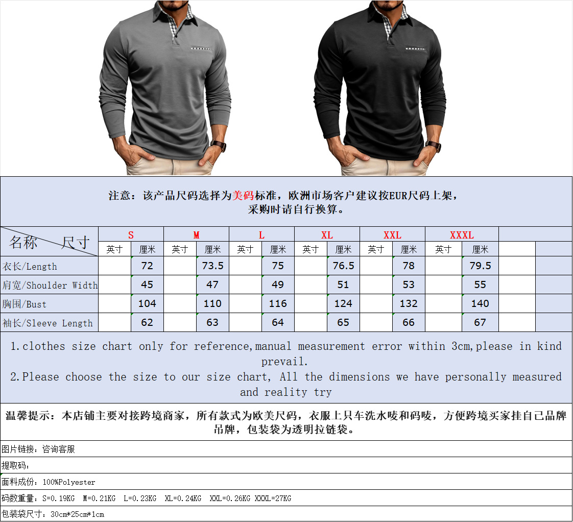 Осень-зима 2025: новая европейская и американская трансграничная мужская дышащая и крутая рубашка-поло, футболка Amazon, экспортная мужская футболка с длинными рукавами