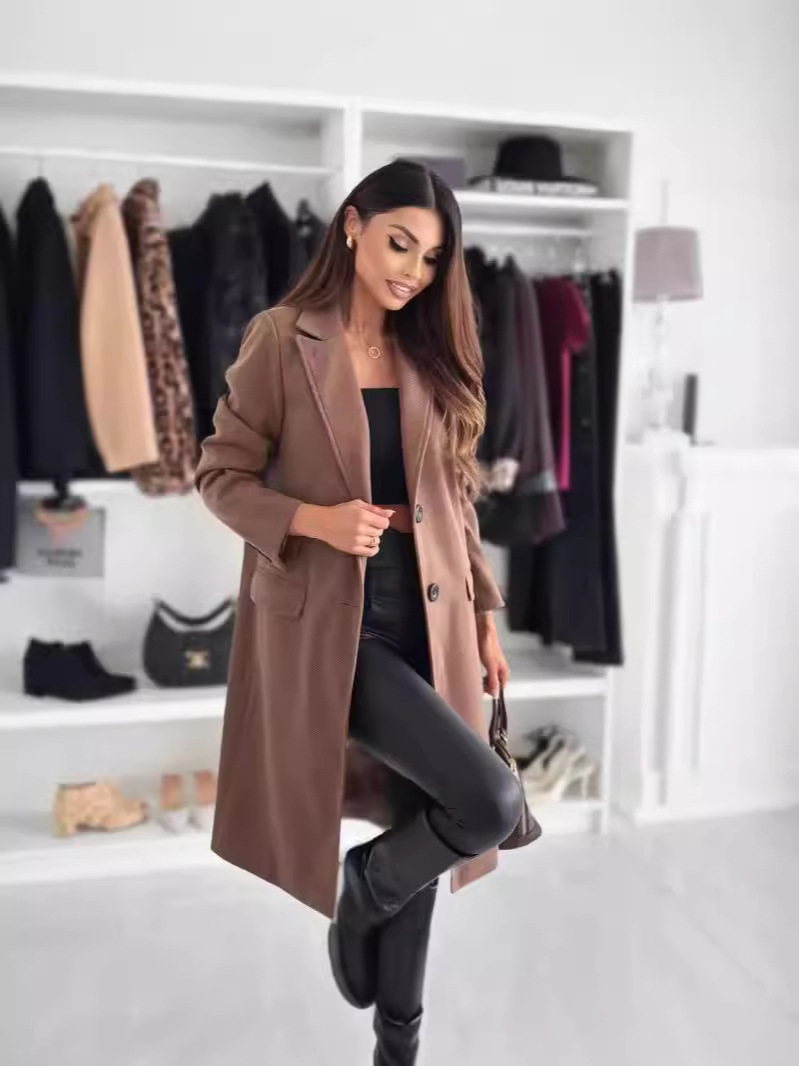Женское шерстяное пальто 2025 года, популярное на Amazon, простое, длиннорукавное, однотонное, с карманами, для осени и зимы.