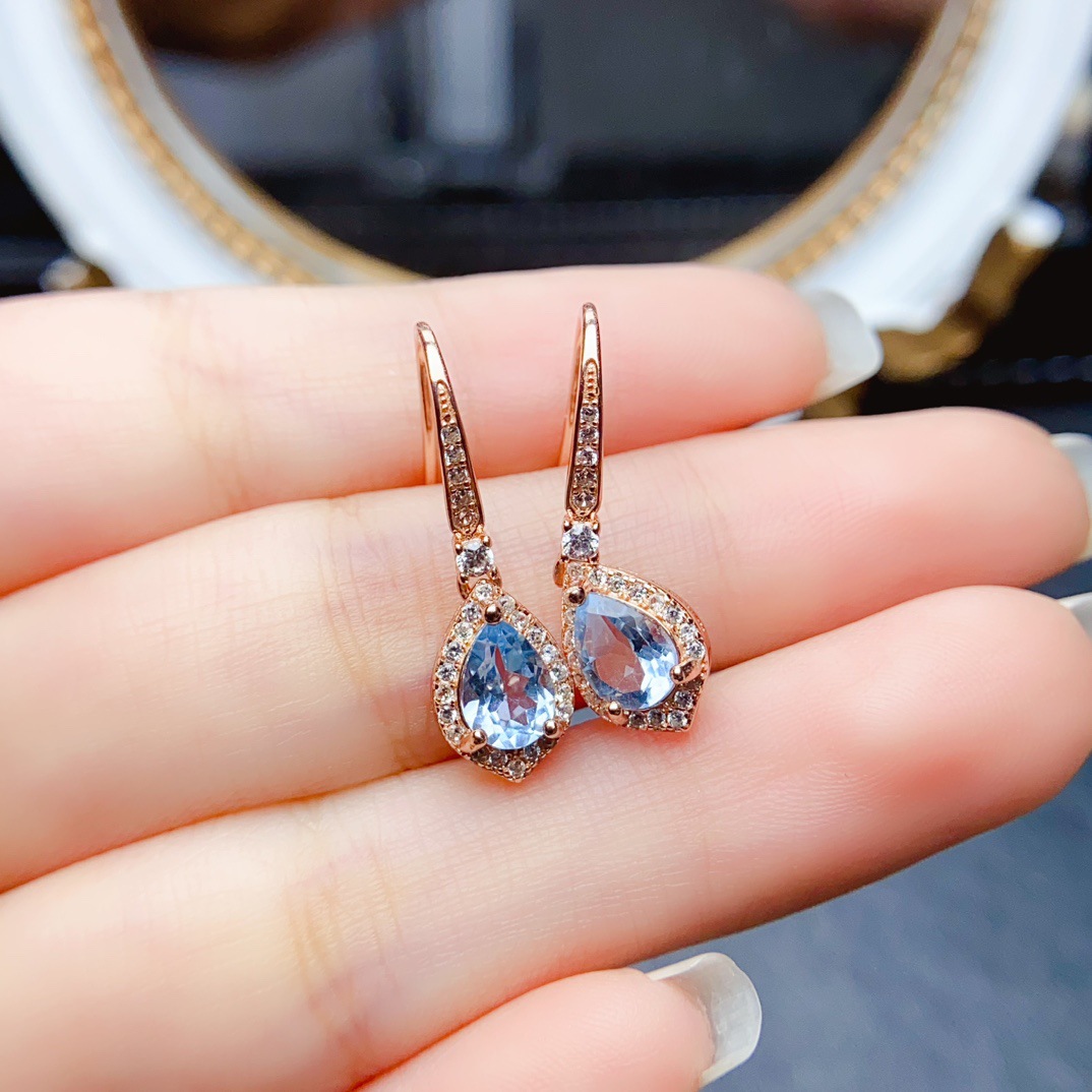 Оптовые серьги-гвоздики с топазом из серебра S925, инкрустированные основным камнем 5*7 мм, хит продаж в Европе и Америке, дропшиппинг поштучно, эксклюзивно для трансграничных поставок.