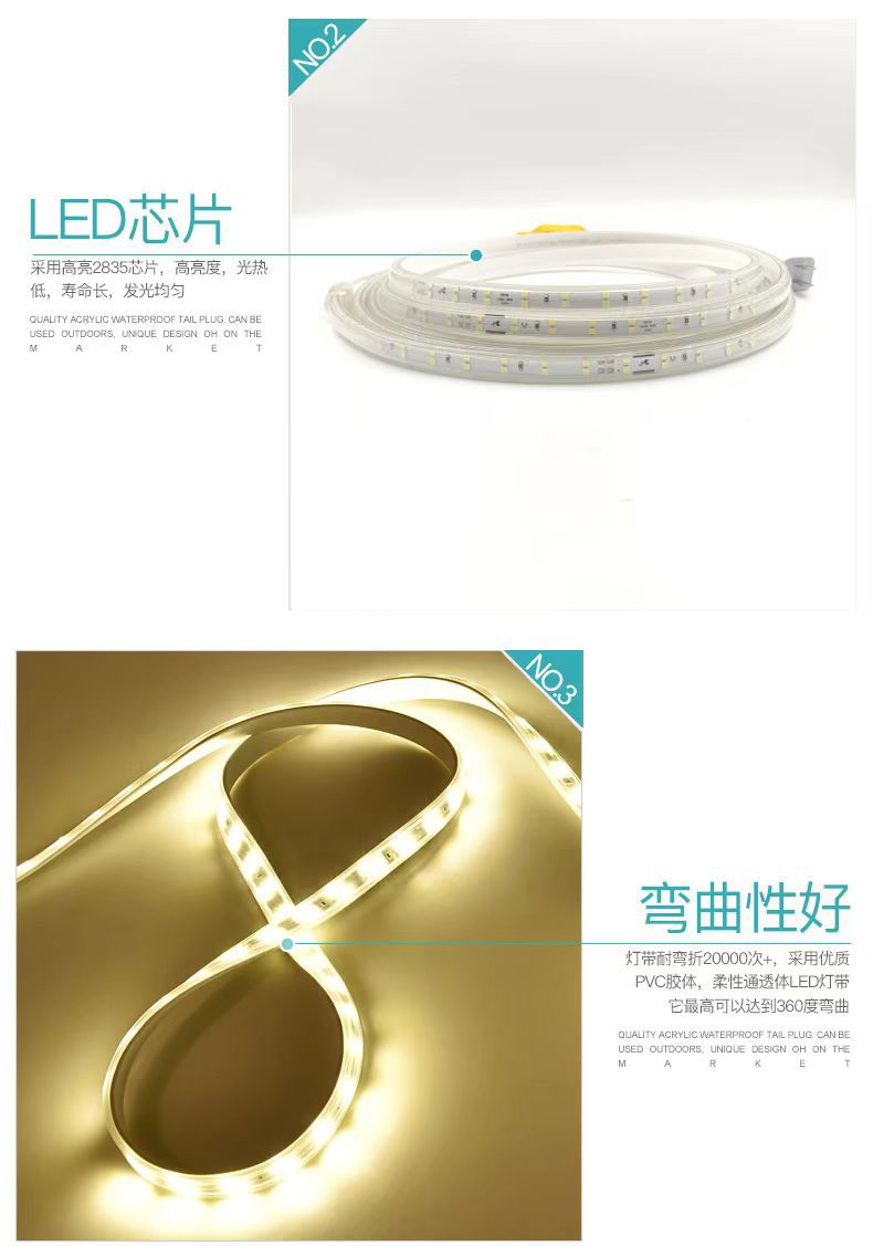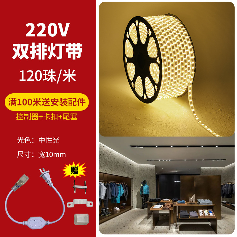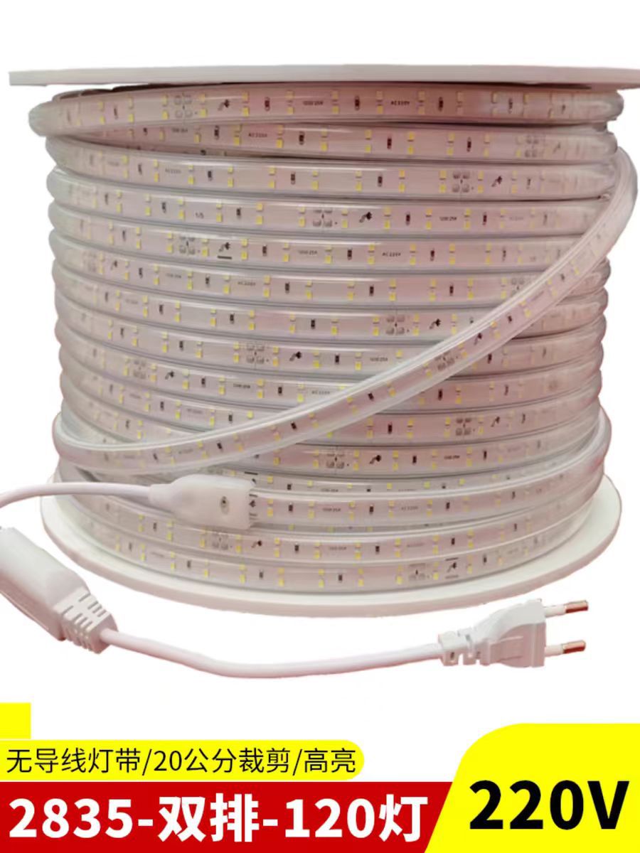 Светодиодная лента 2835, двухрядная, высокого напряжения, 220 В, высокая яркость, 120 лампочек, наружное водонепроницаемое внутреннее инженерное освещение, гибкая световая лента