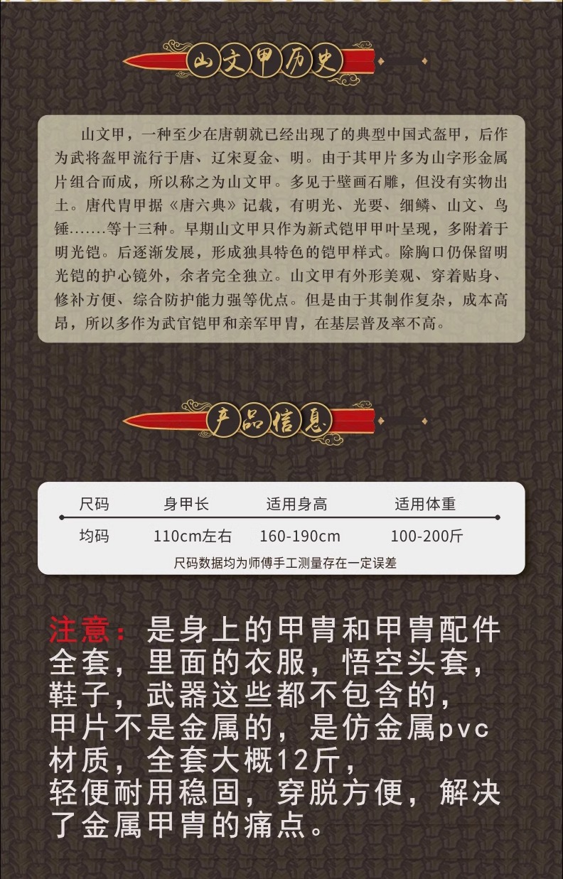 Золотая броня с горным узором Вуконг; Замок с горным узором Вуконг, черная броня; Полный комплект золотой брони Вуконга (золотая броня + внутренняя одежда + мыльные сапоги + головной убор + золотой обруч); Полный комплект черной брони Вуконга (черная броня + внутренняя одежда + мыльные сапоги + головной убор + золотой обруч); Цельнометаллический золотой обруч; обувь; Темно-коричневый халат с круглым вырезом и узором из девяти драконов (одинарная внутренняя одежда)