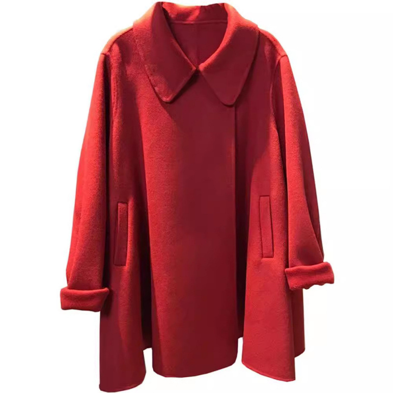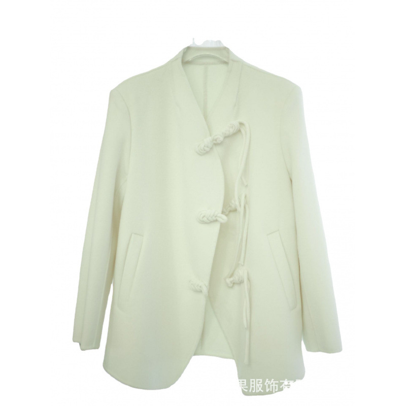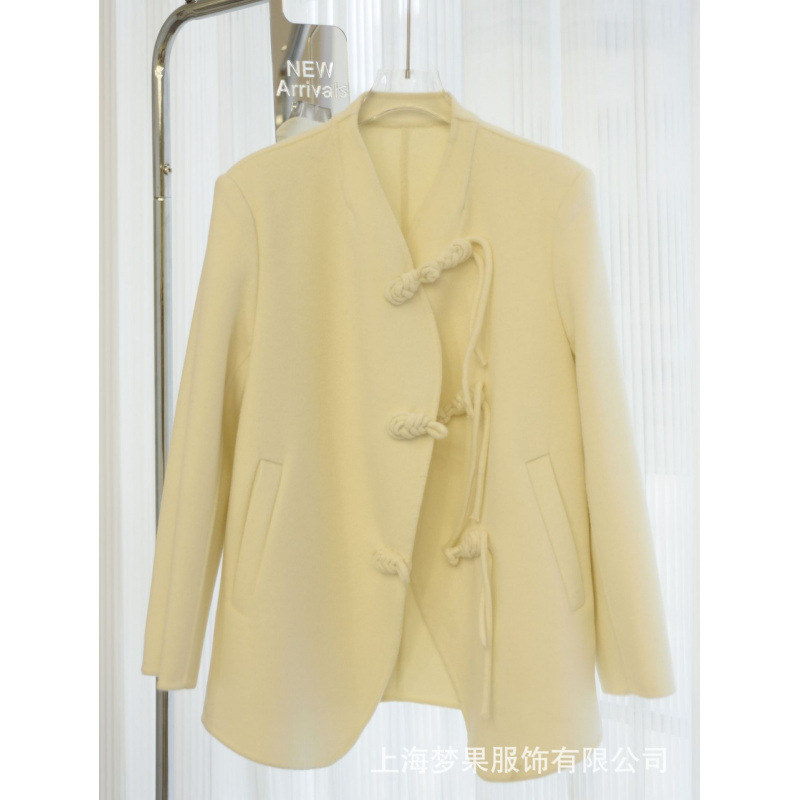 Двухстороннее шерстяное пальто с вертикальным воротником женский 2024 осень-зима новая свободная версия дикий темперамент утолщенный шерстяной твидовой куртка